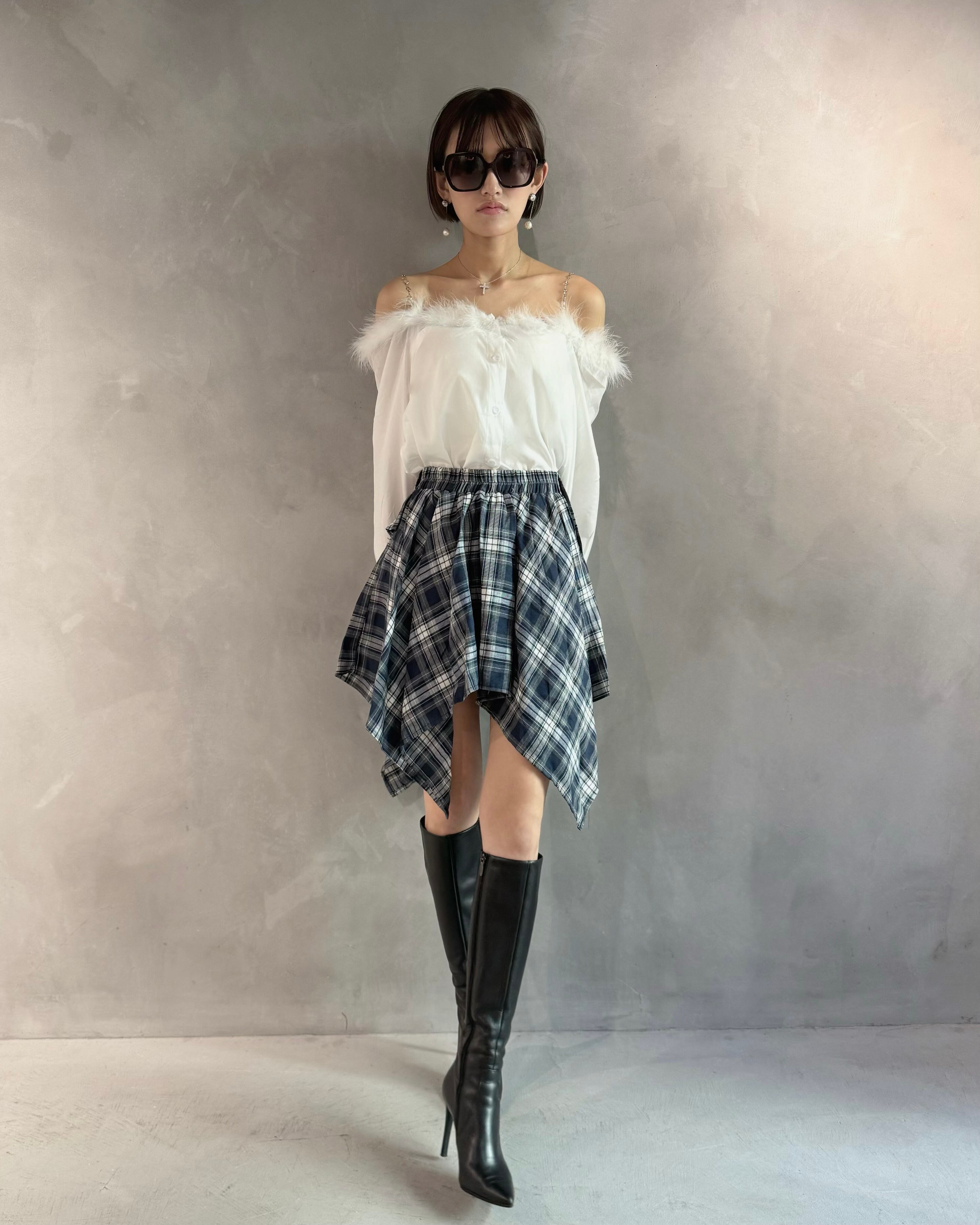 【Glam Feather Strap Blouse】