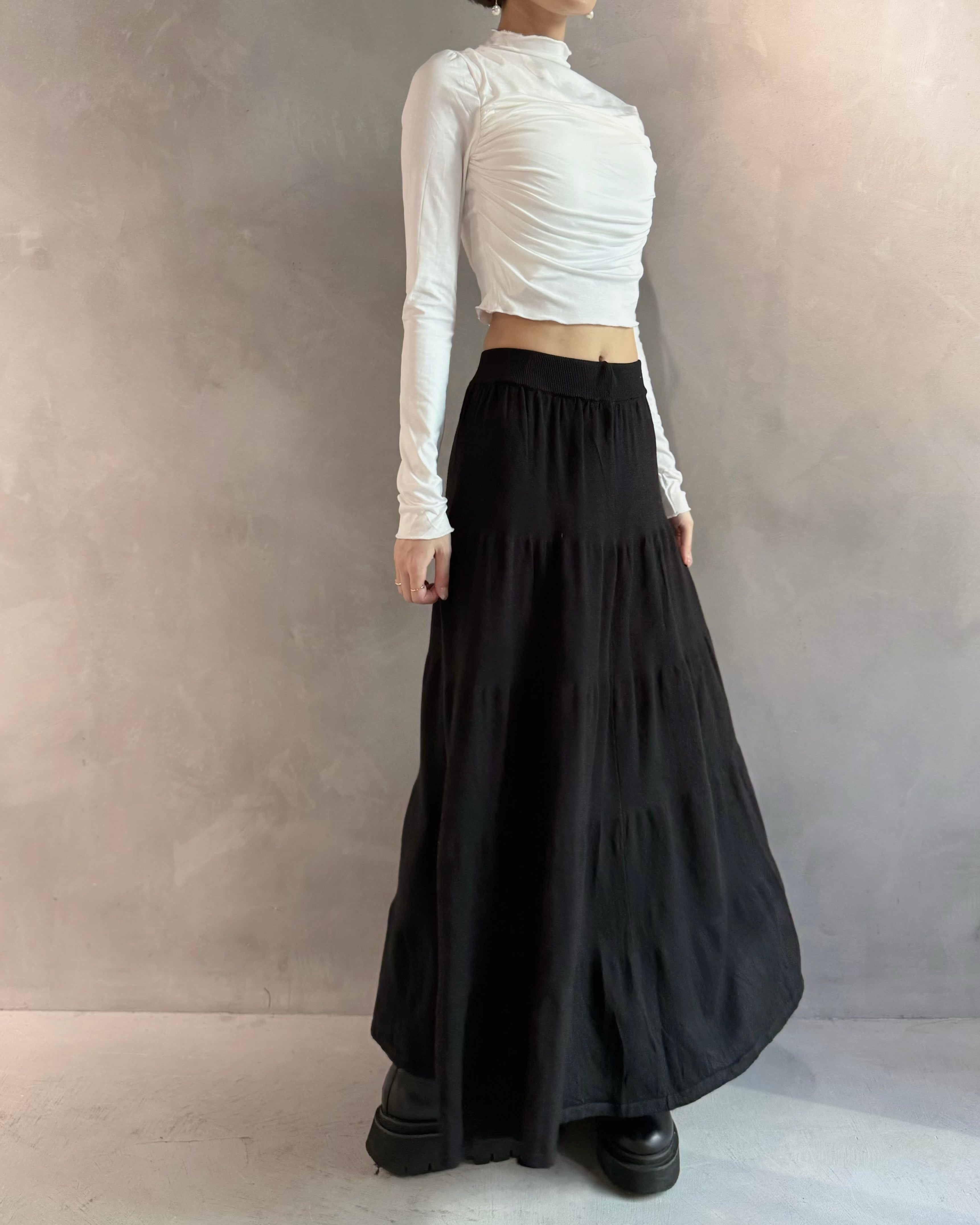 スカートはブラウスやシャツと合わせてフェミニンにも着回し可能。