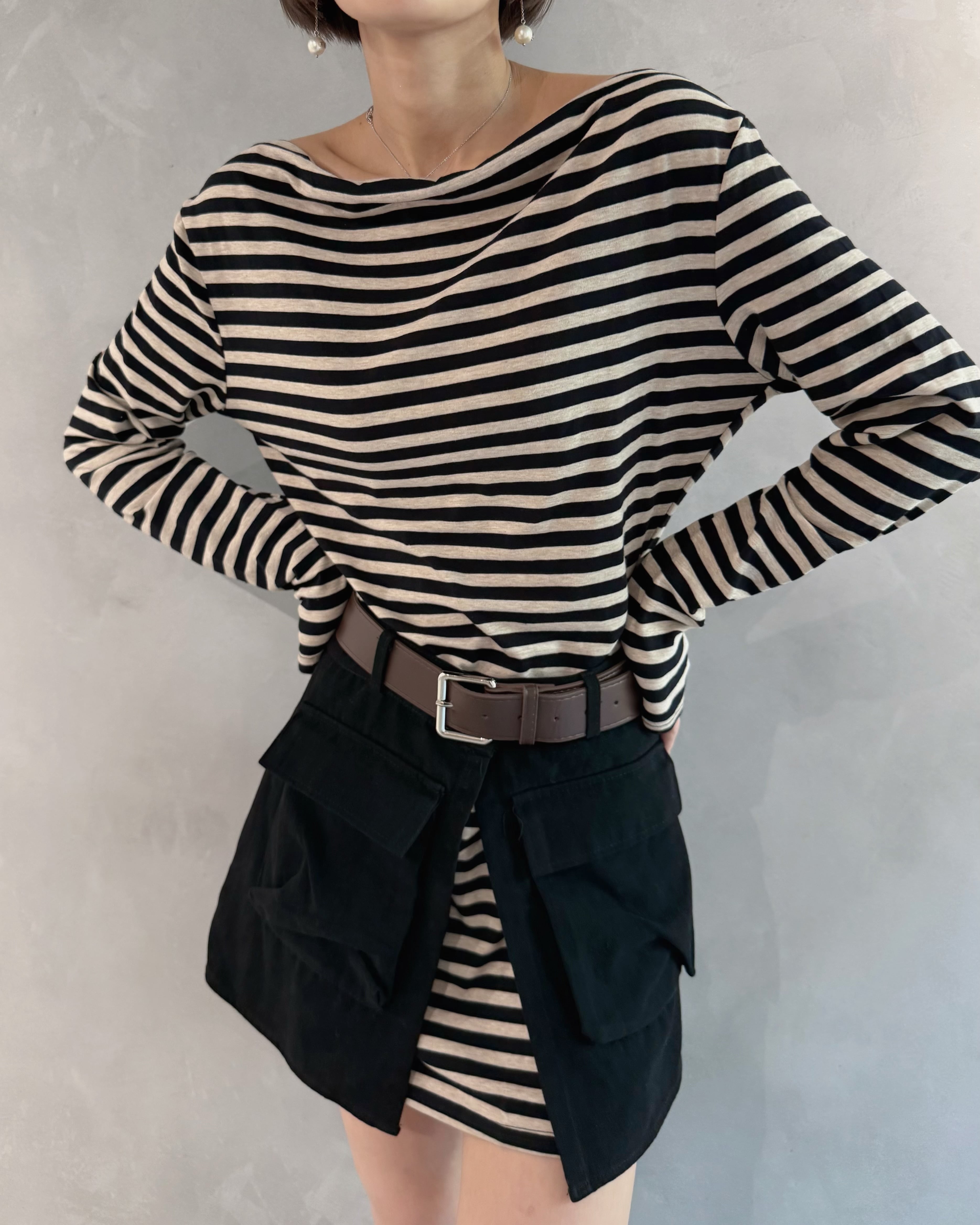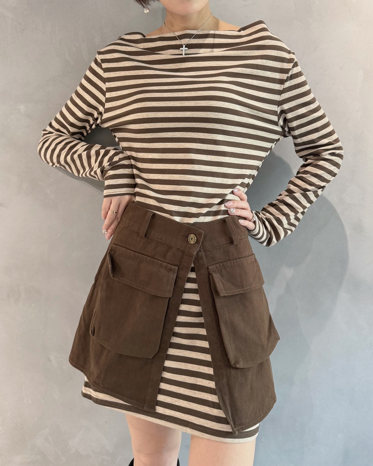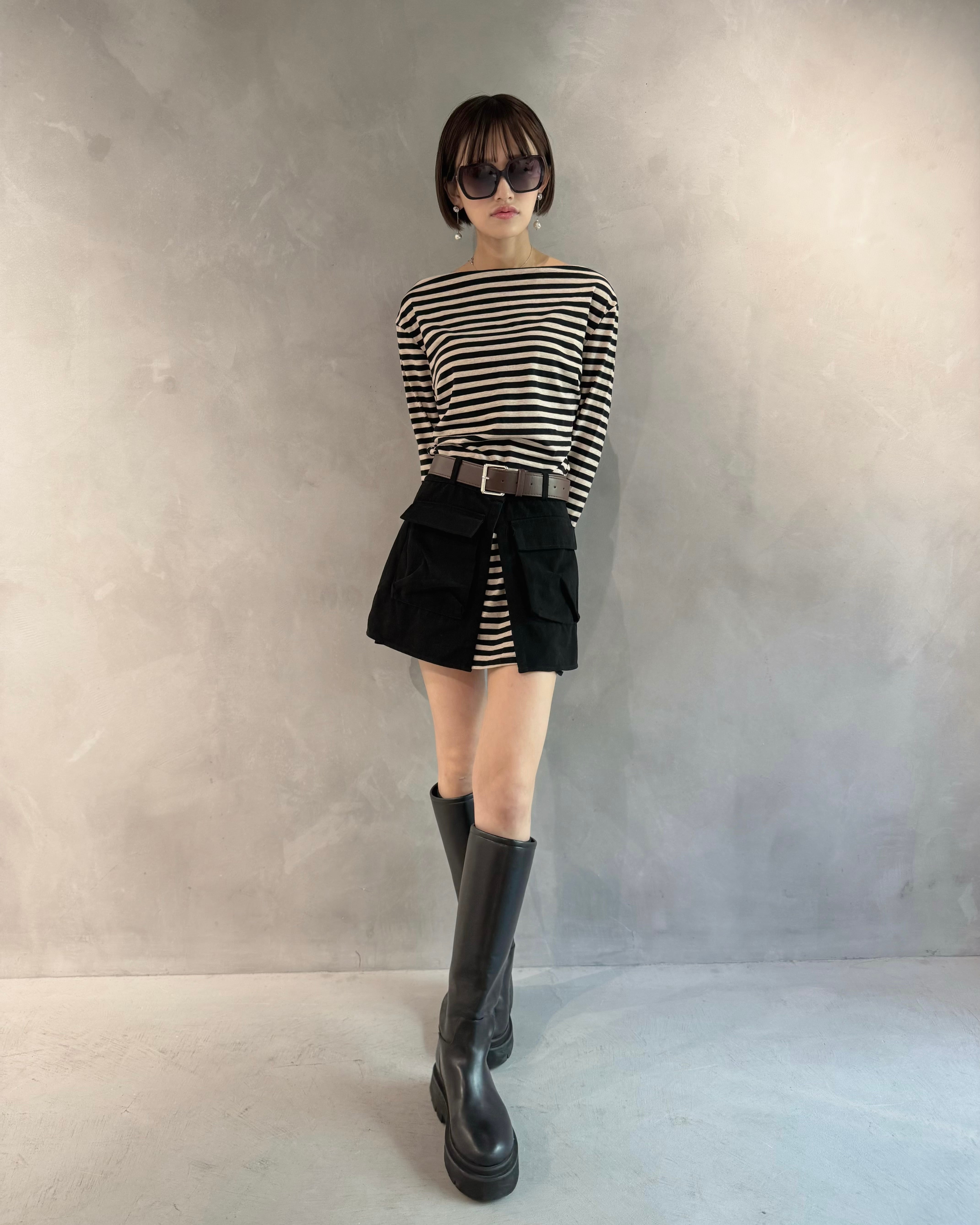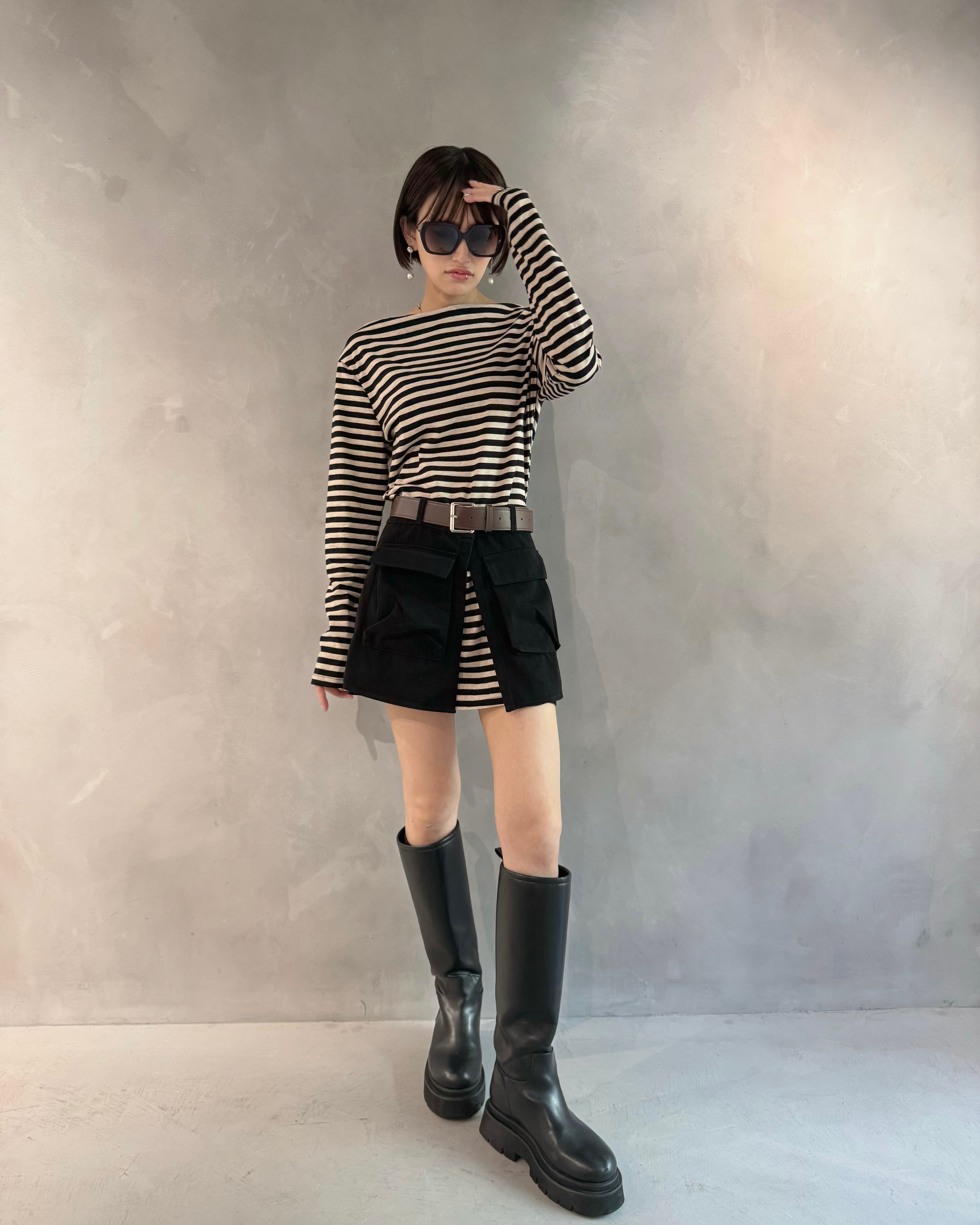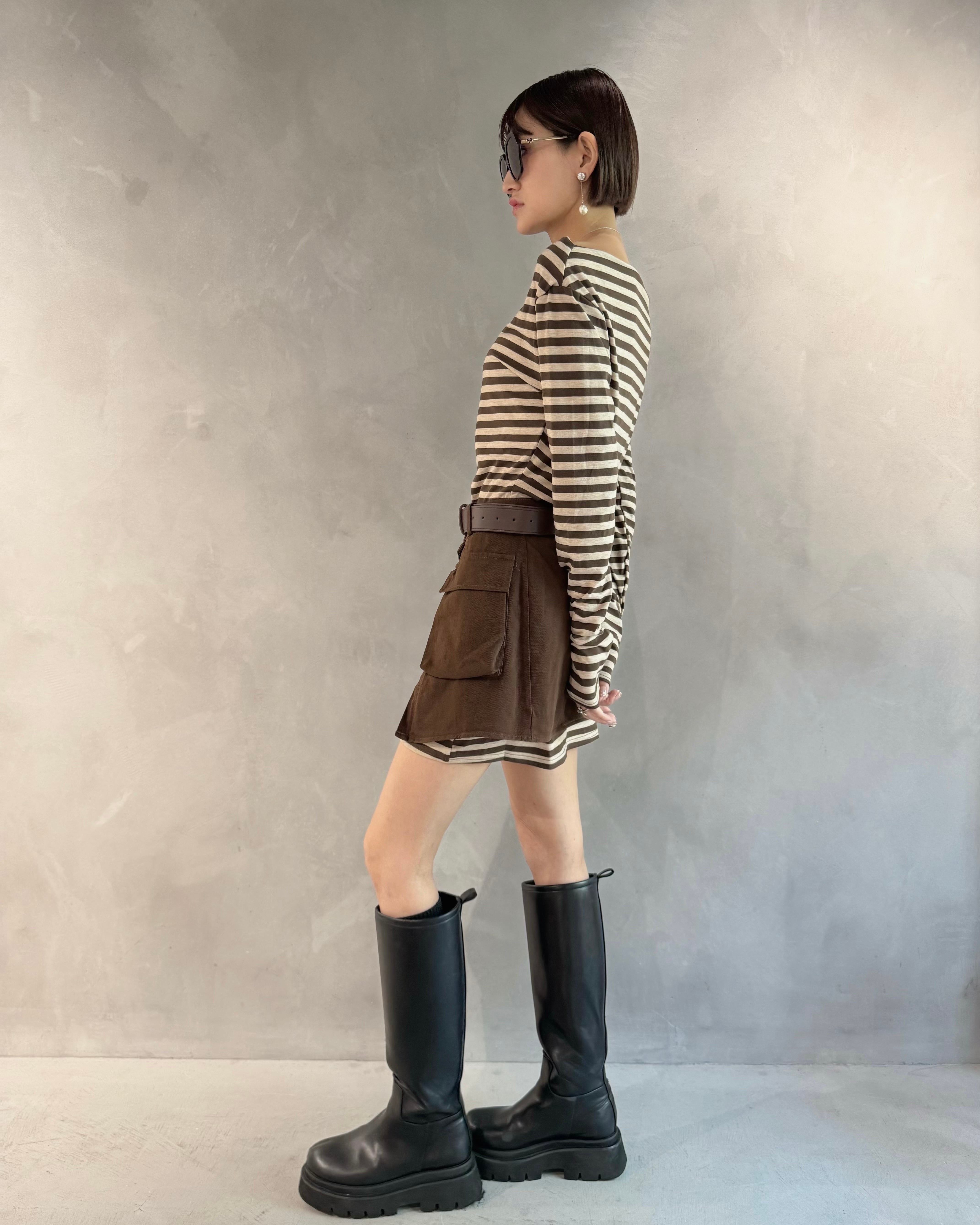 存在感のあるベルトとラップスカートをプラスした3点セット。