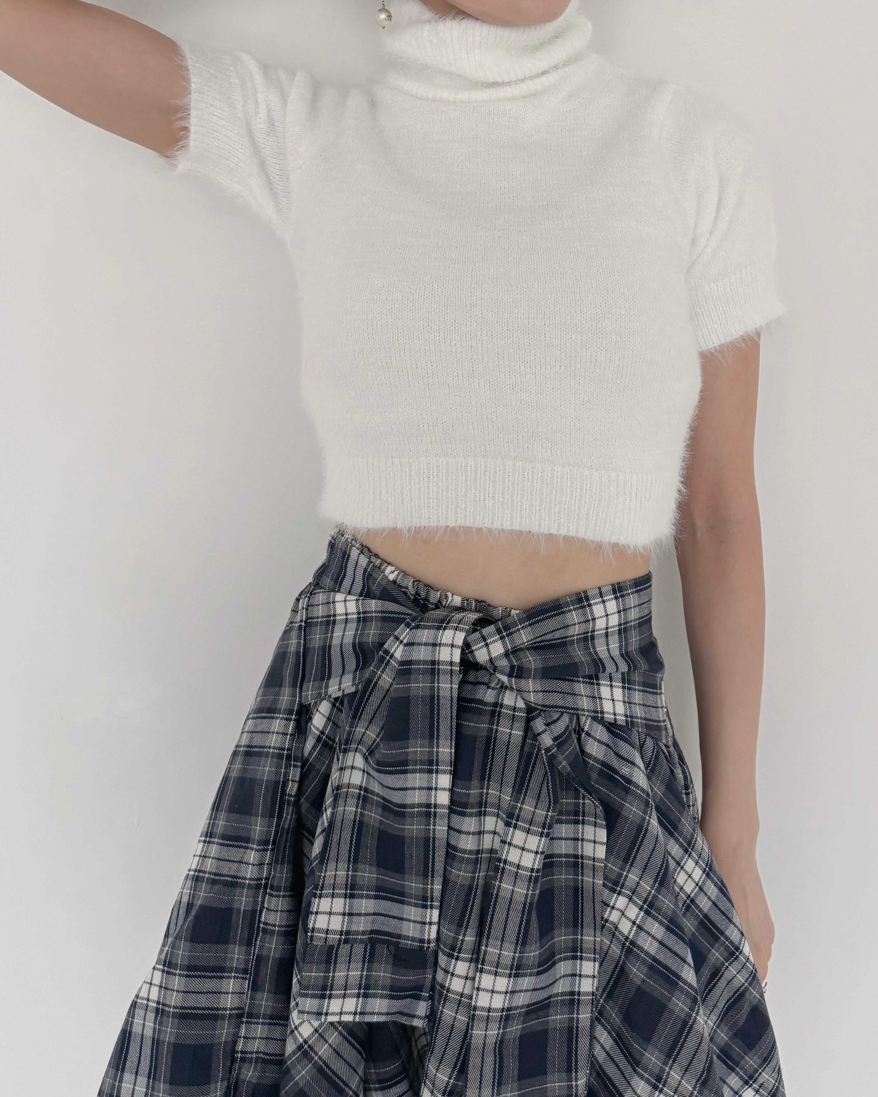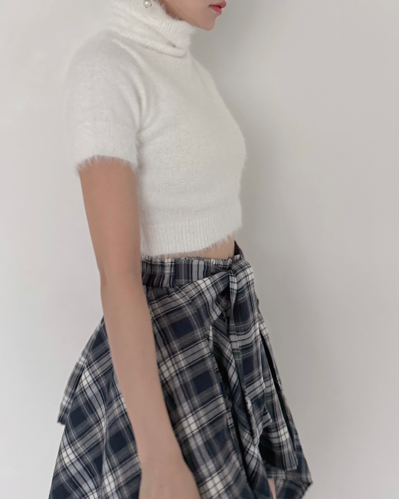 タートルネックとコンパクトなフォルムが女性らしいバランス感を演出します。