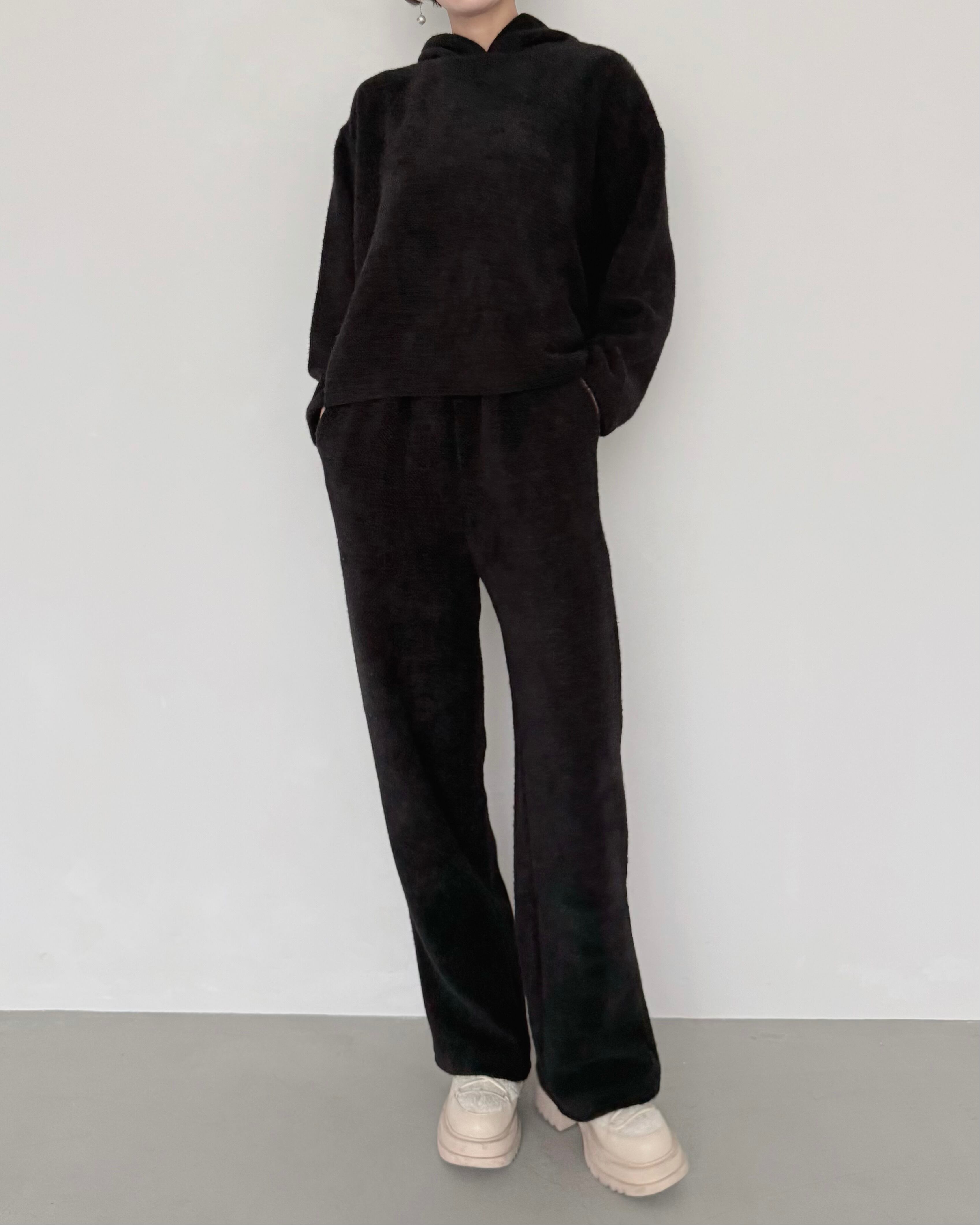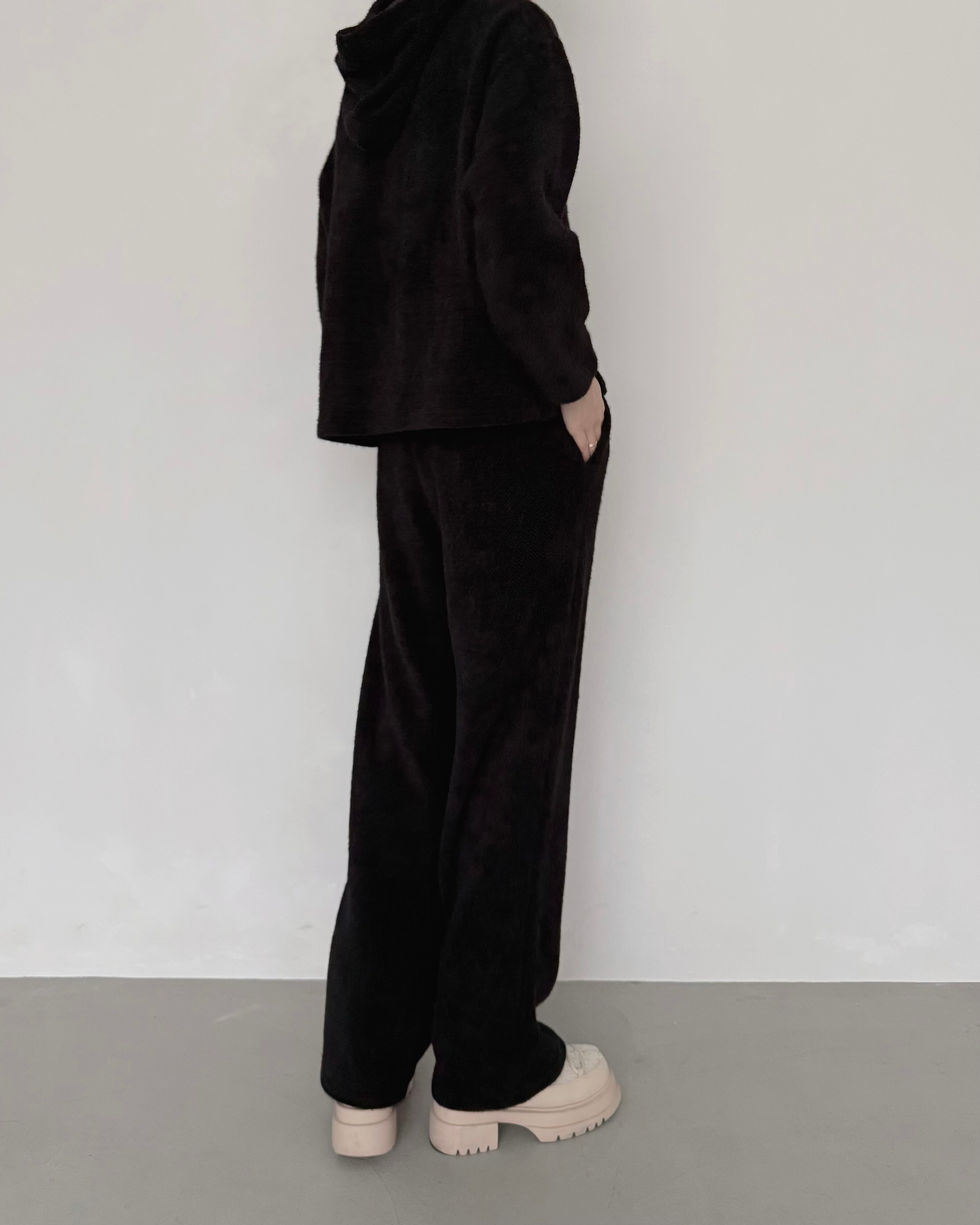 柔らかなシャギーフリース素材を贅沢に使用したセットアップ。