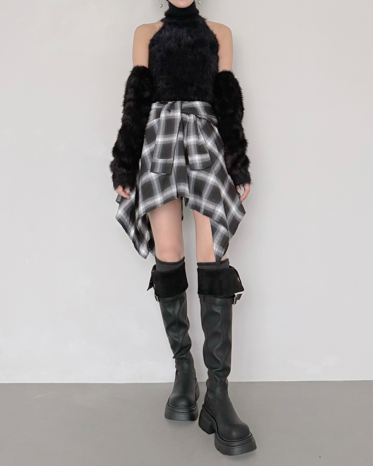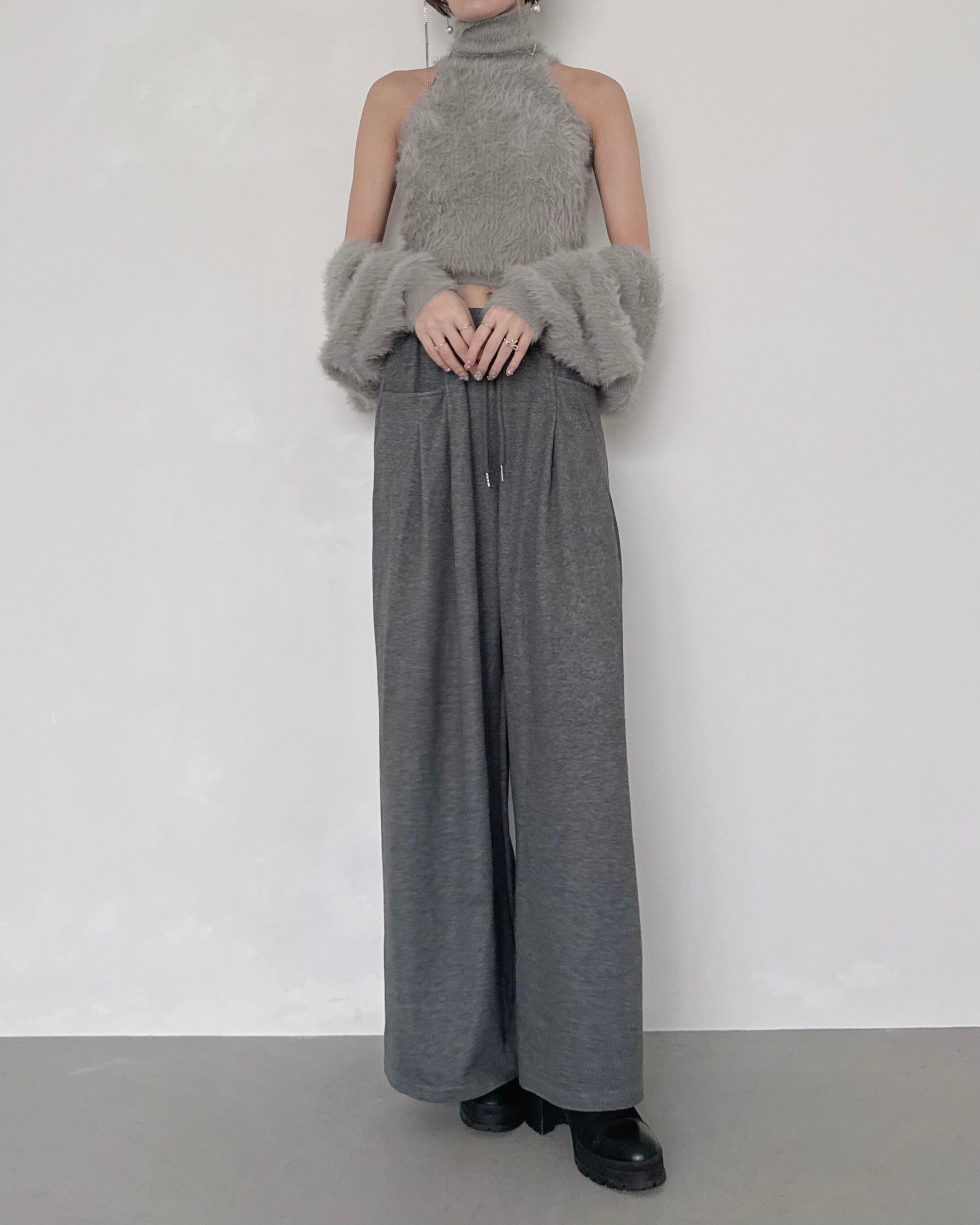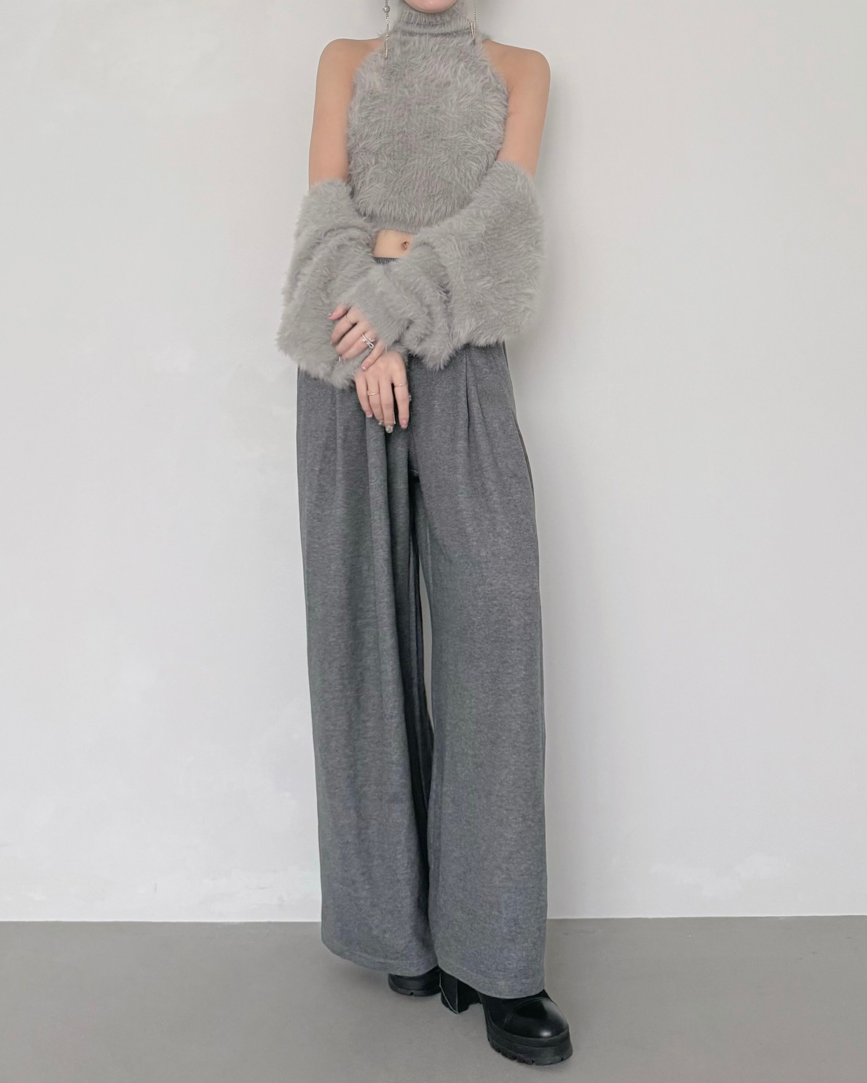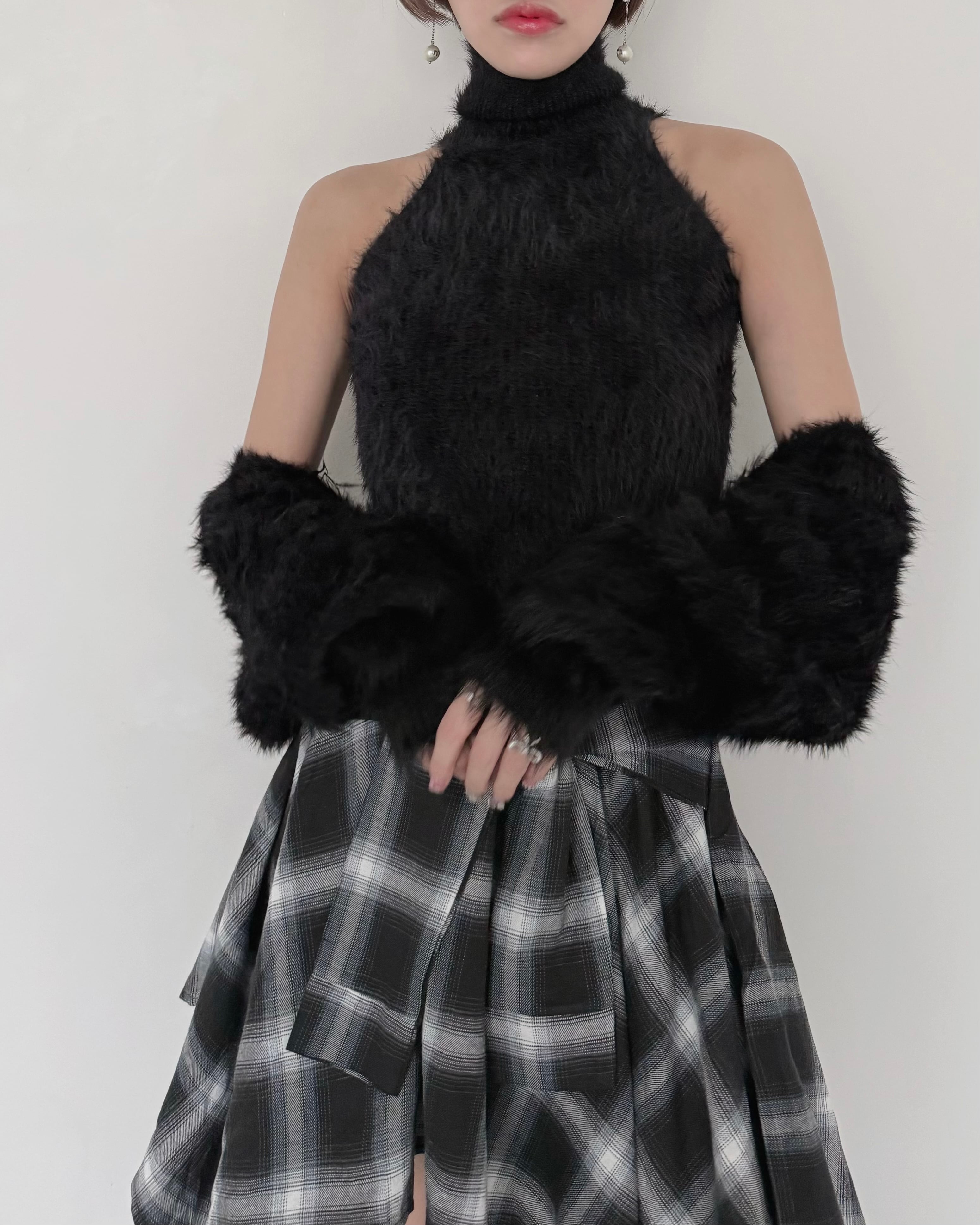 ふわふわ感と程よい肌見せのバランスが絶妙なシャギーニットのアンサンブル。