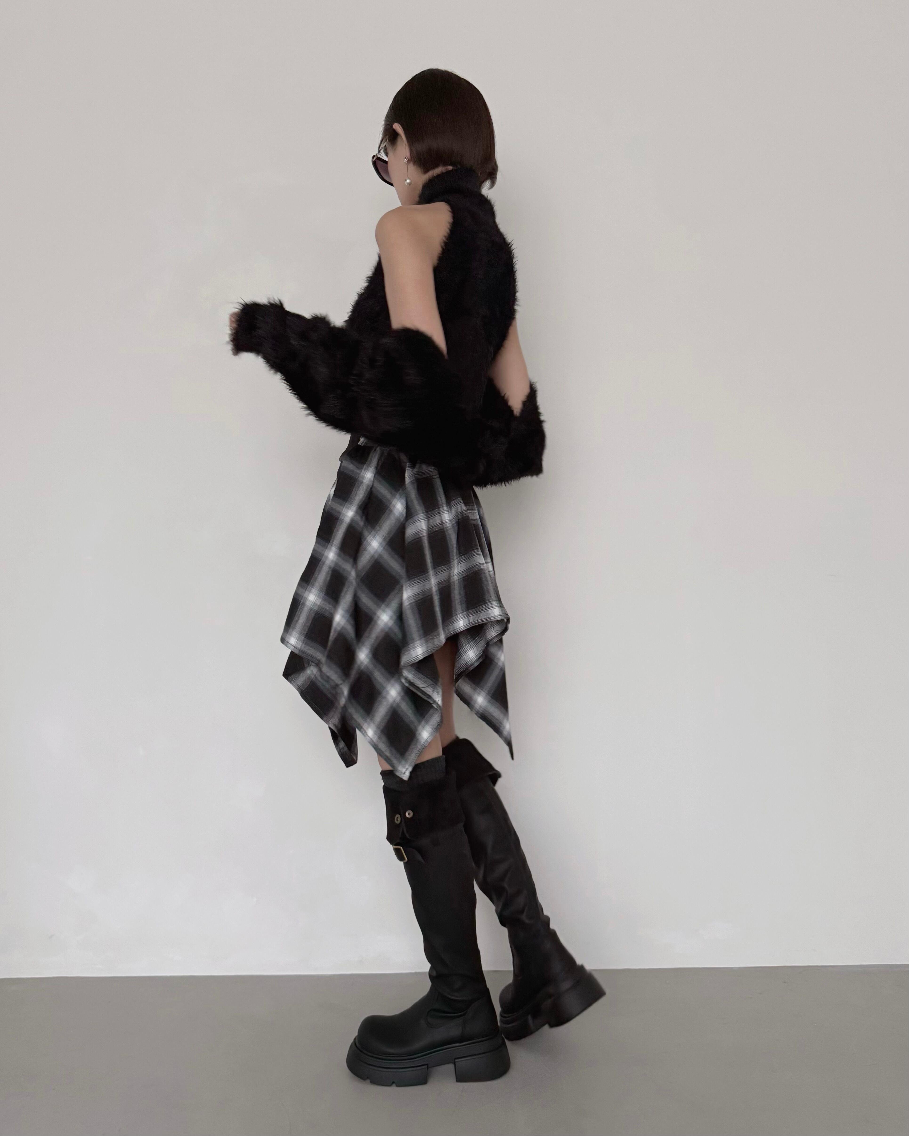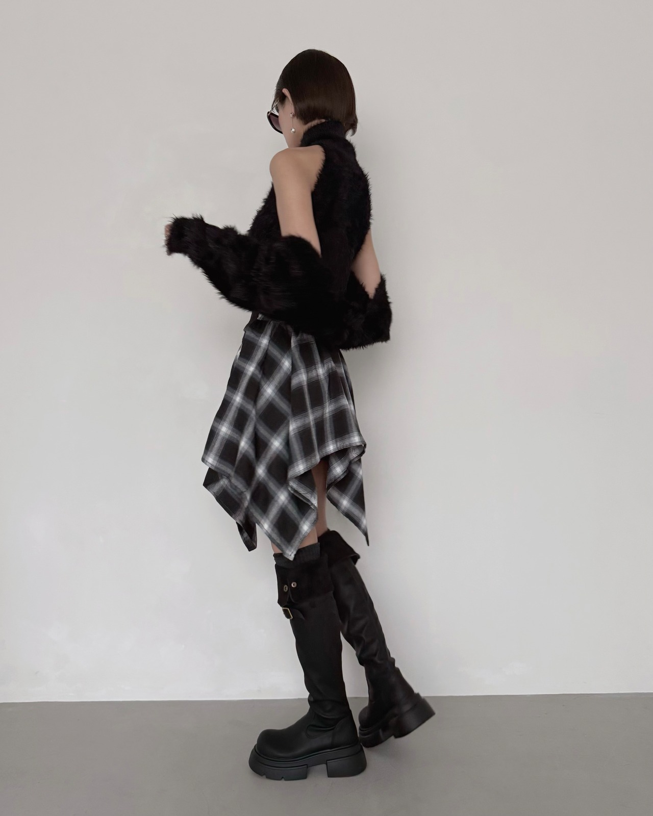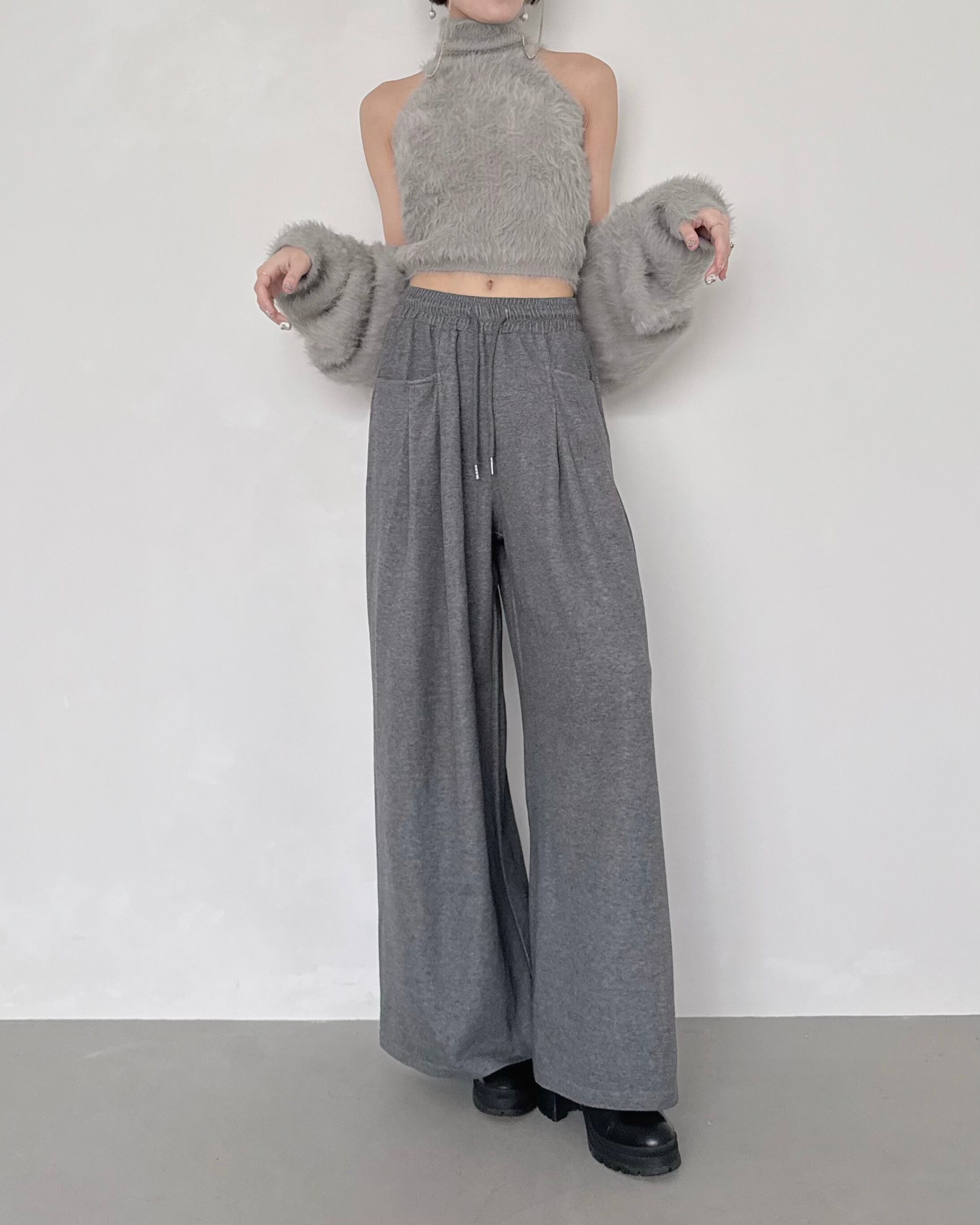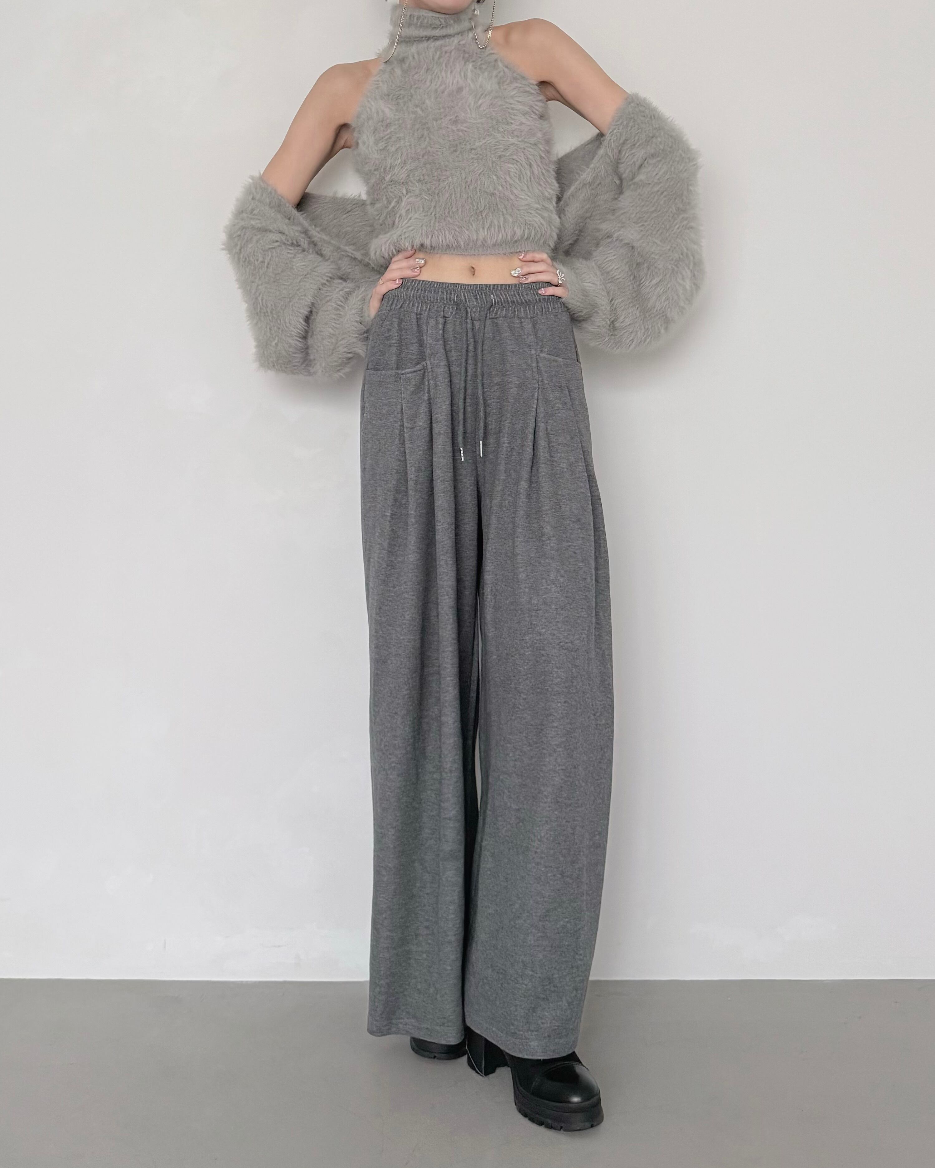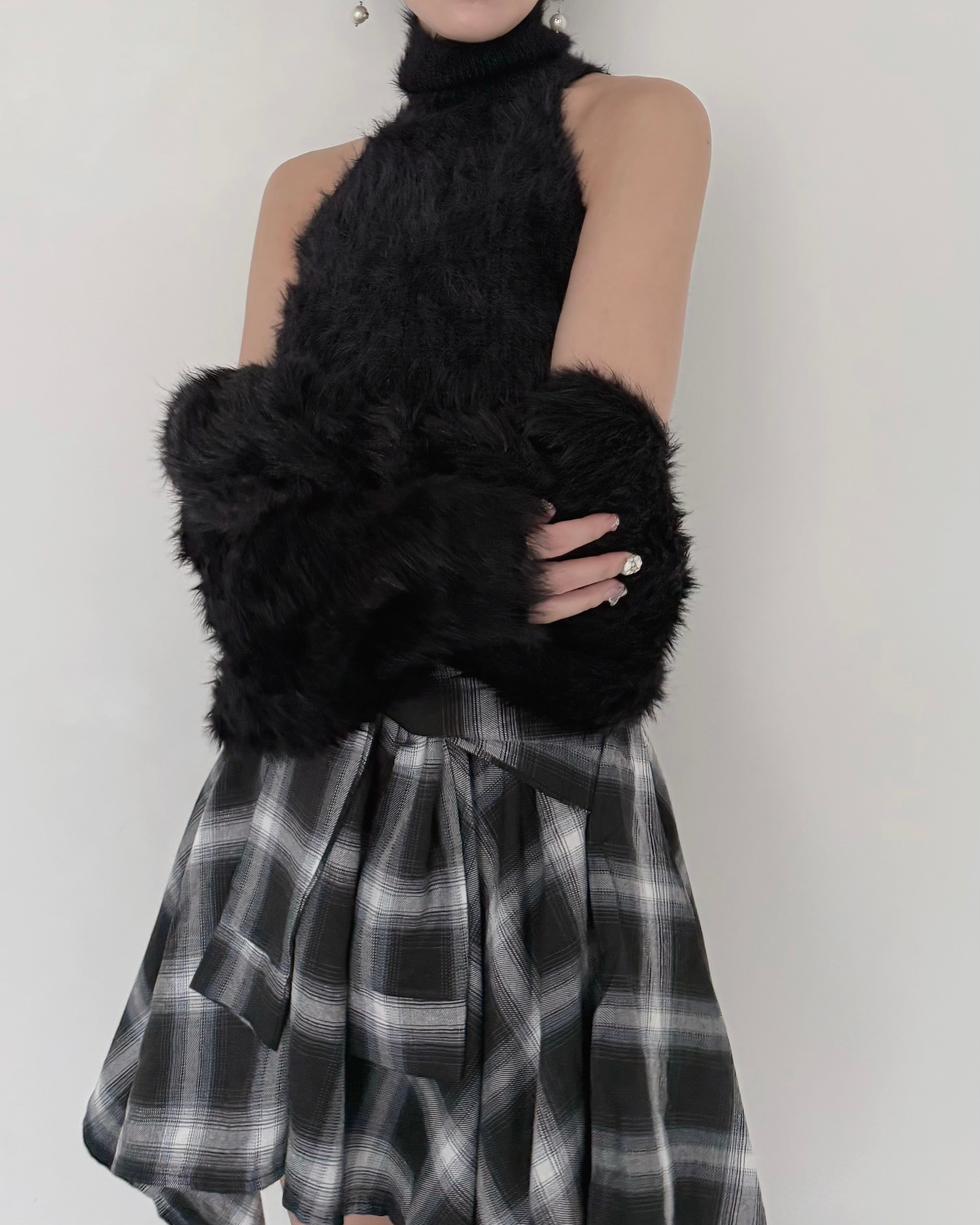 ふわふわ感と程よい肌見せのバランスが絶妙なシャギーニットのアンサンブル。