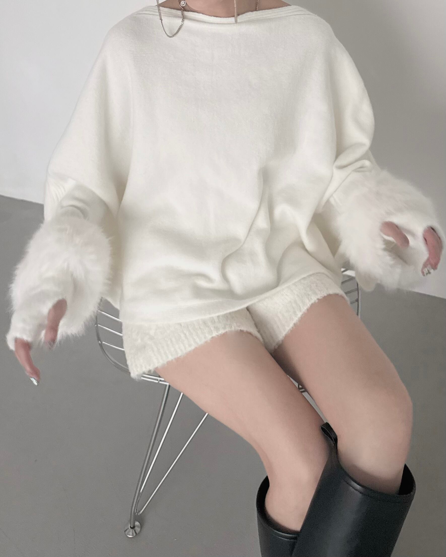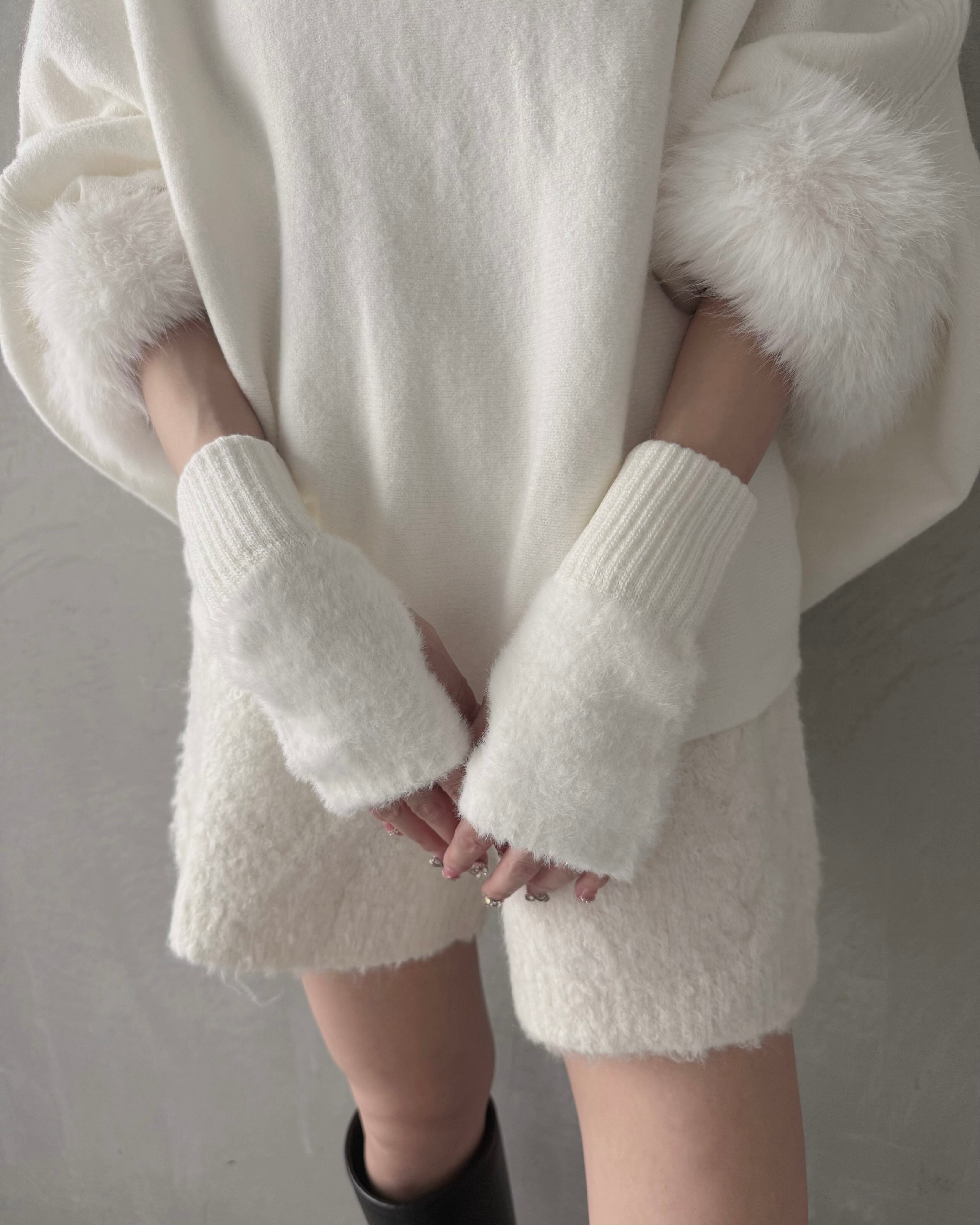 もこもこ素材のアームウォーマー。