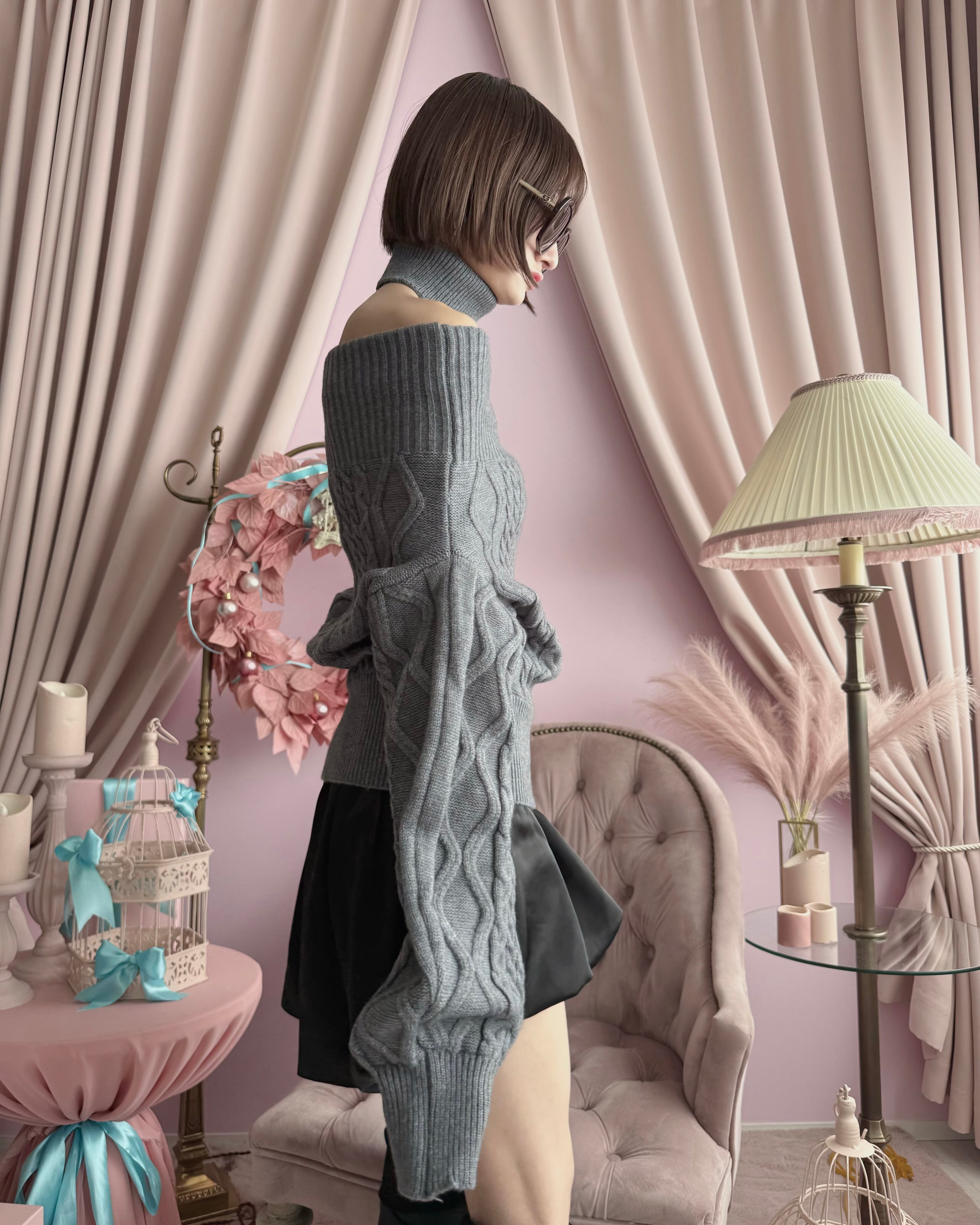 ✔ ケーブル編みがボリュームを足し、華奢見え効果◎