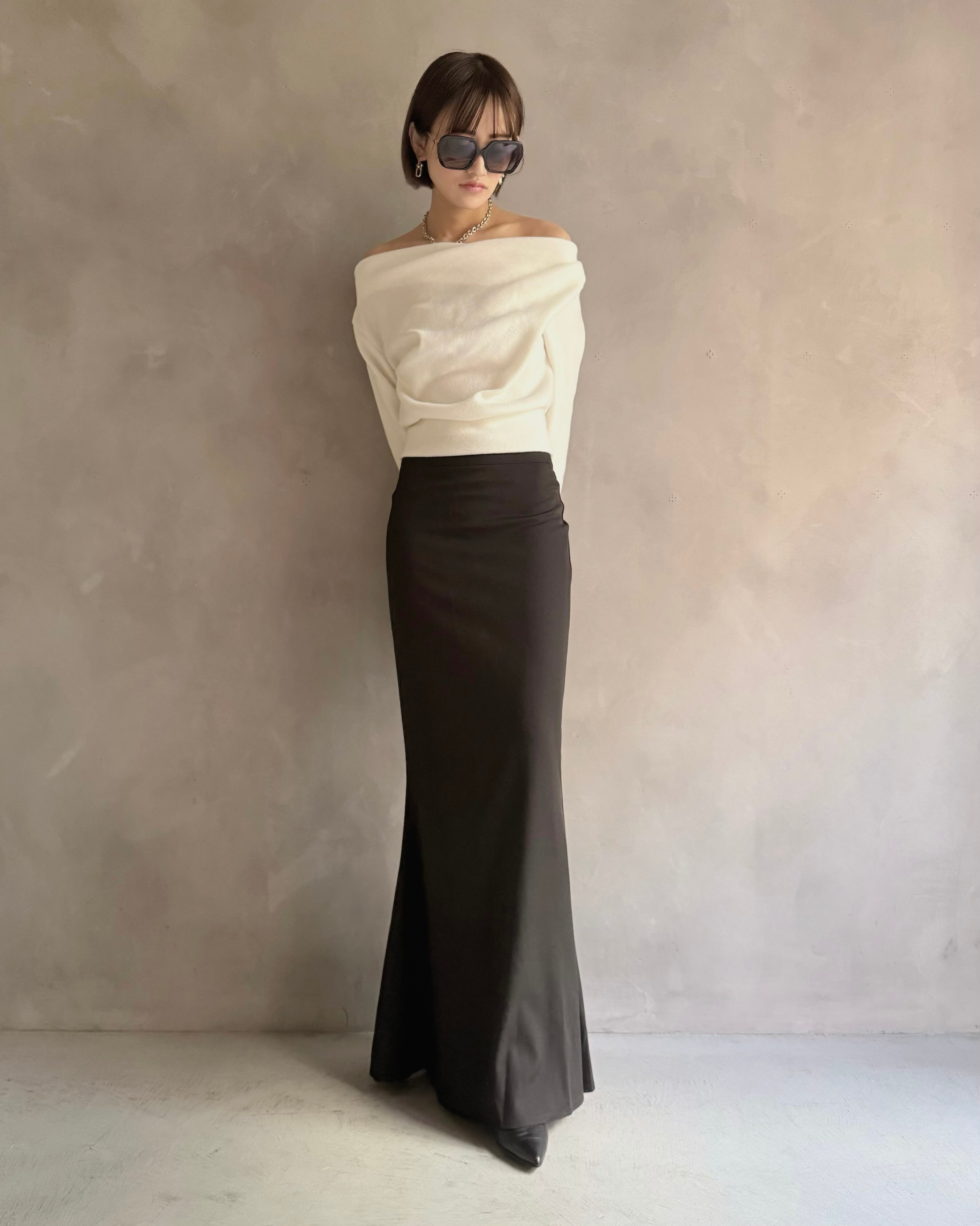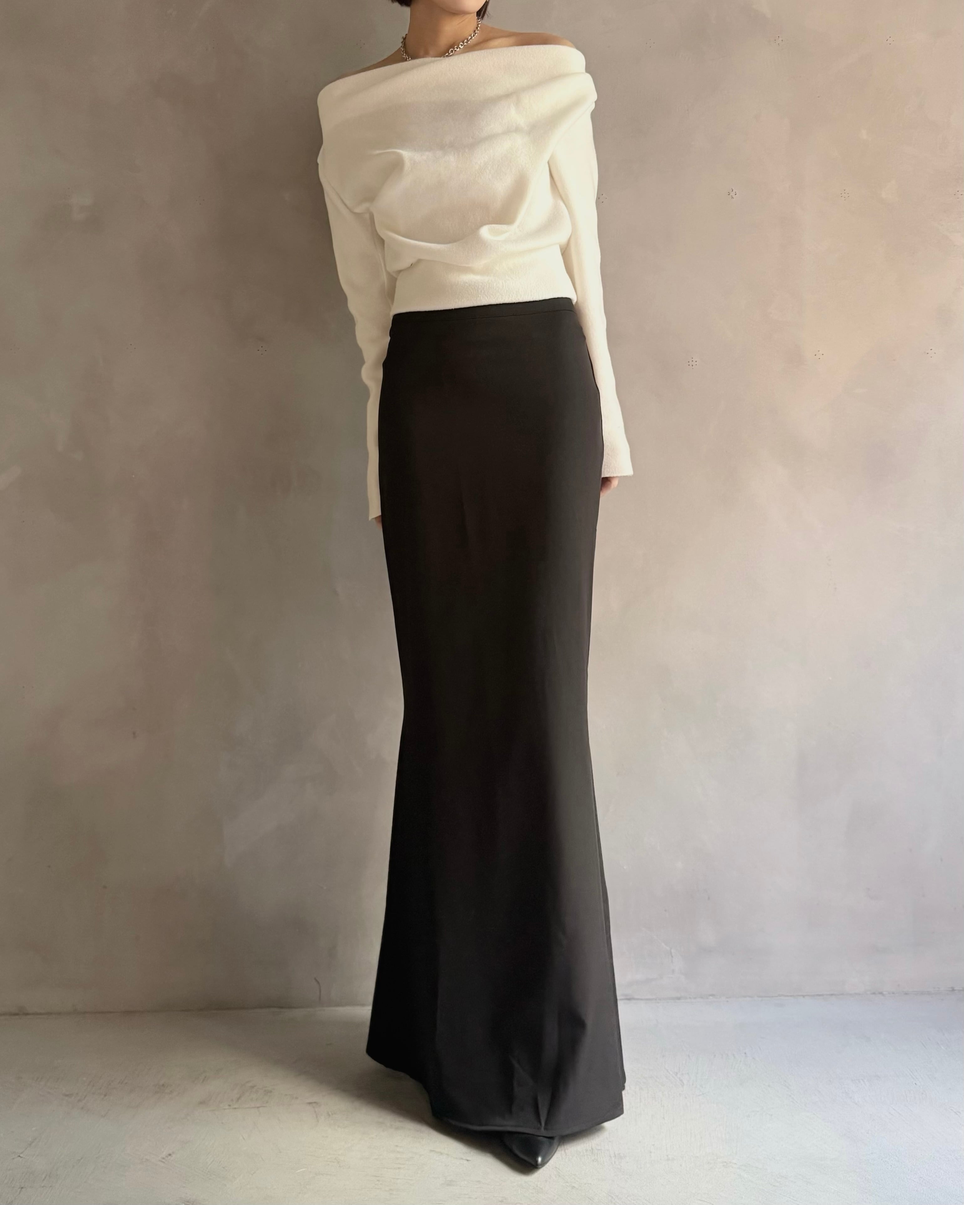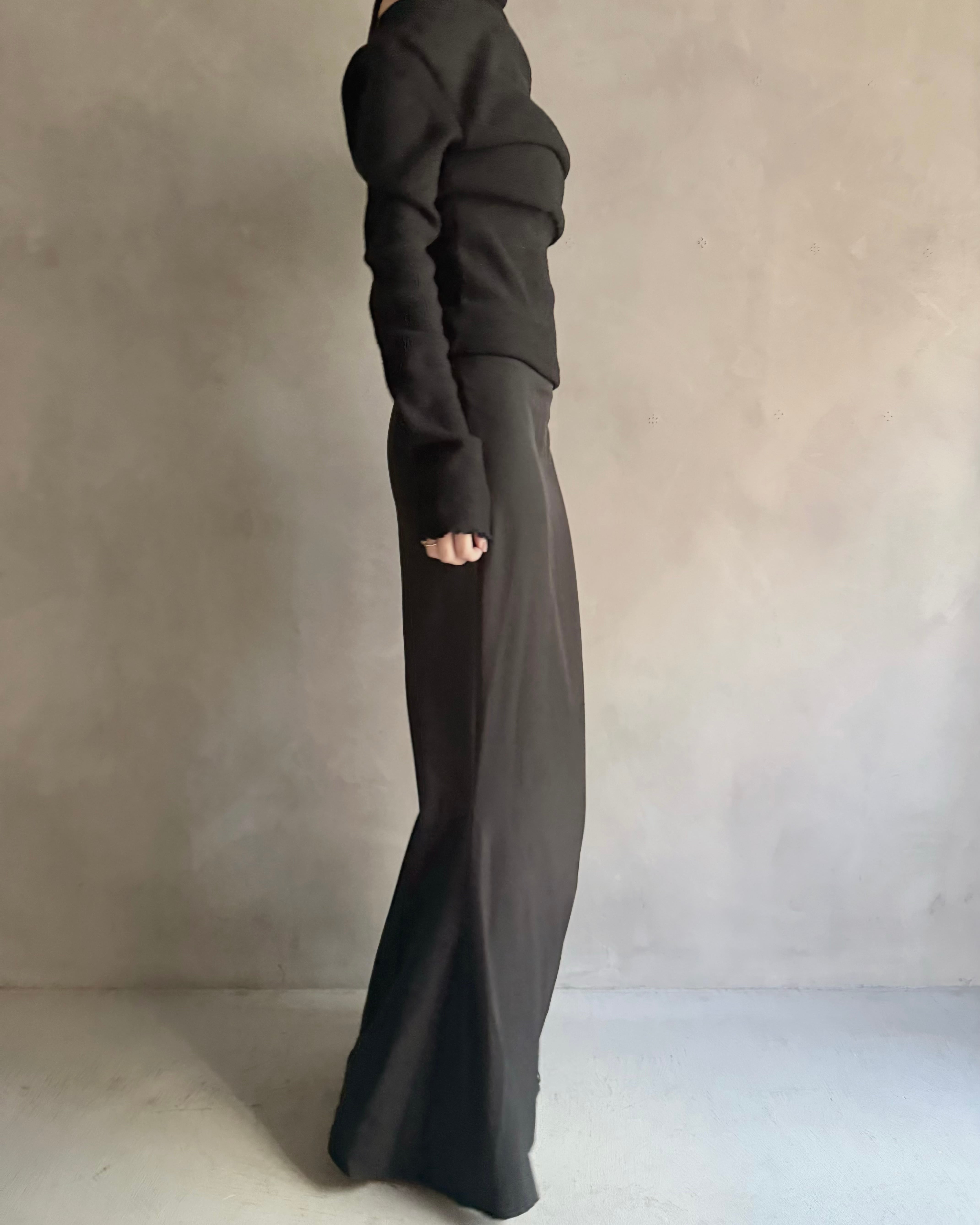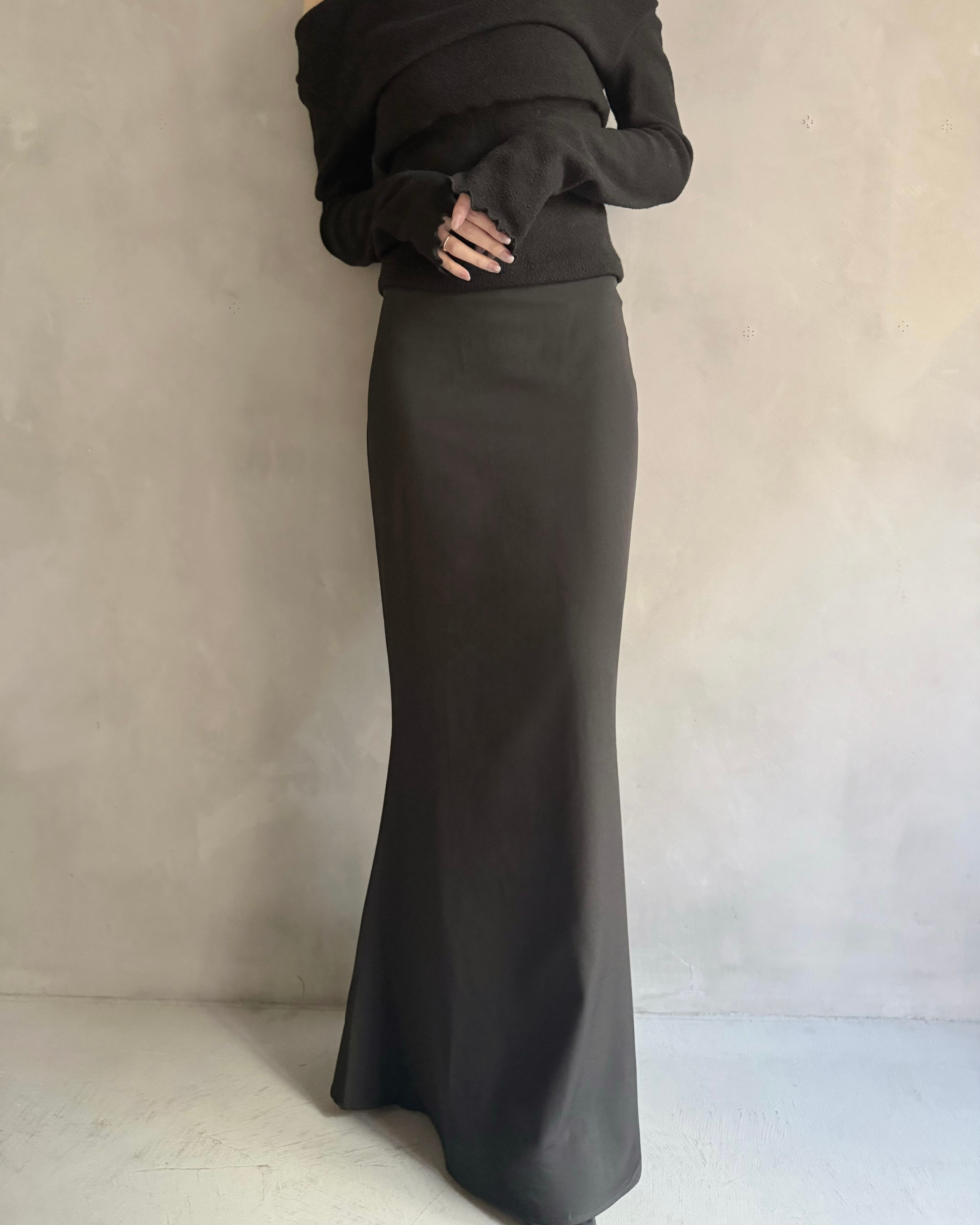 歩くたびに美しい縦ラインを演出するロングスカート。