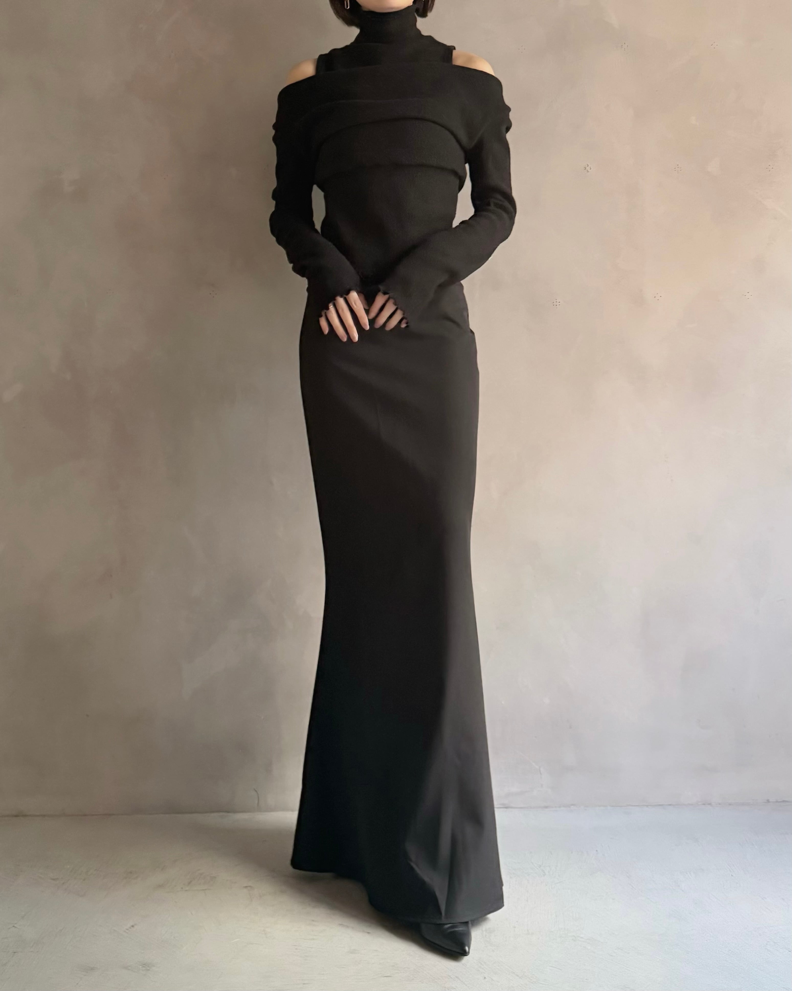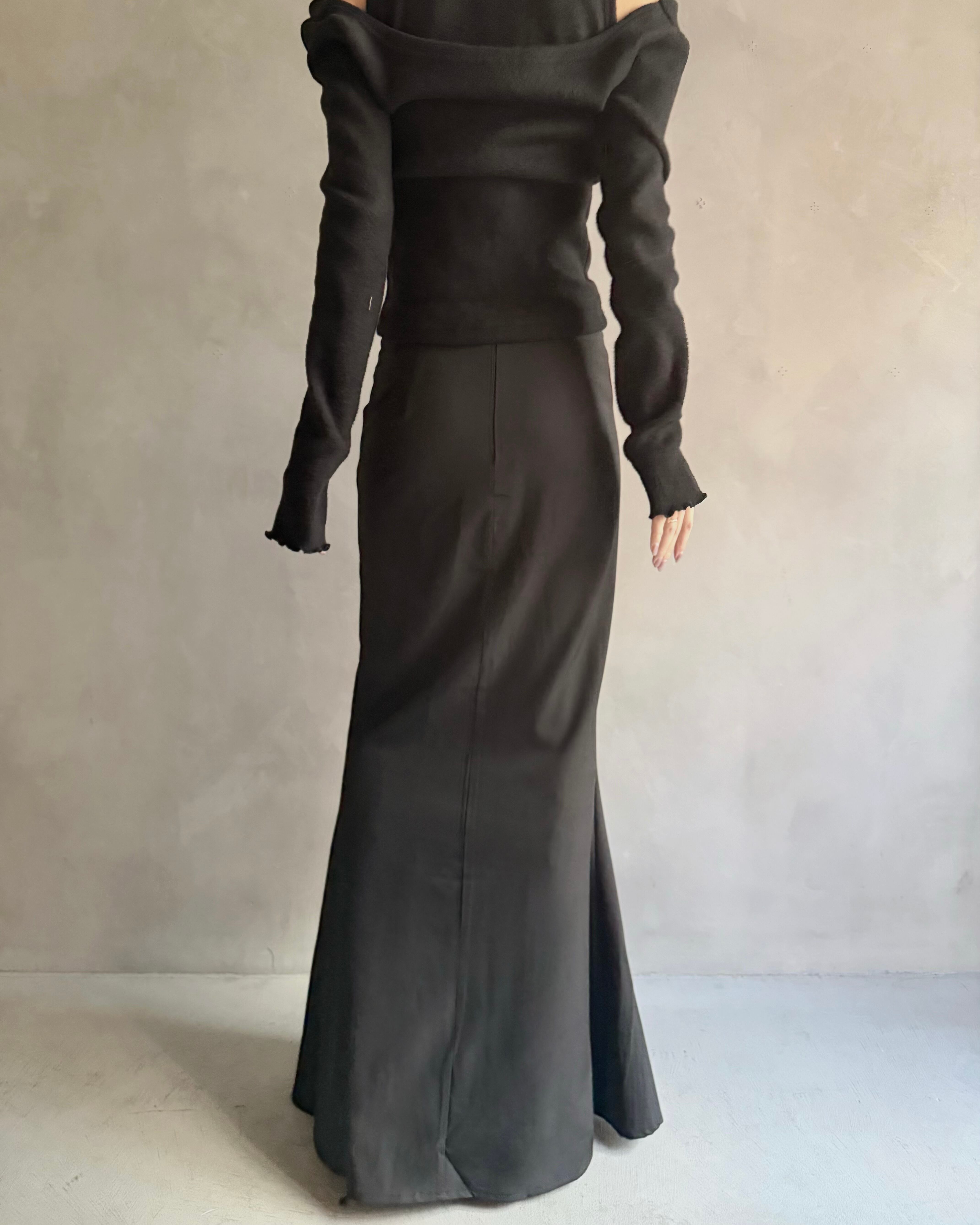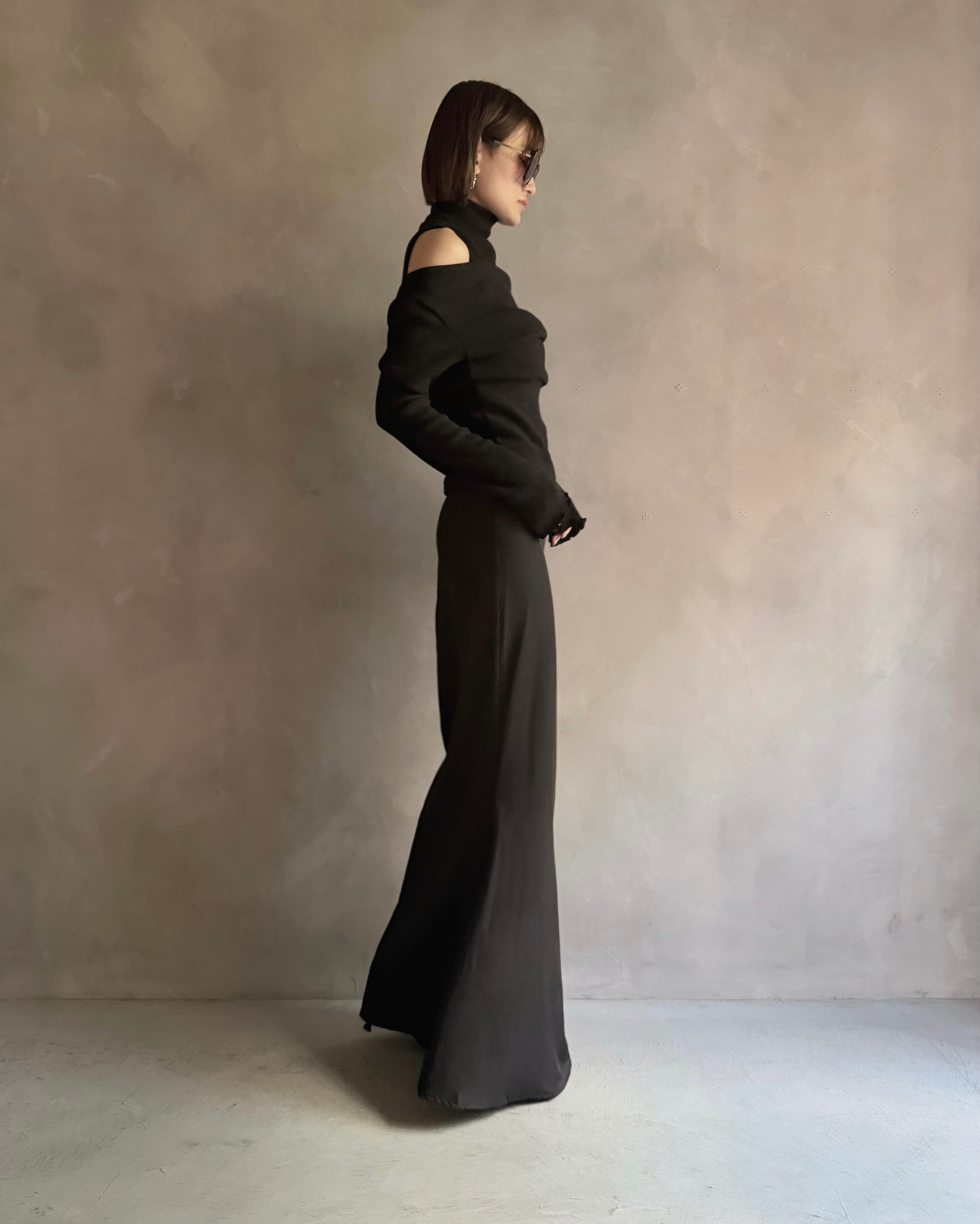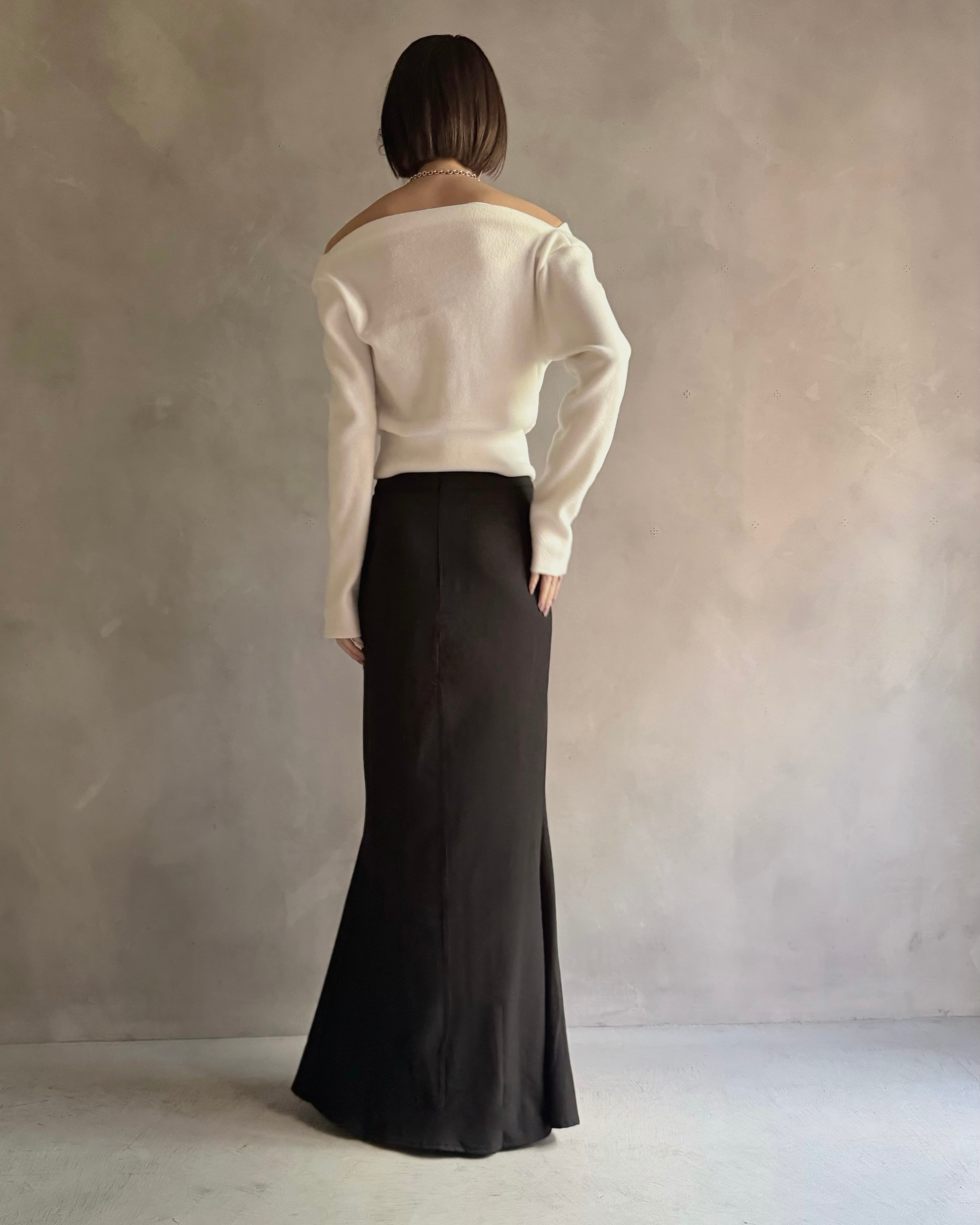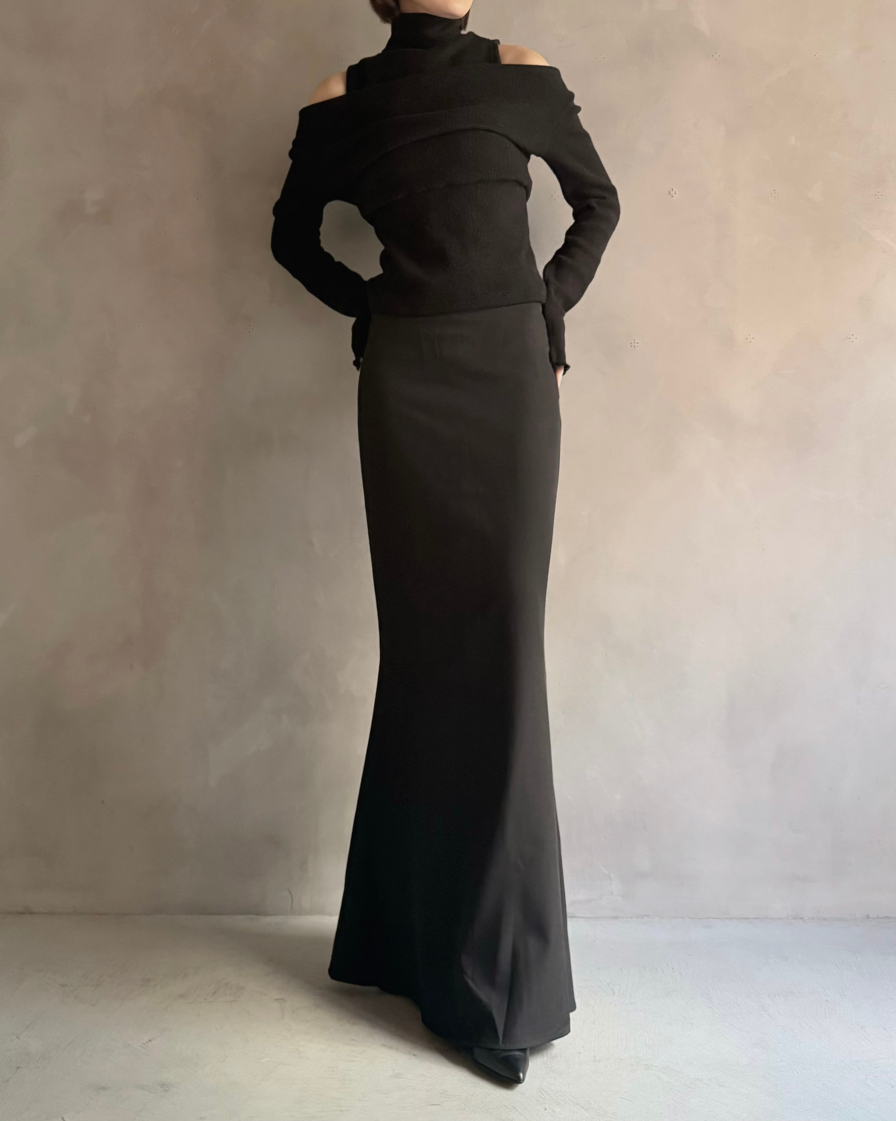 歩くたびに美しい縦ラインを演出するロングスカート。