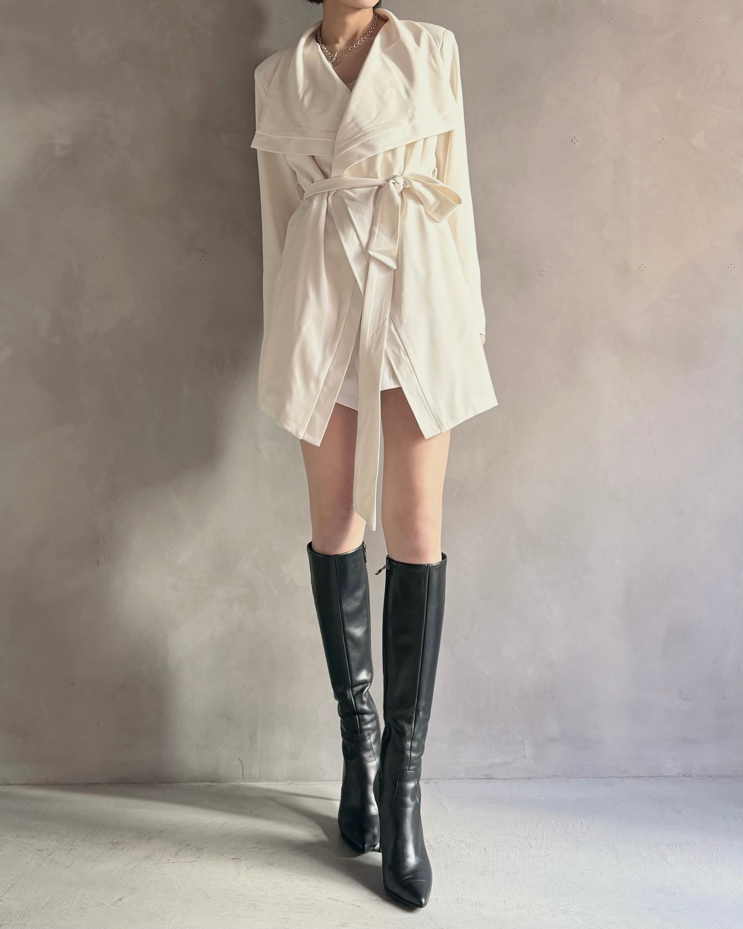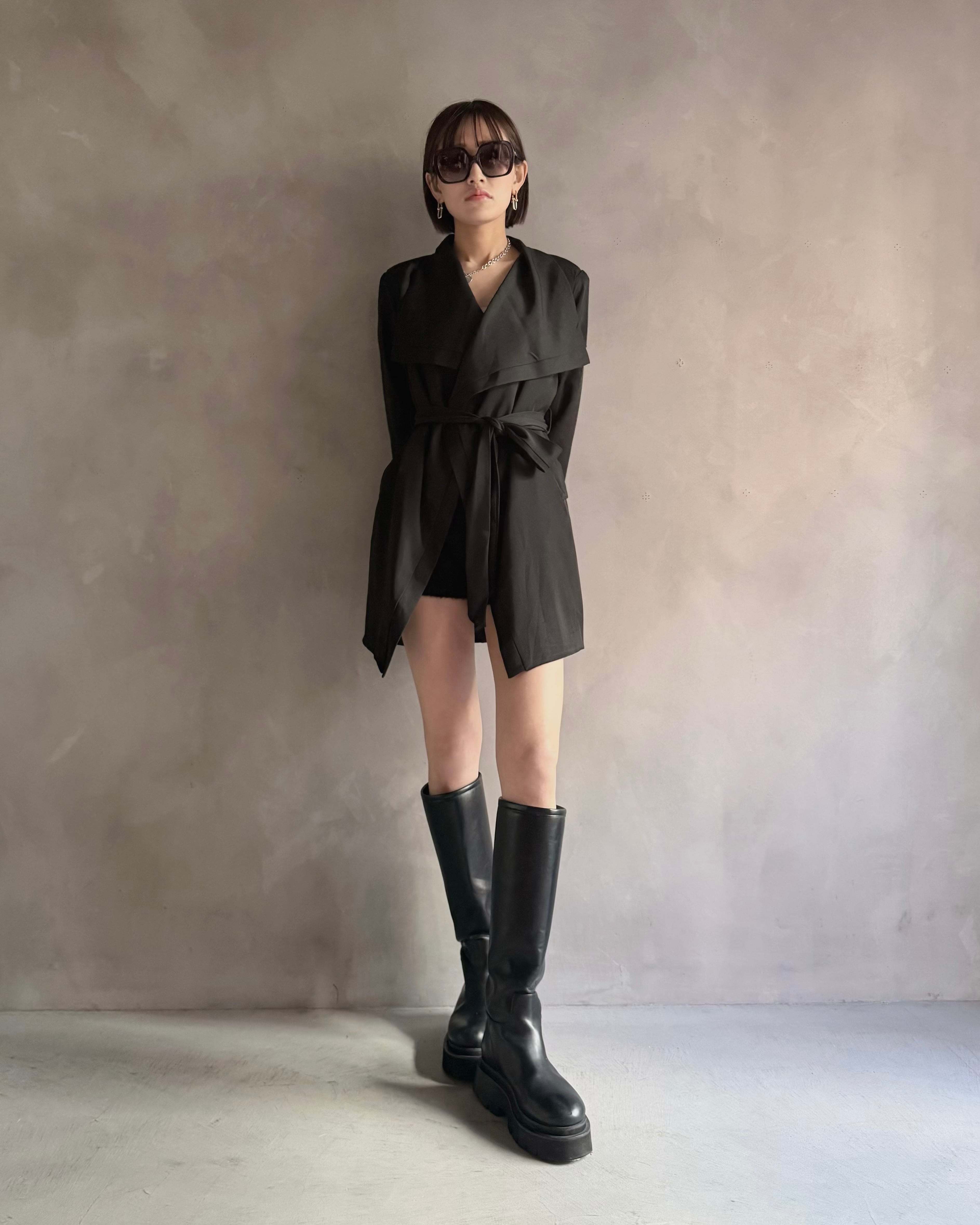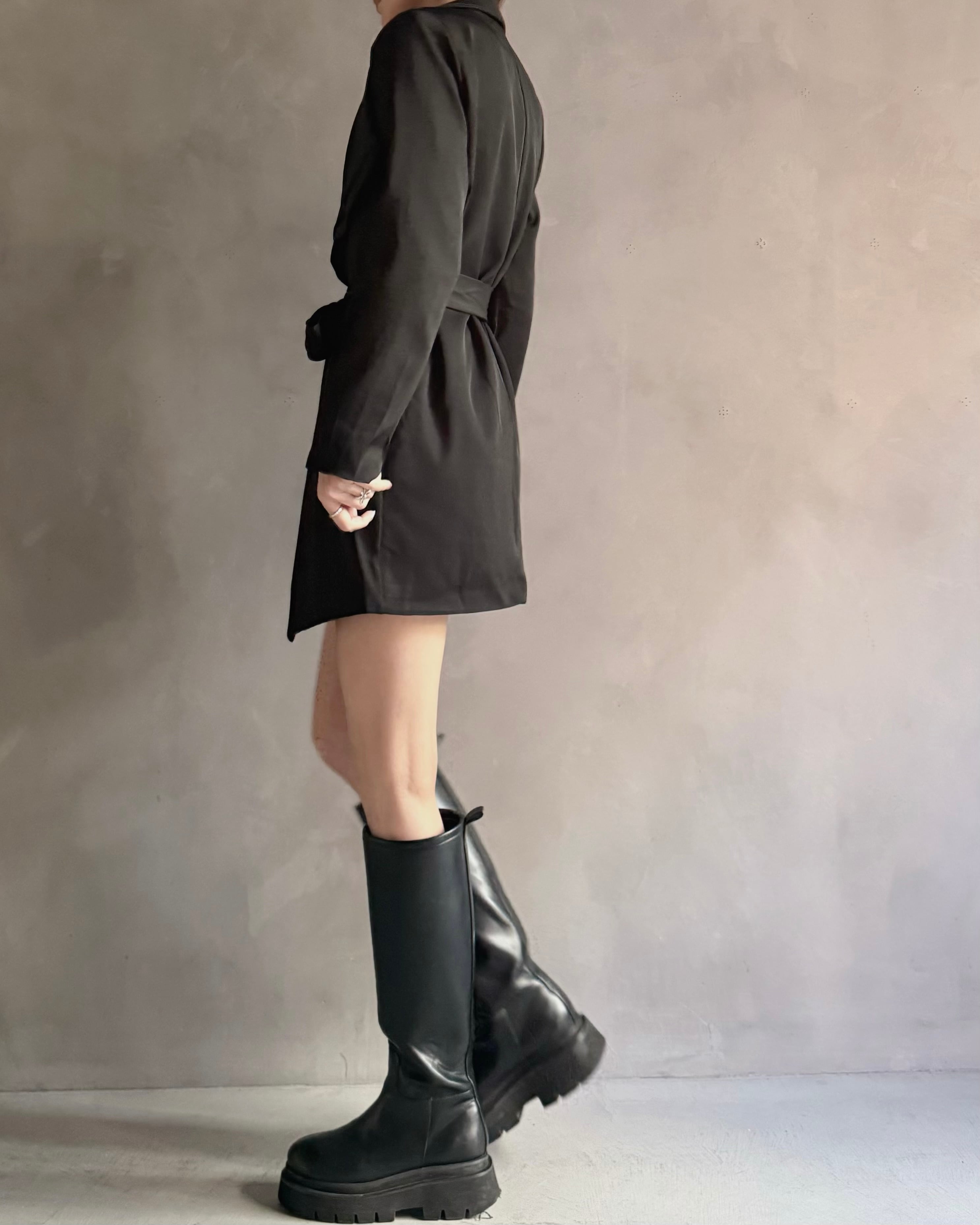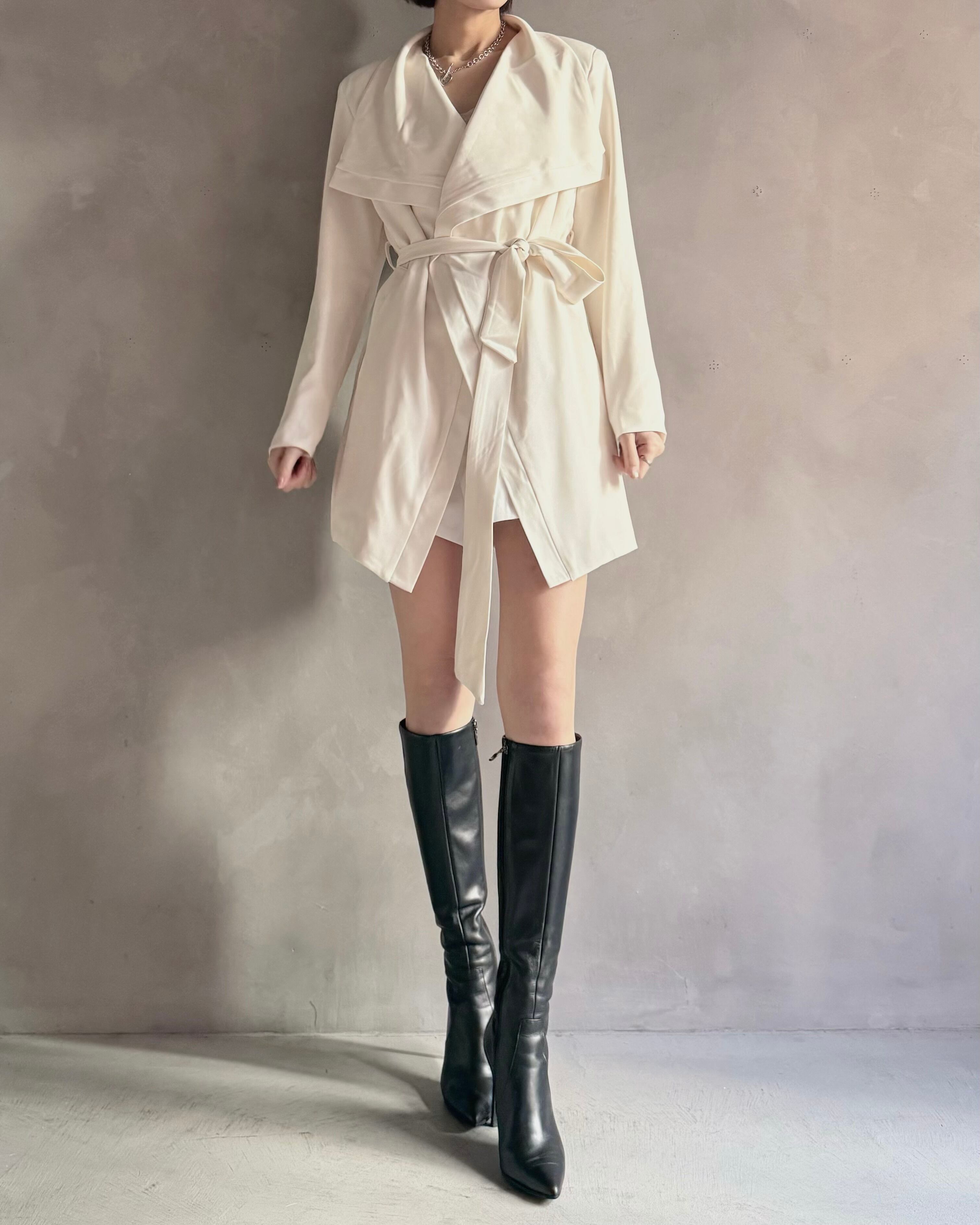 ロングブーツやミニボトムとの相性も良く、