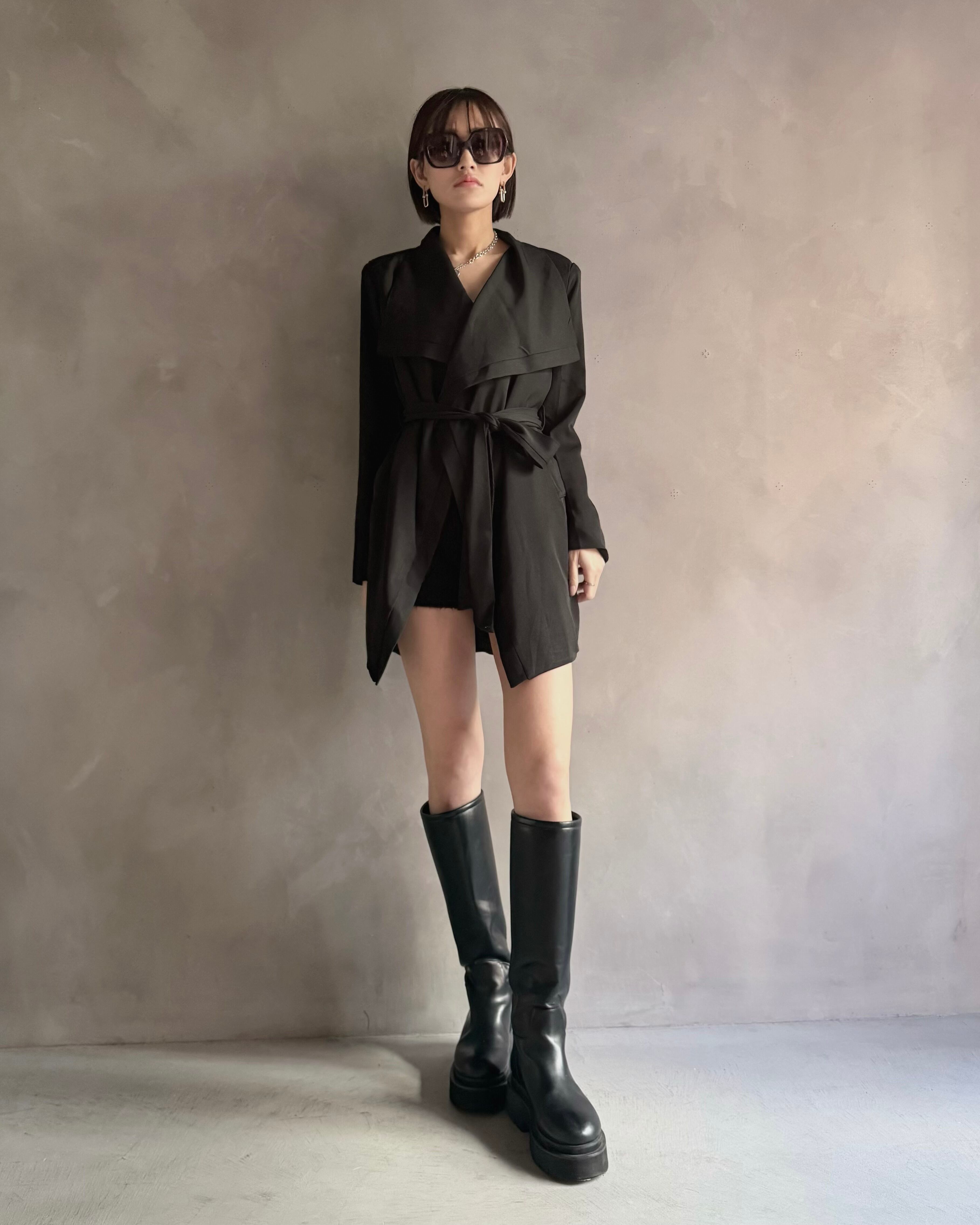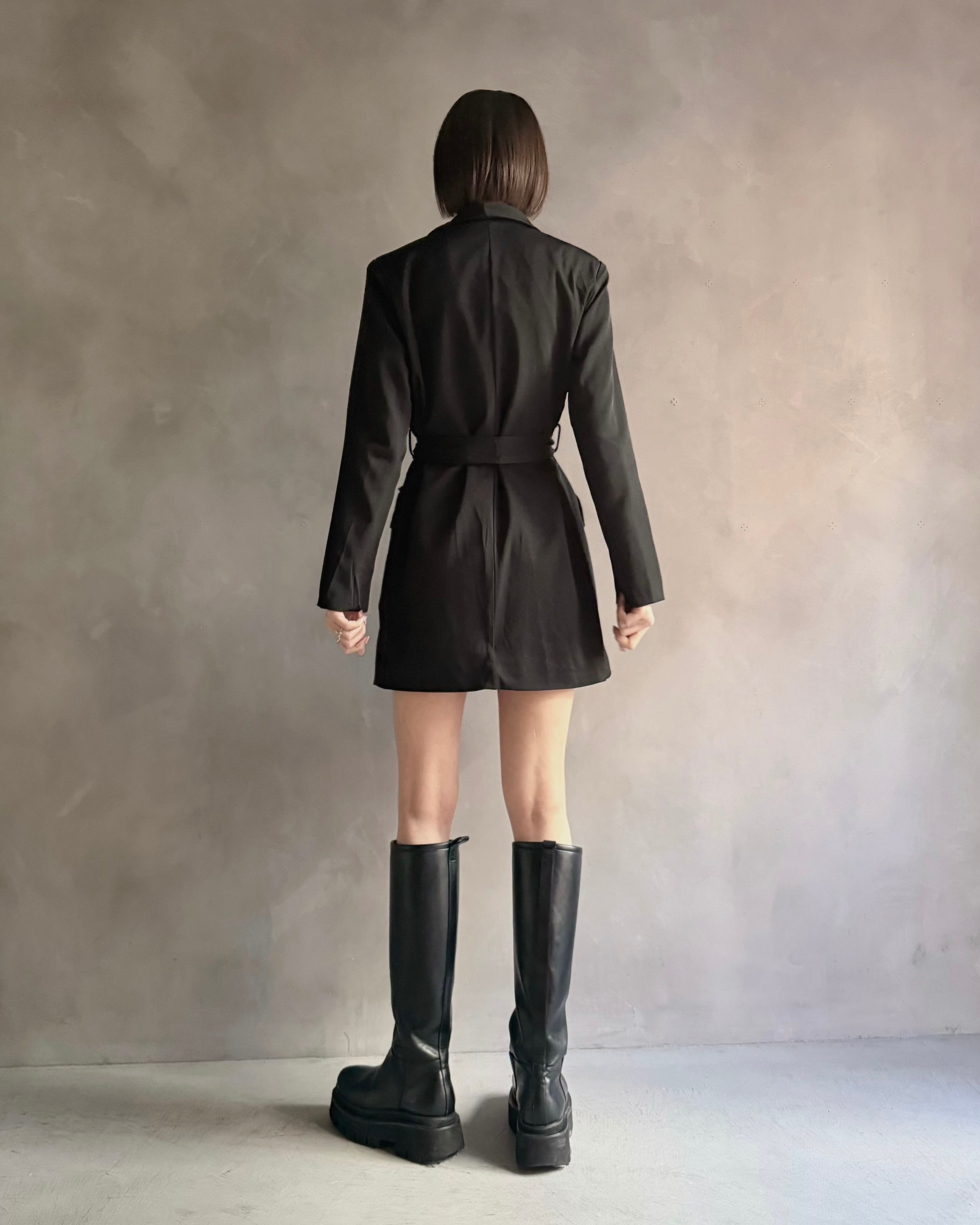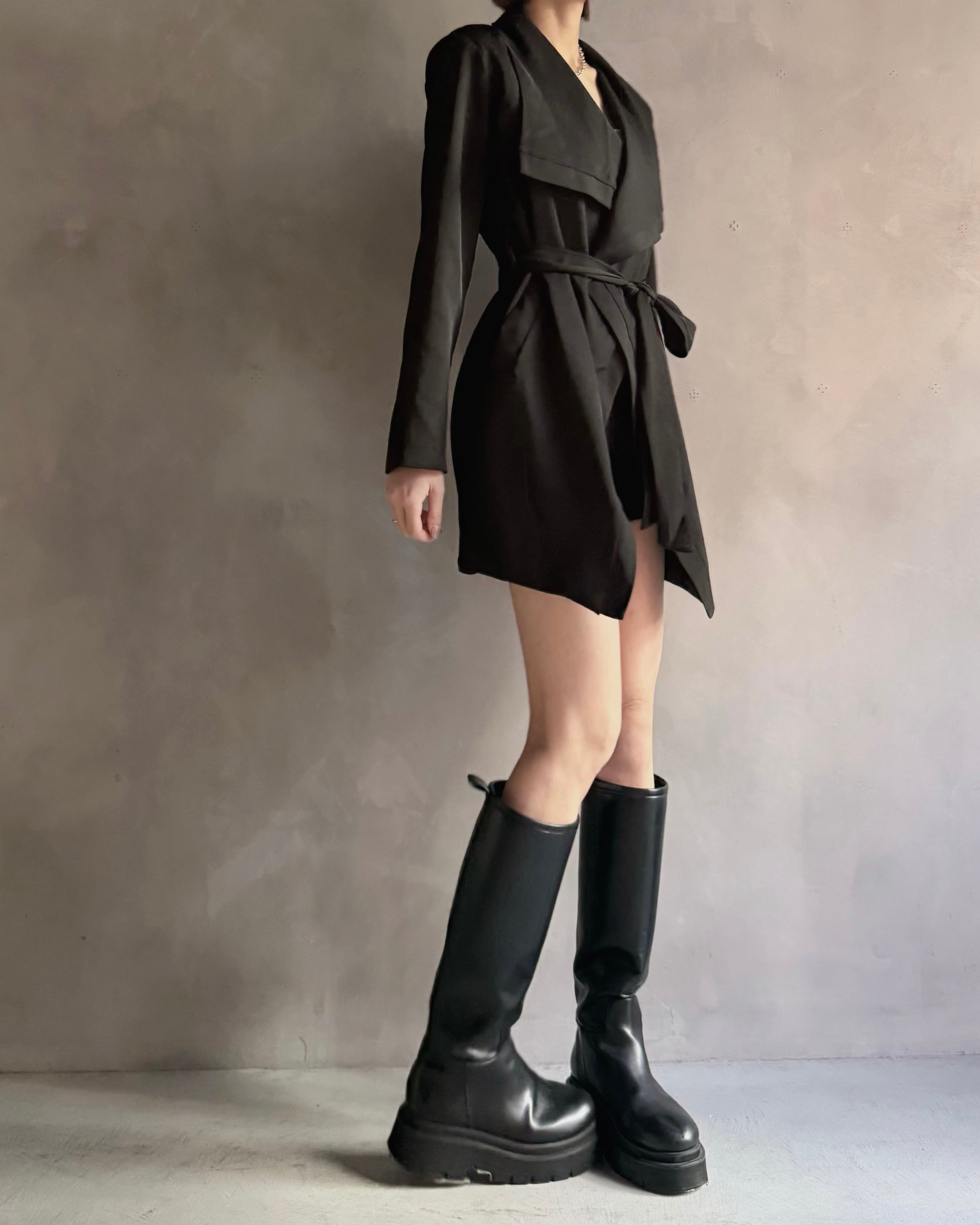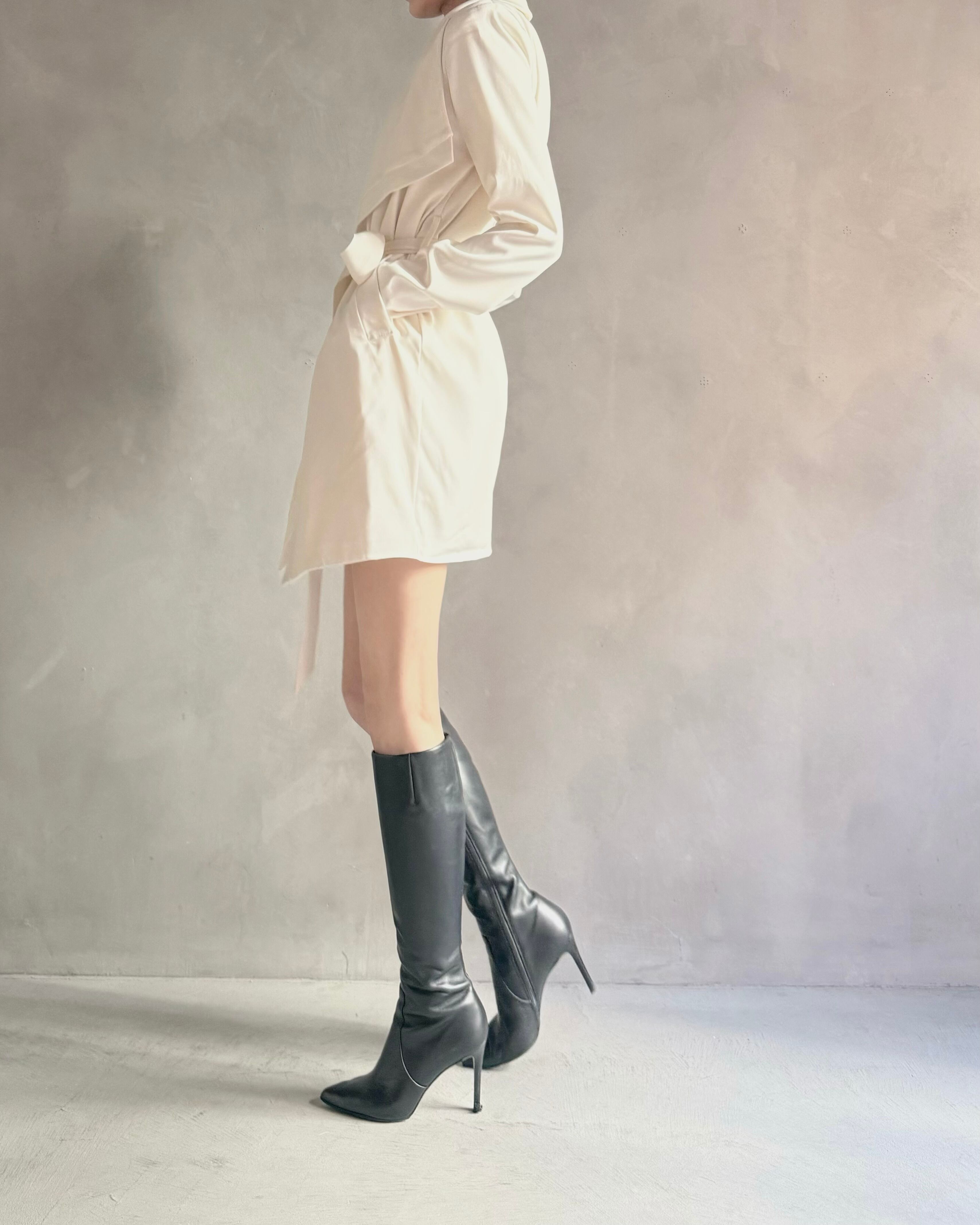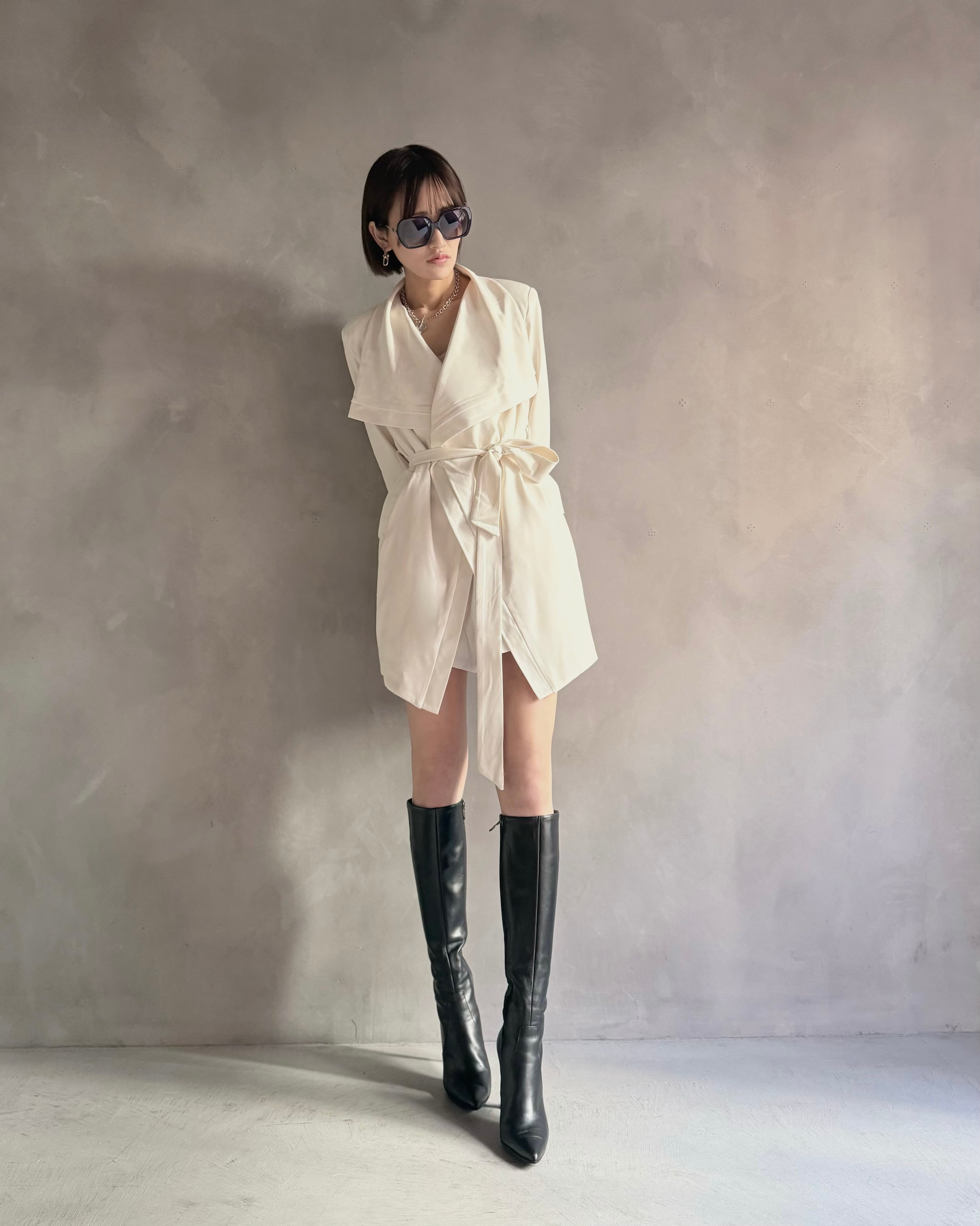 ロングブーツやミニボトムとの相性も良く、