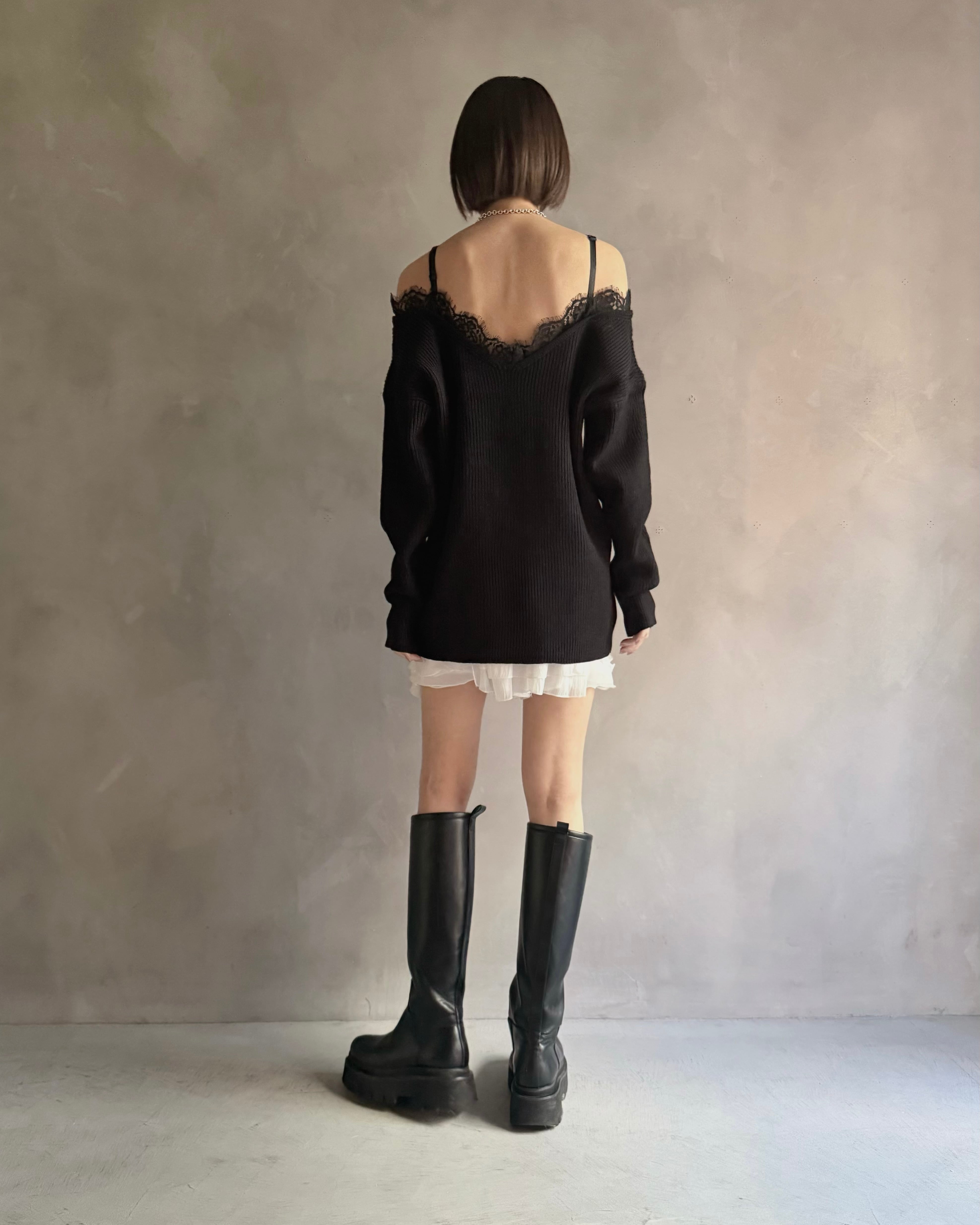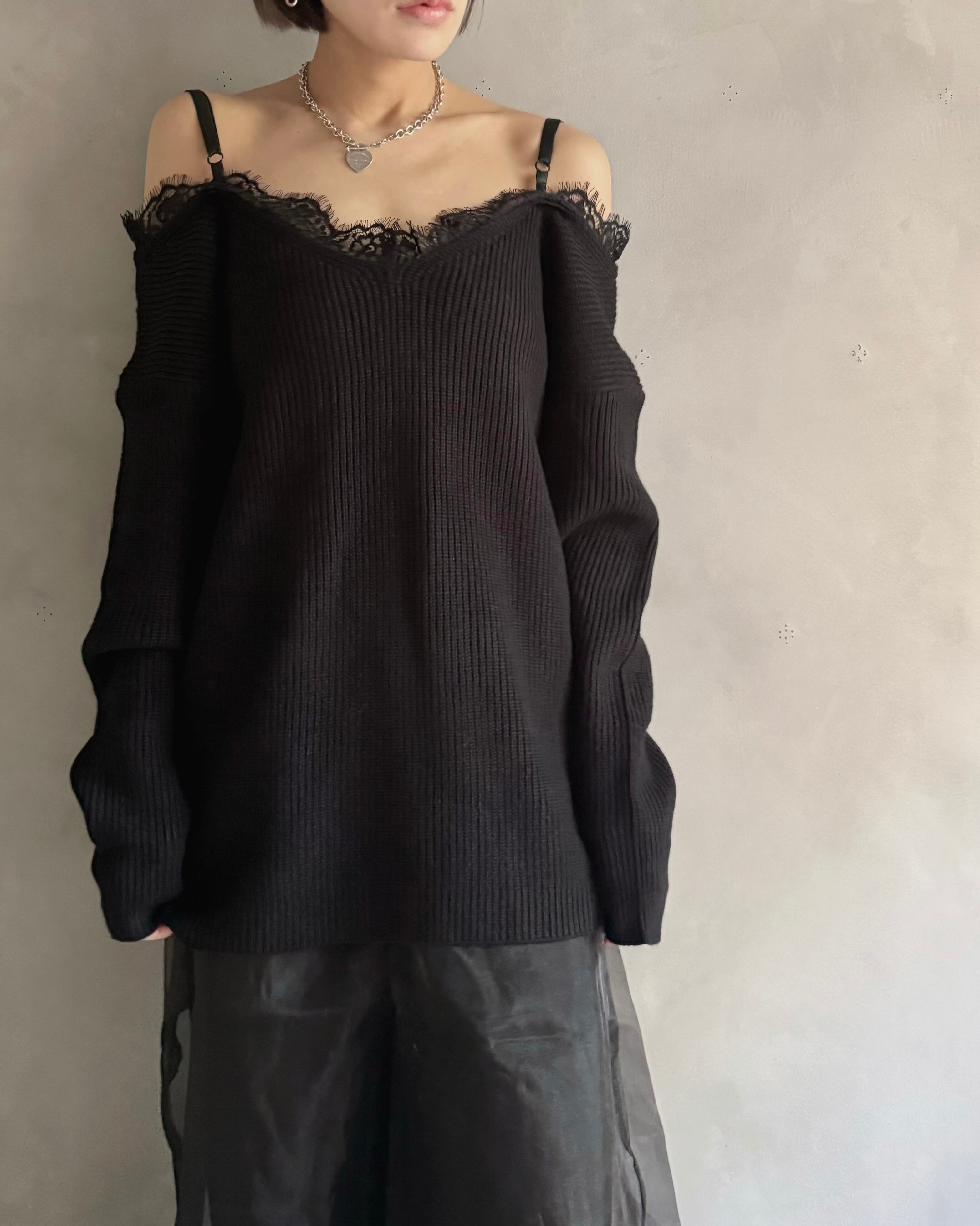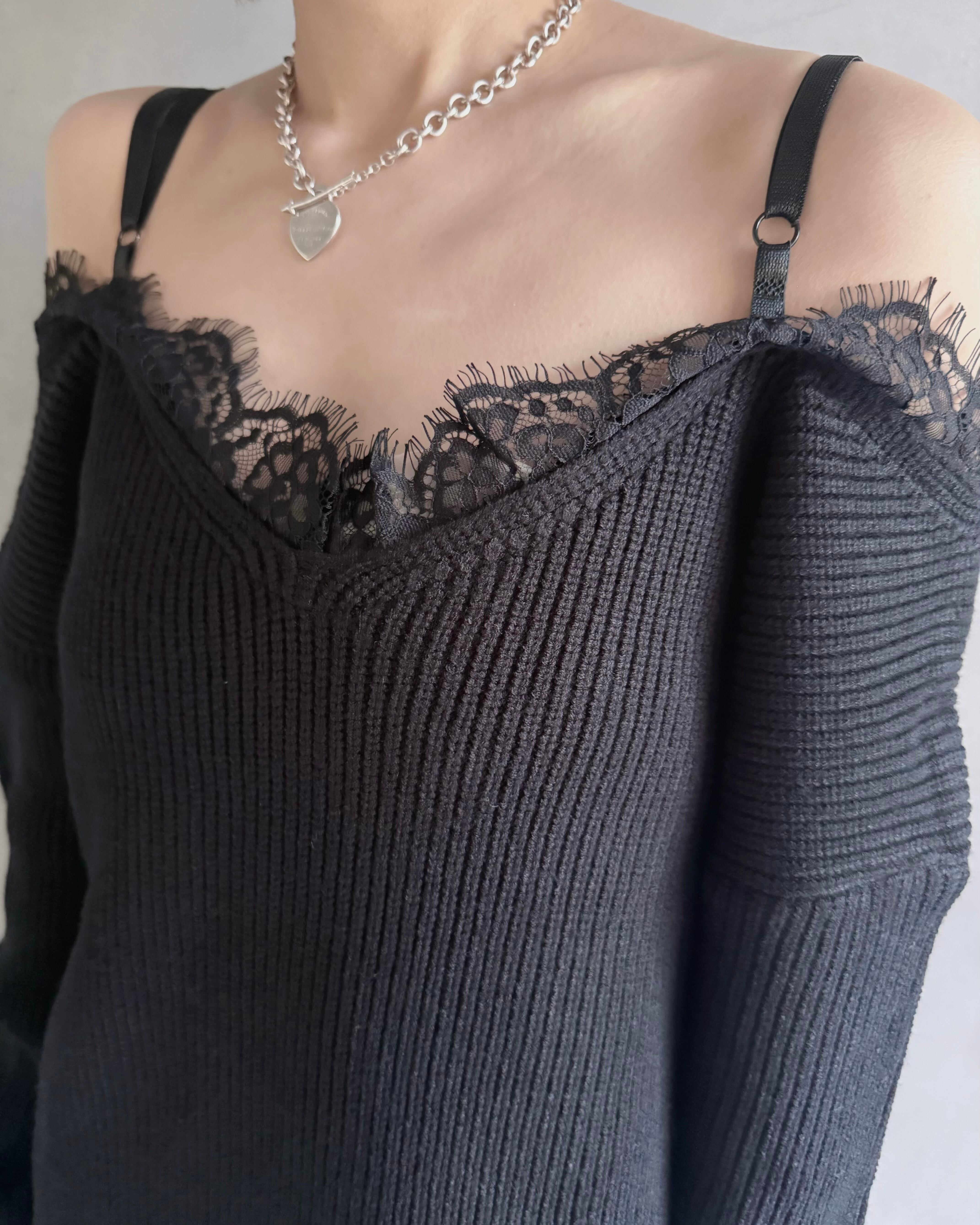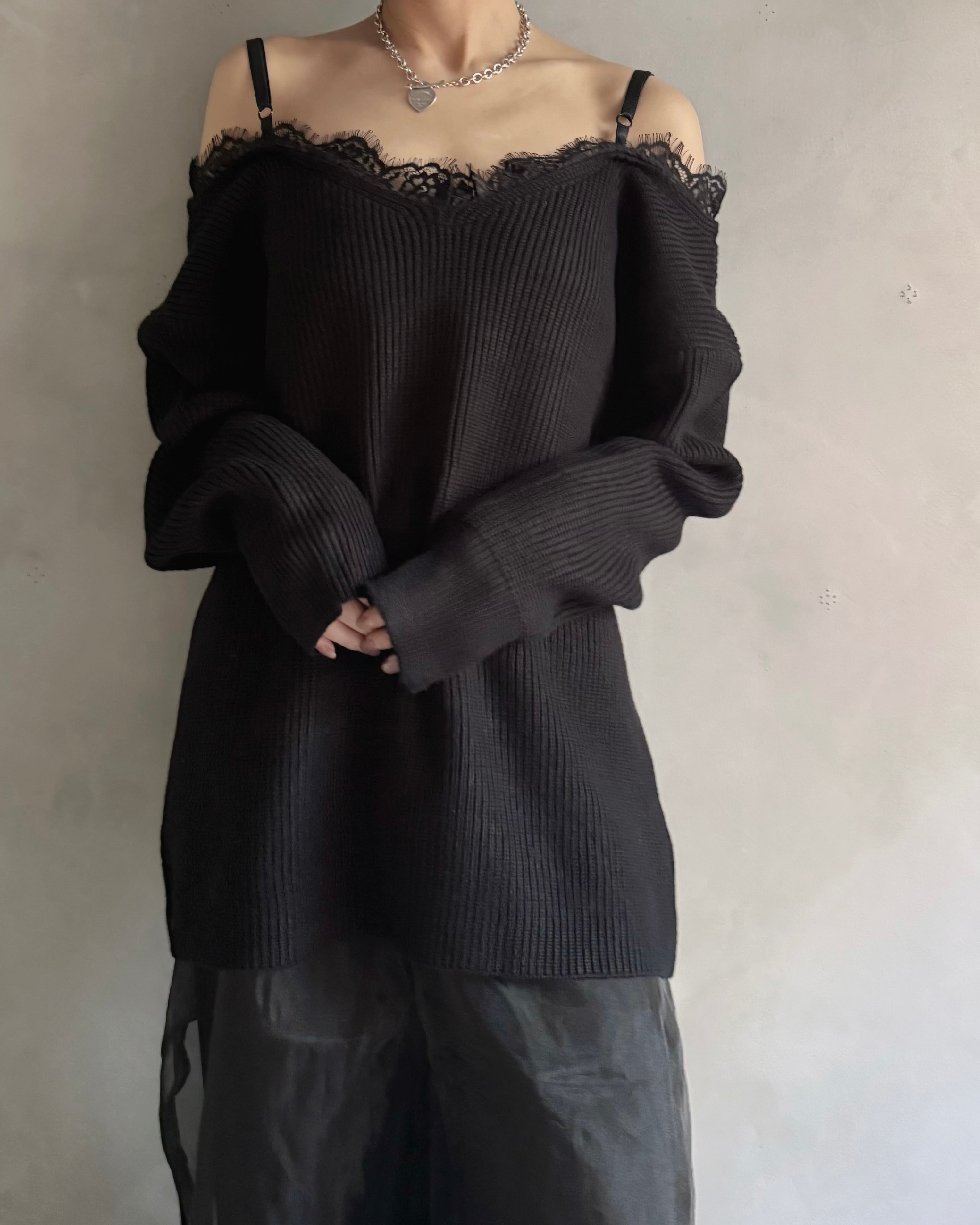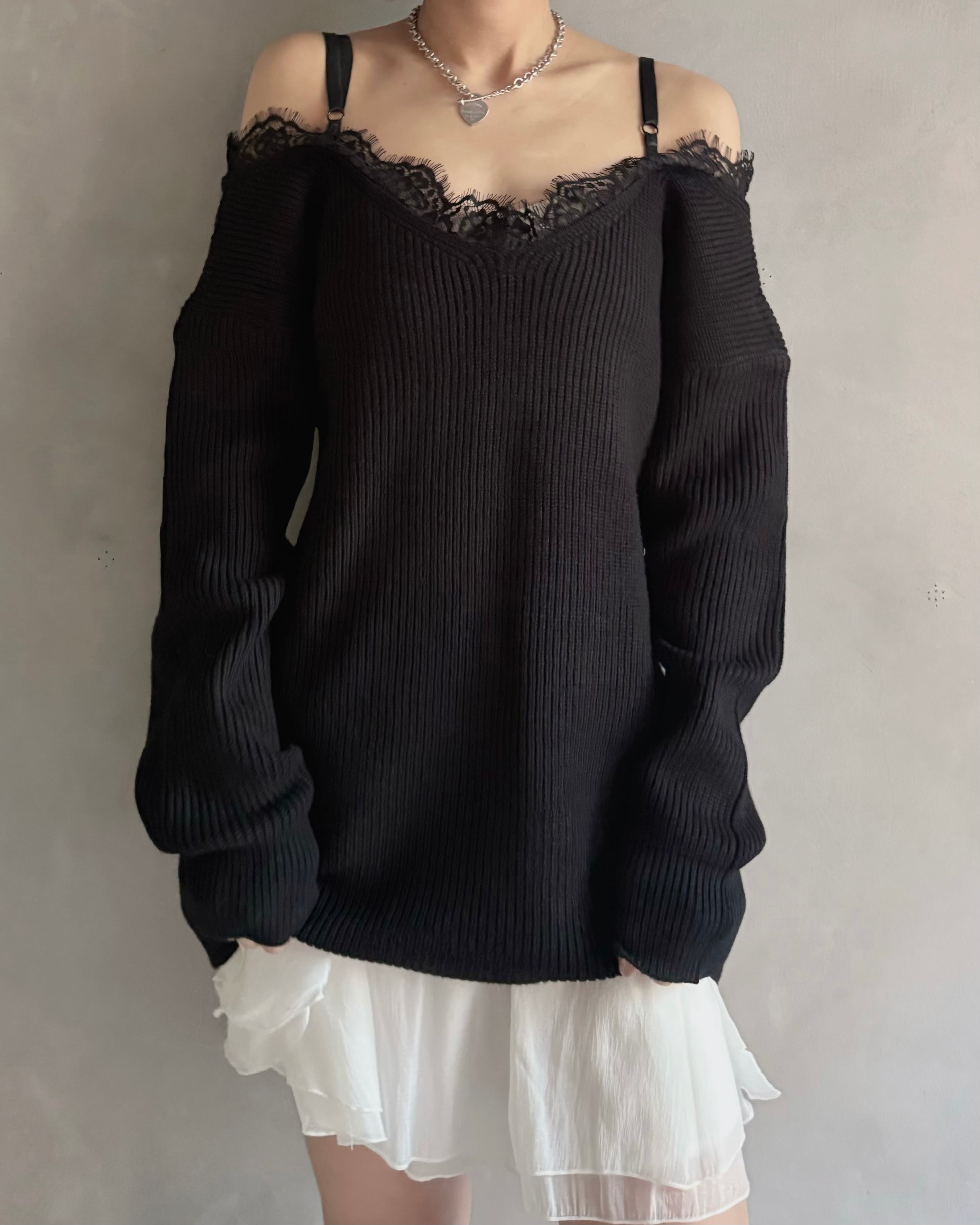 【Noir Lace Slip Knit】