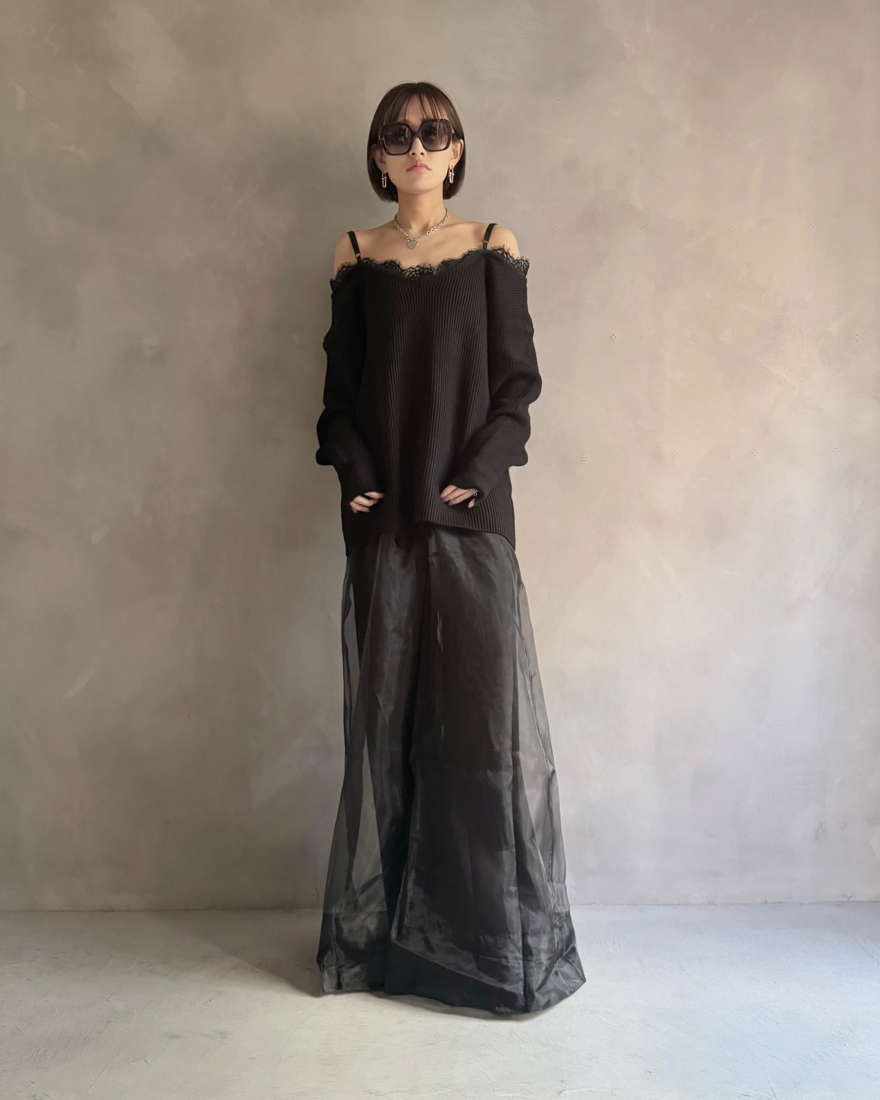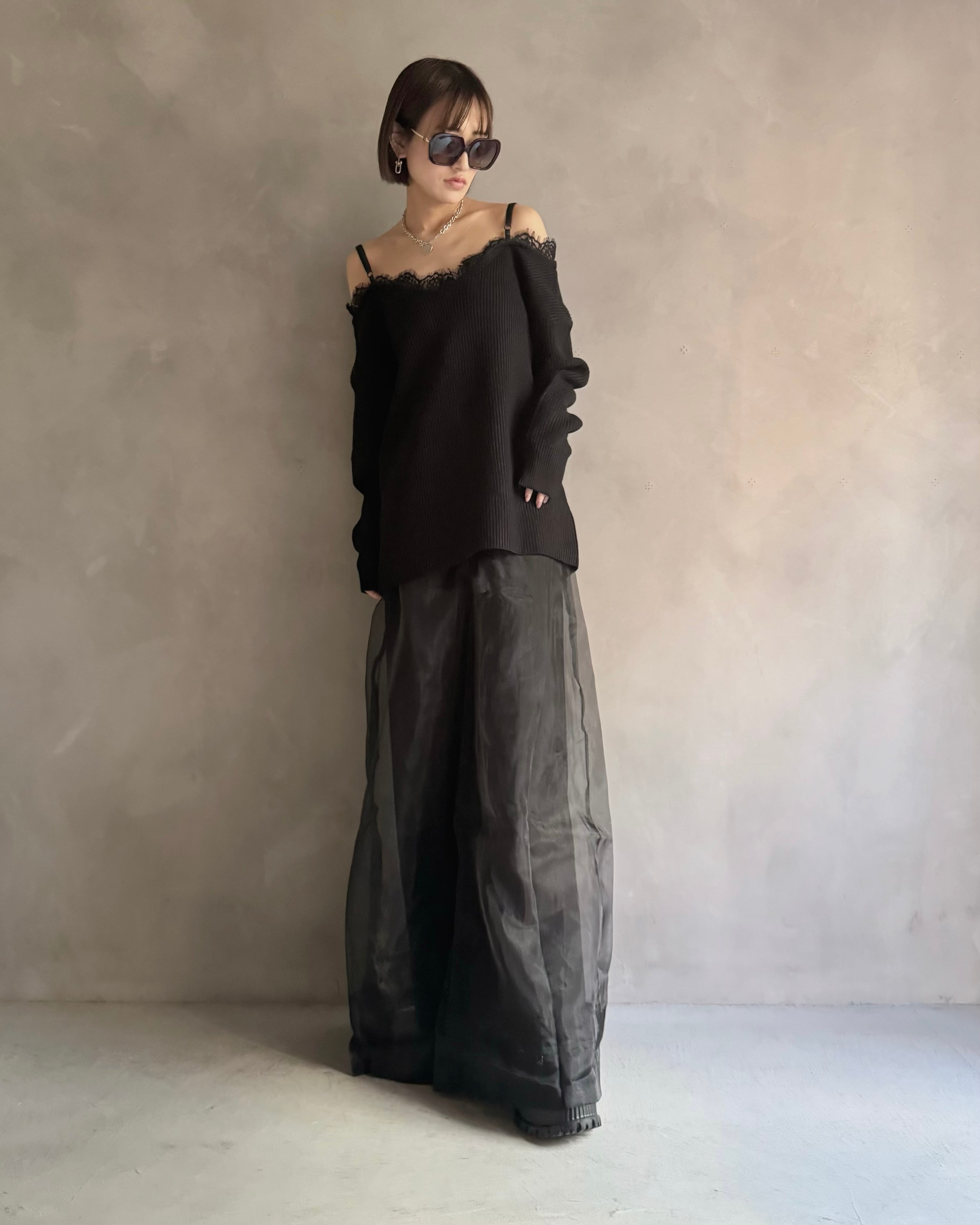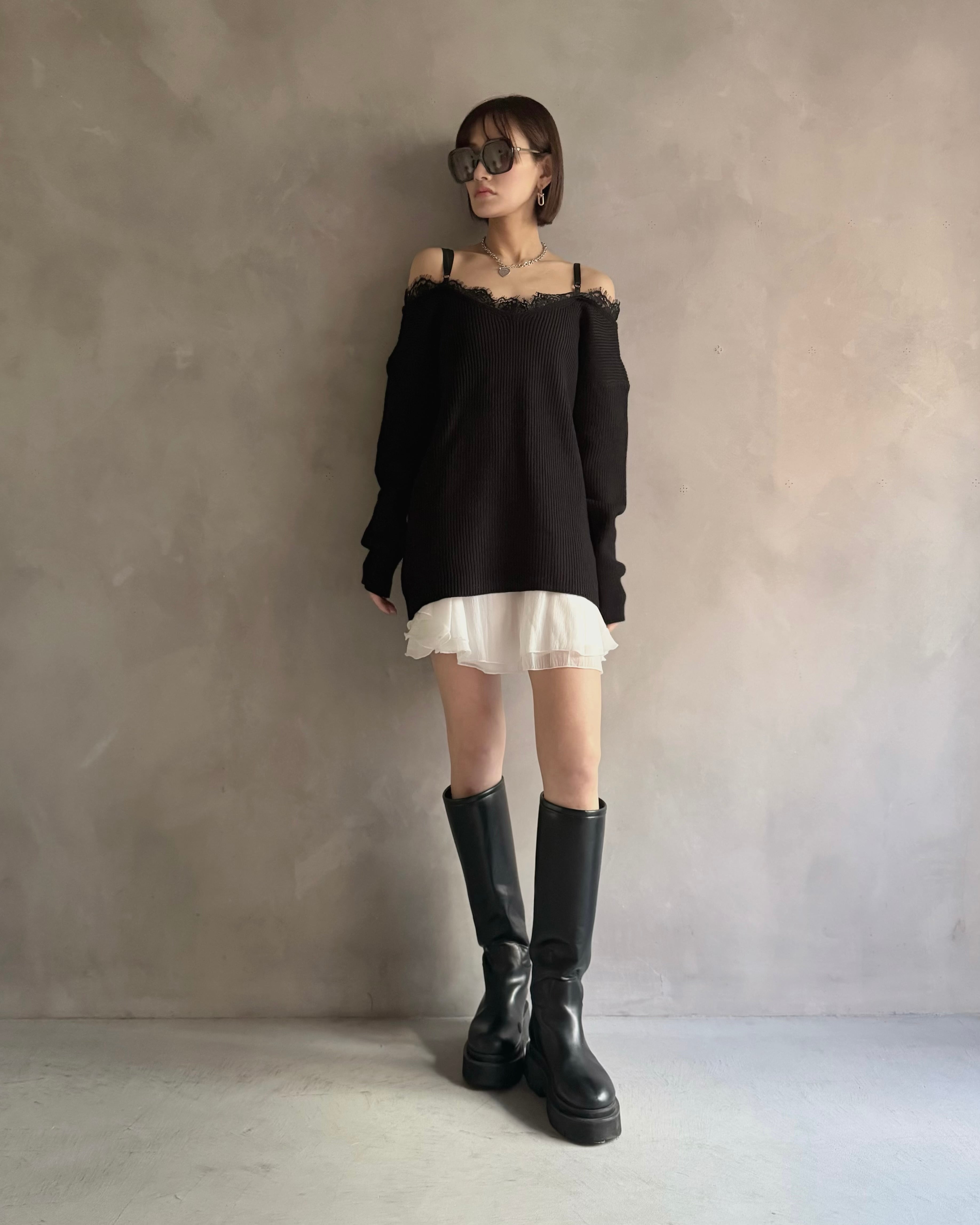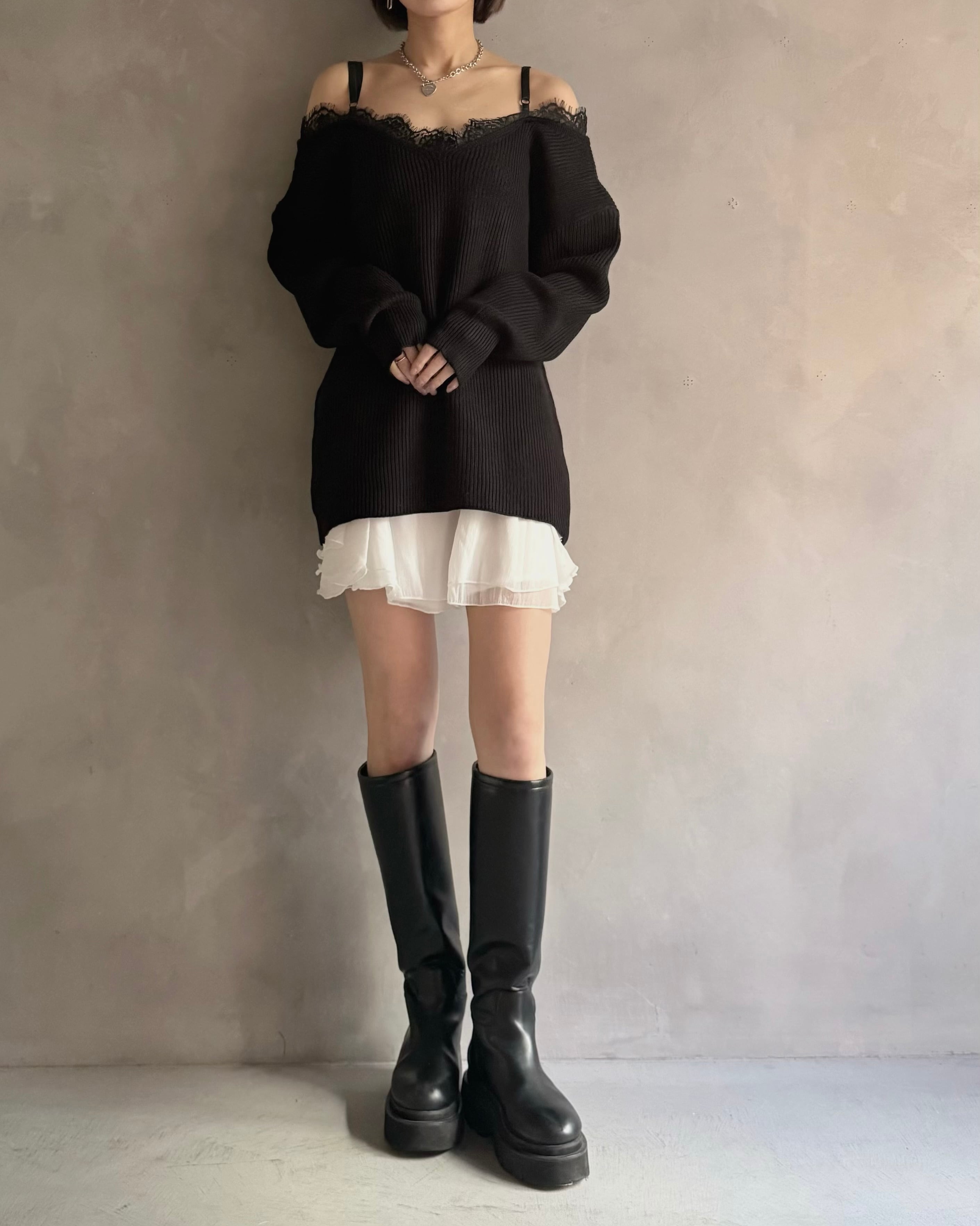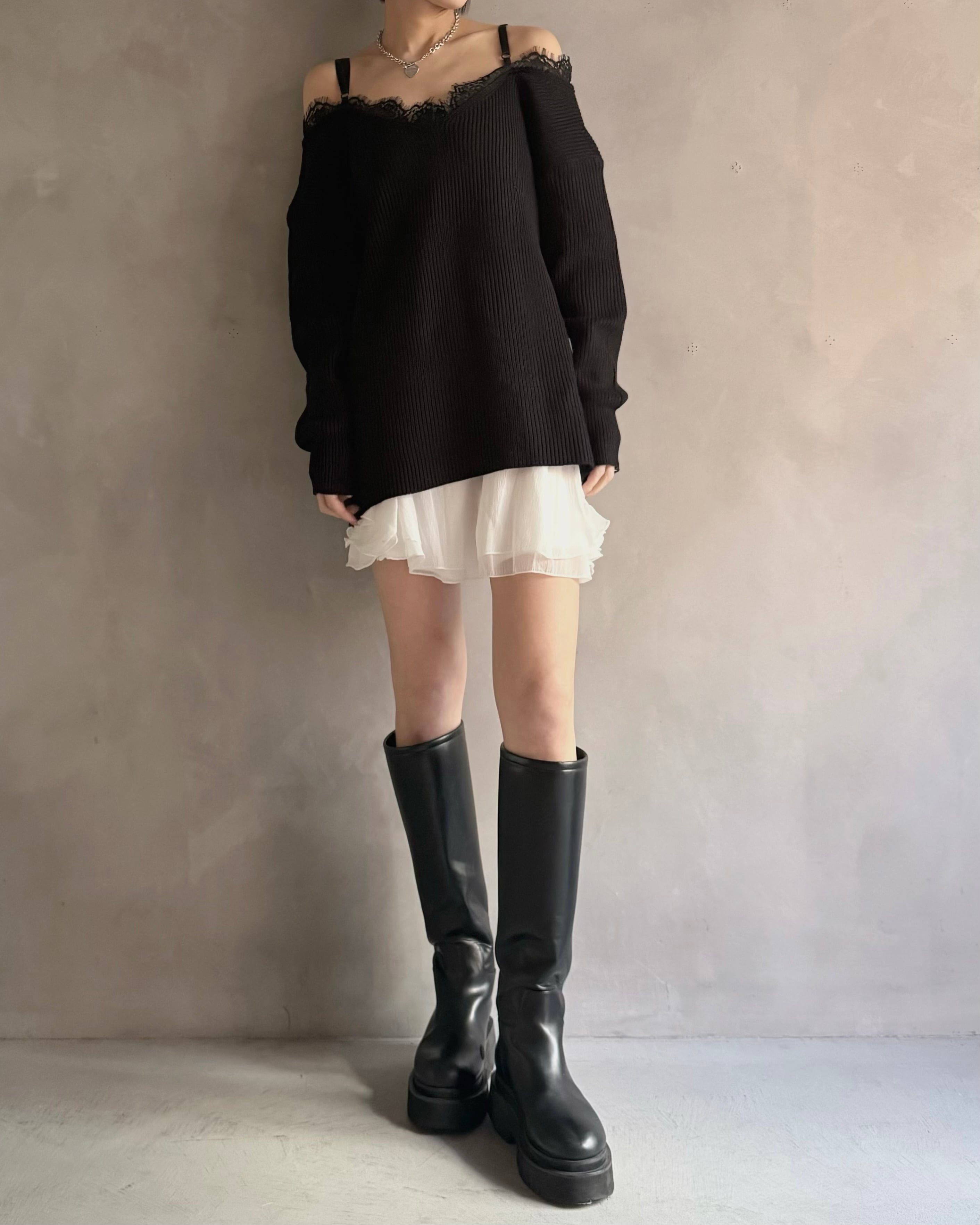 【Noir Lace Slip Knit】
