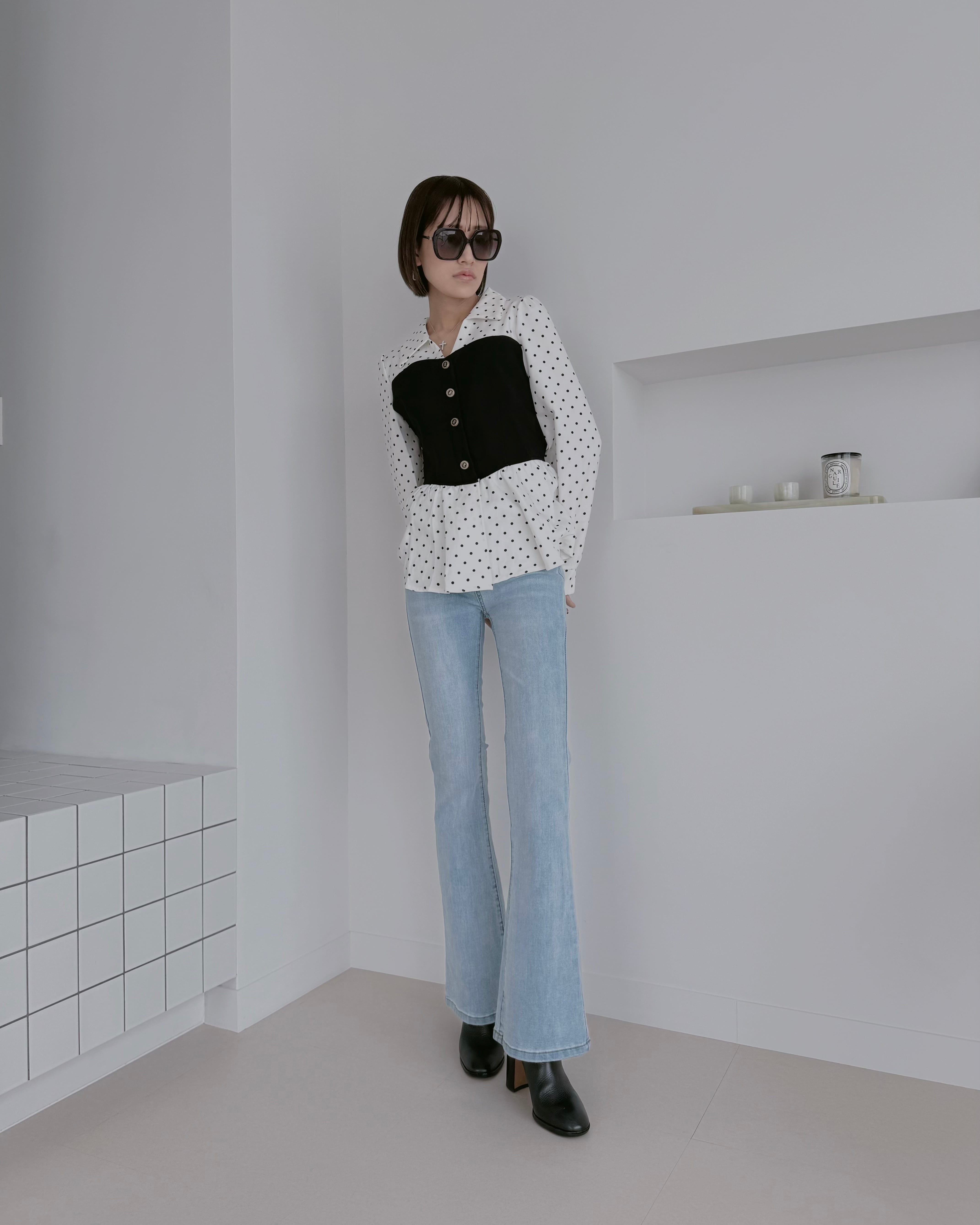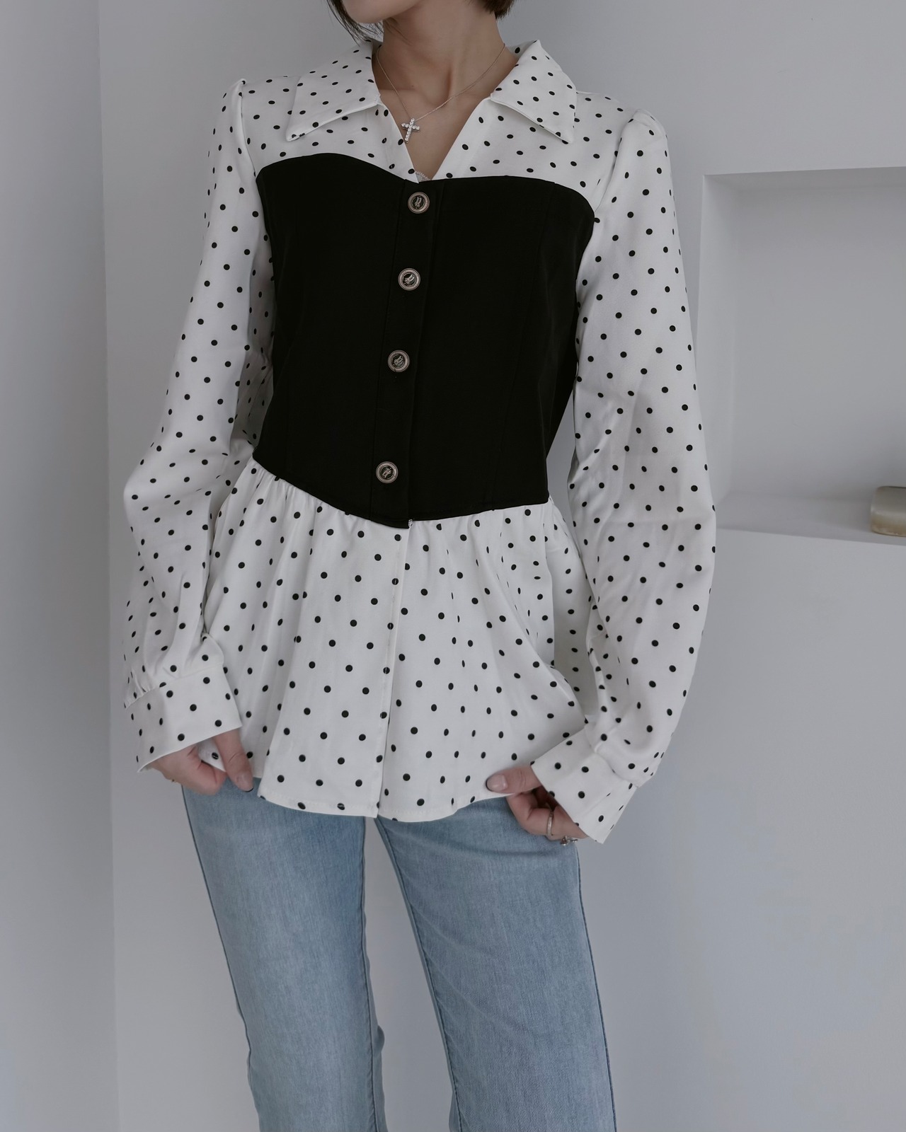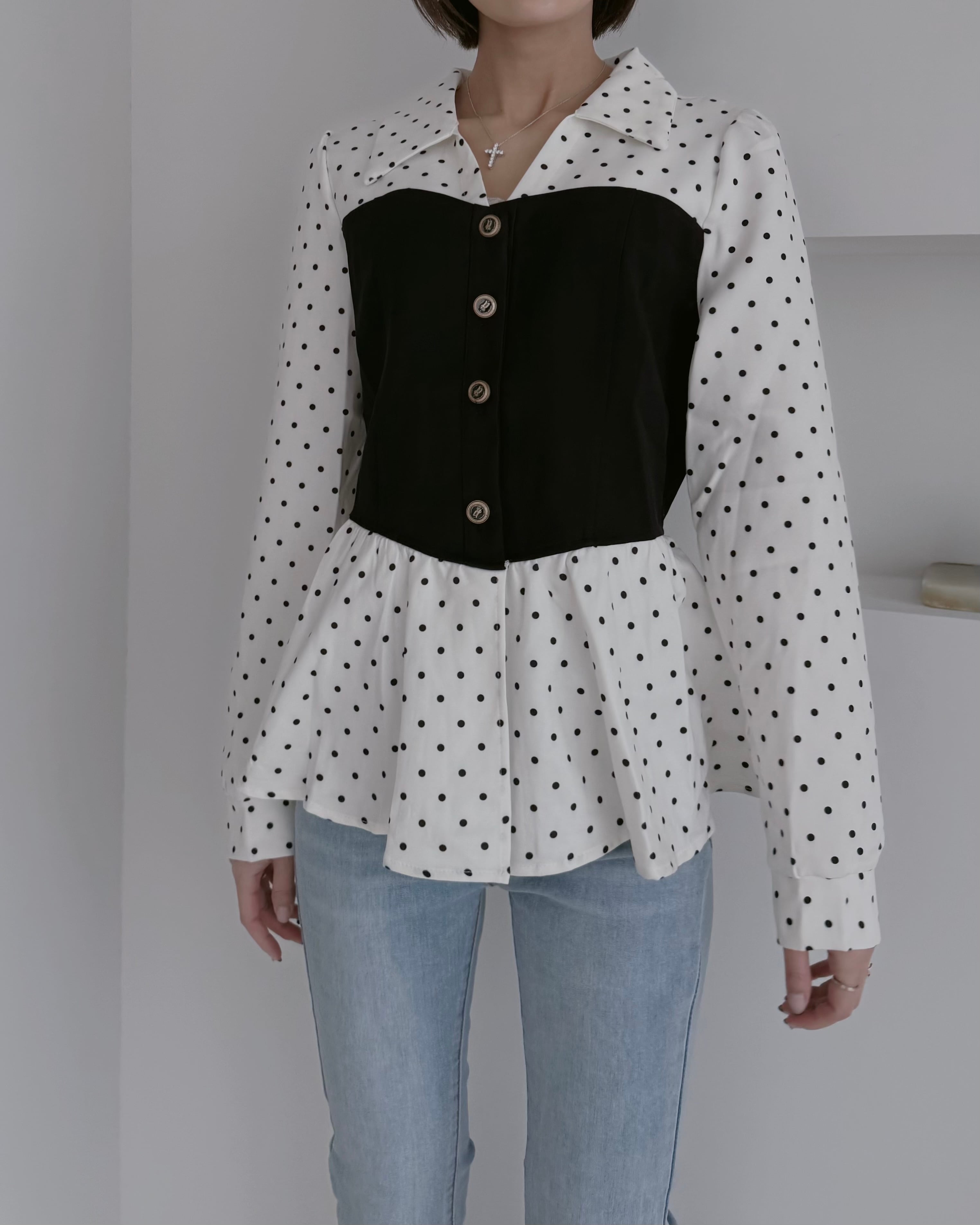 【Classy Dot Bustier Blouse】