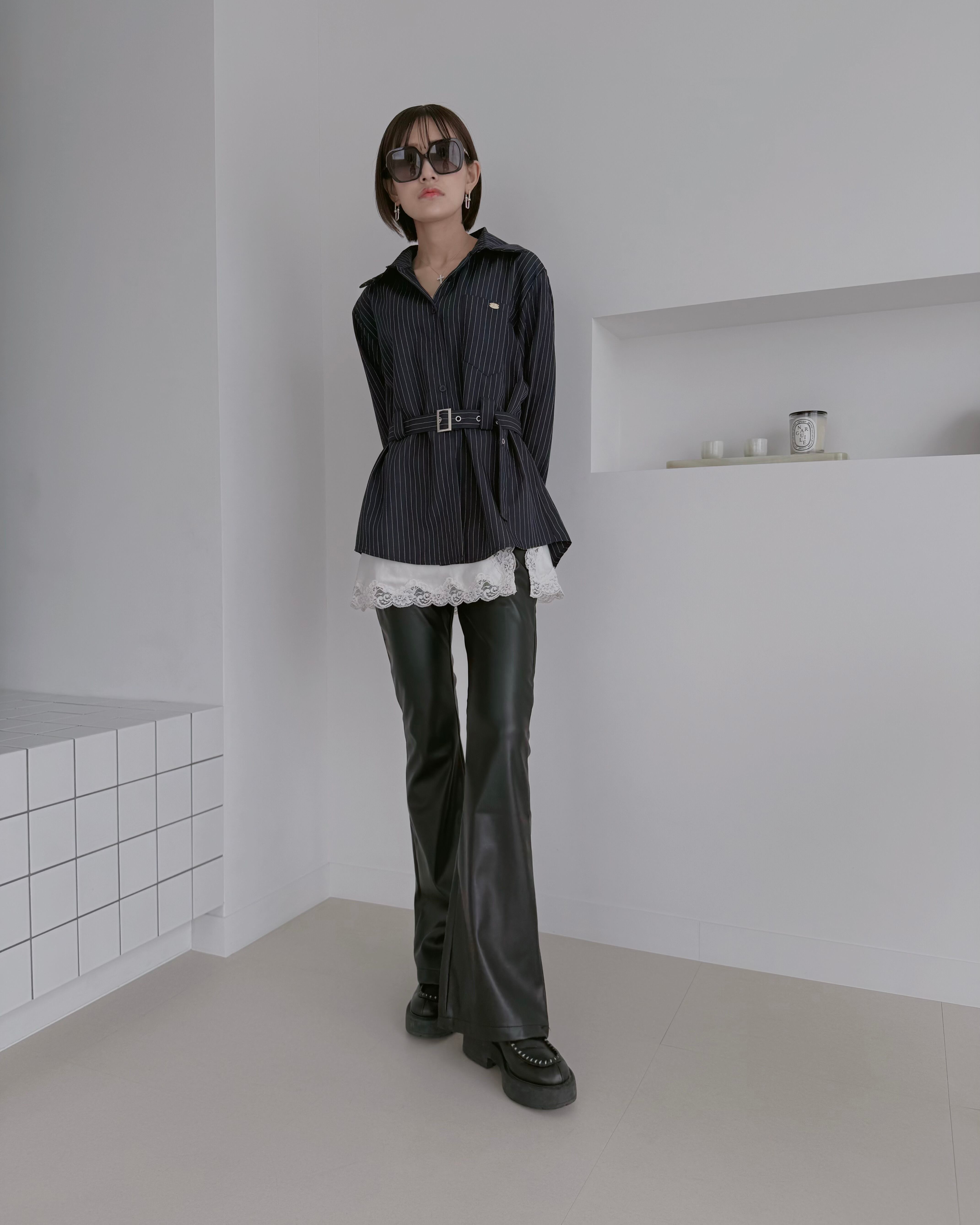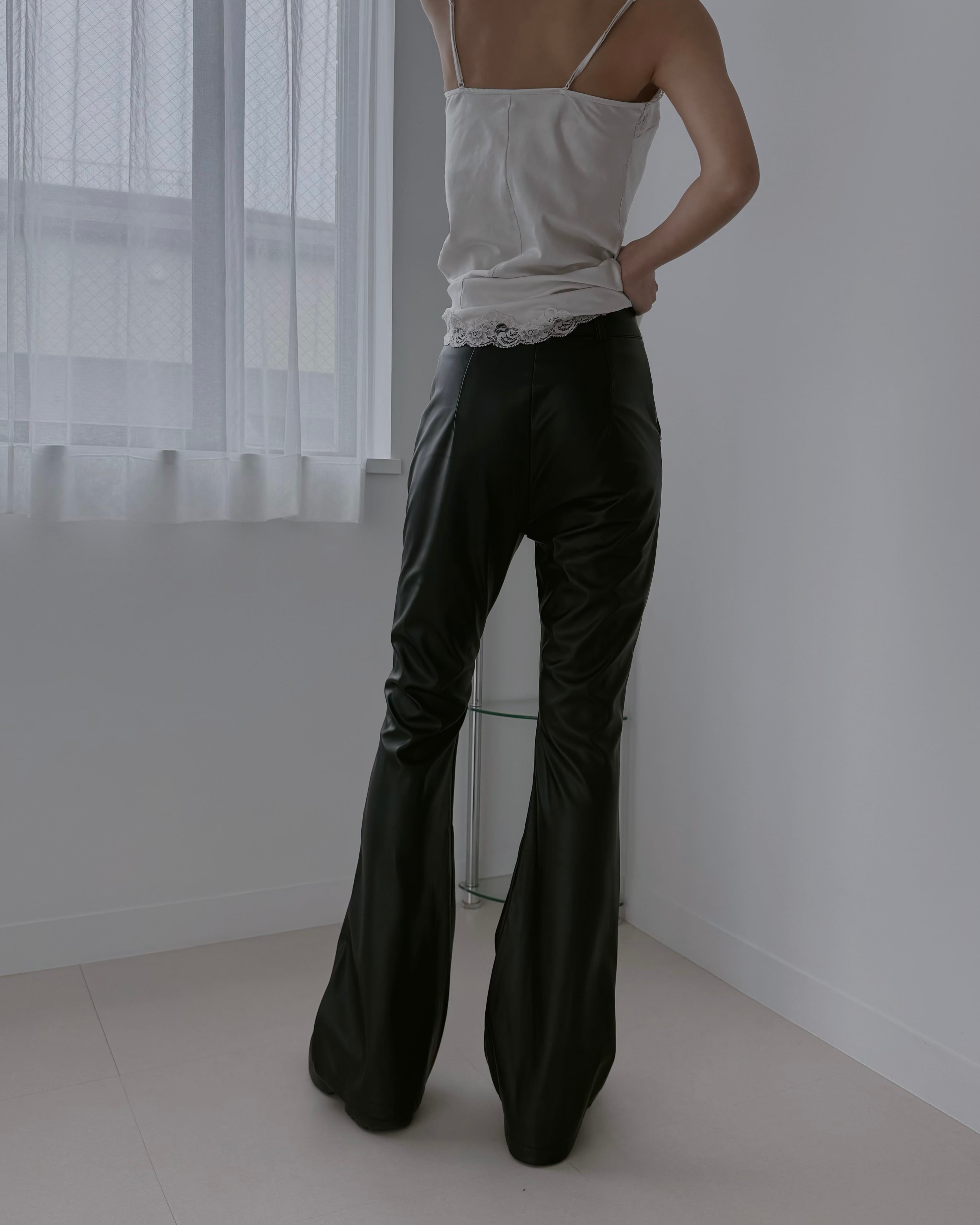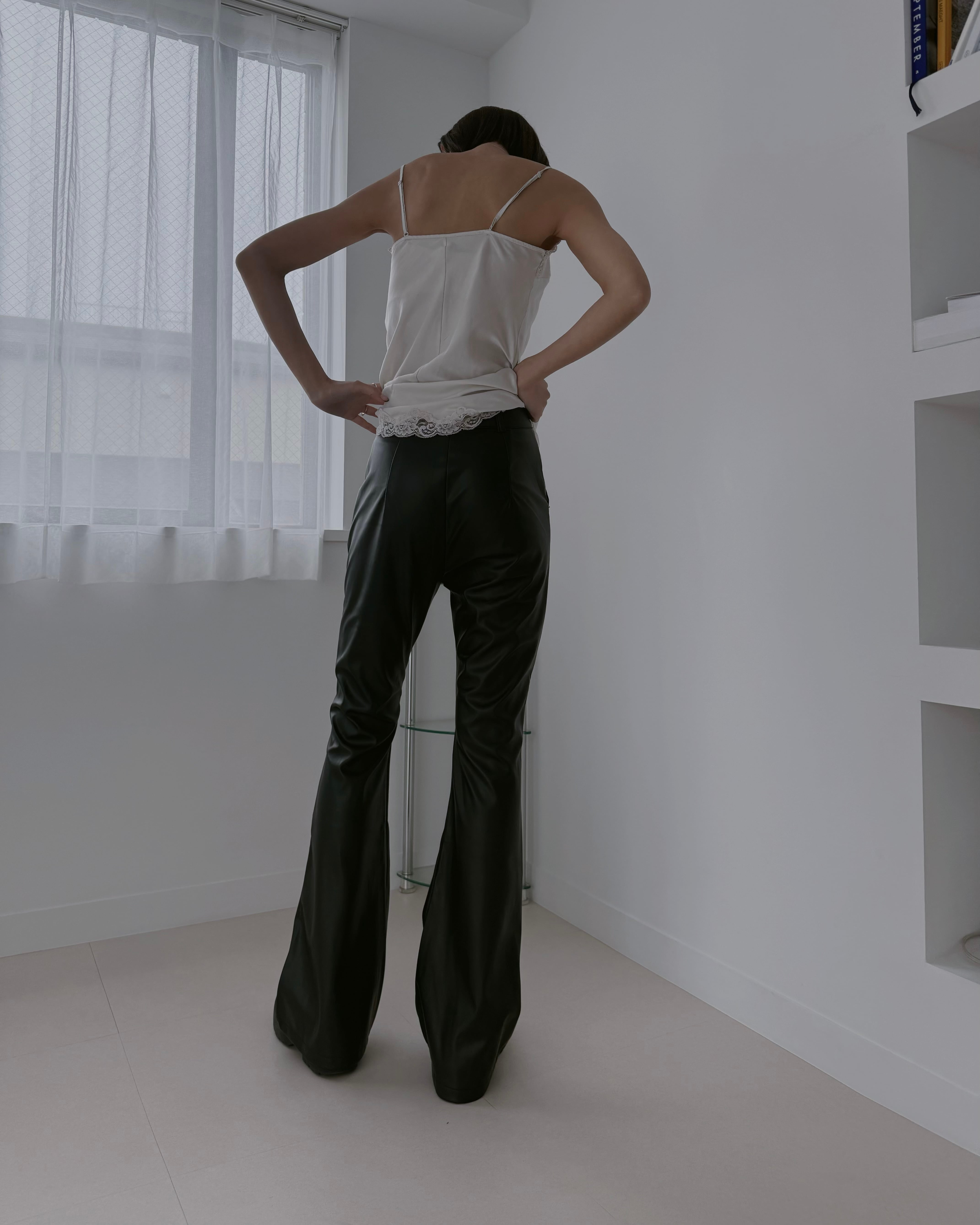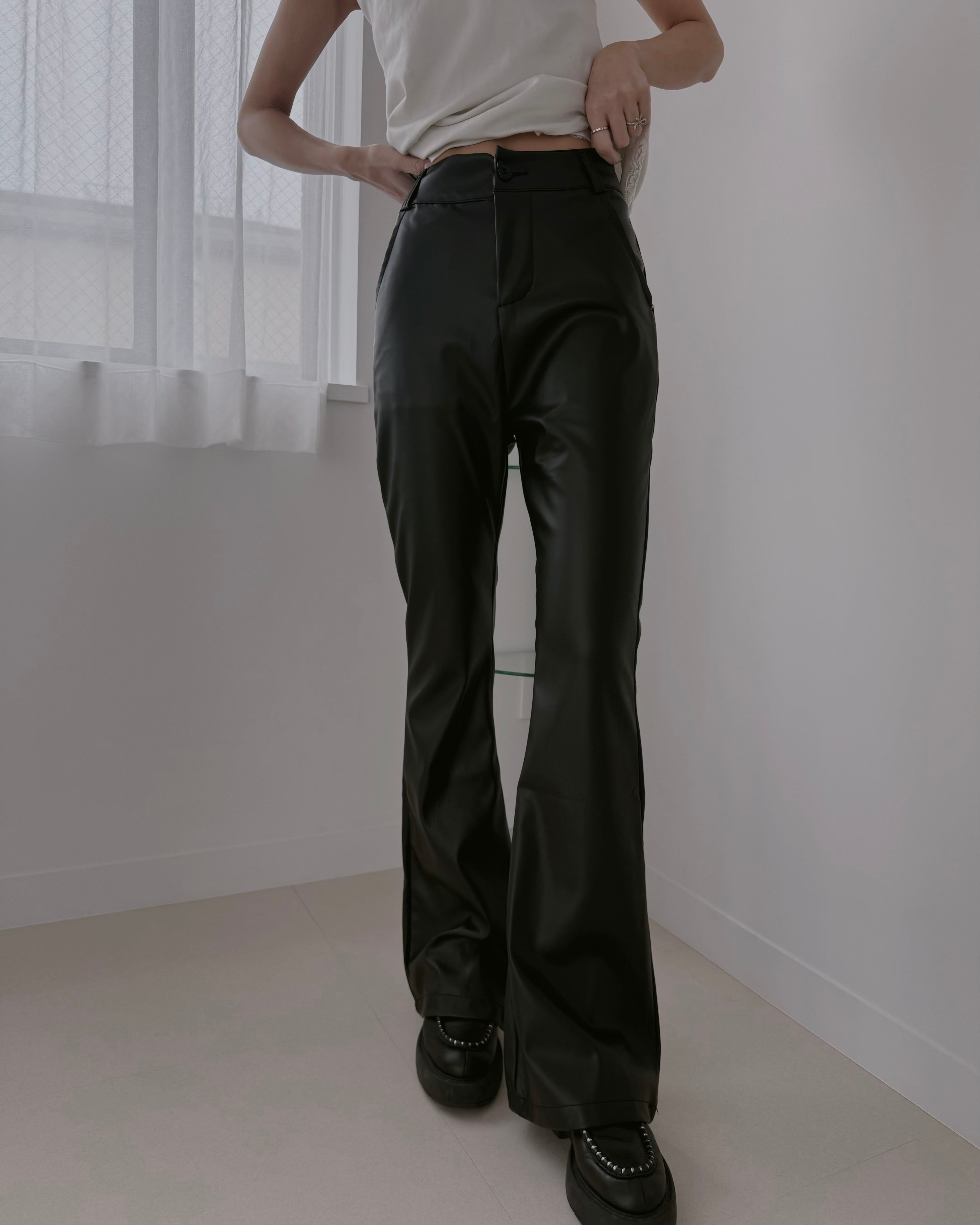 【Sleek Leather Flare Pants】
