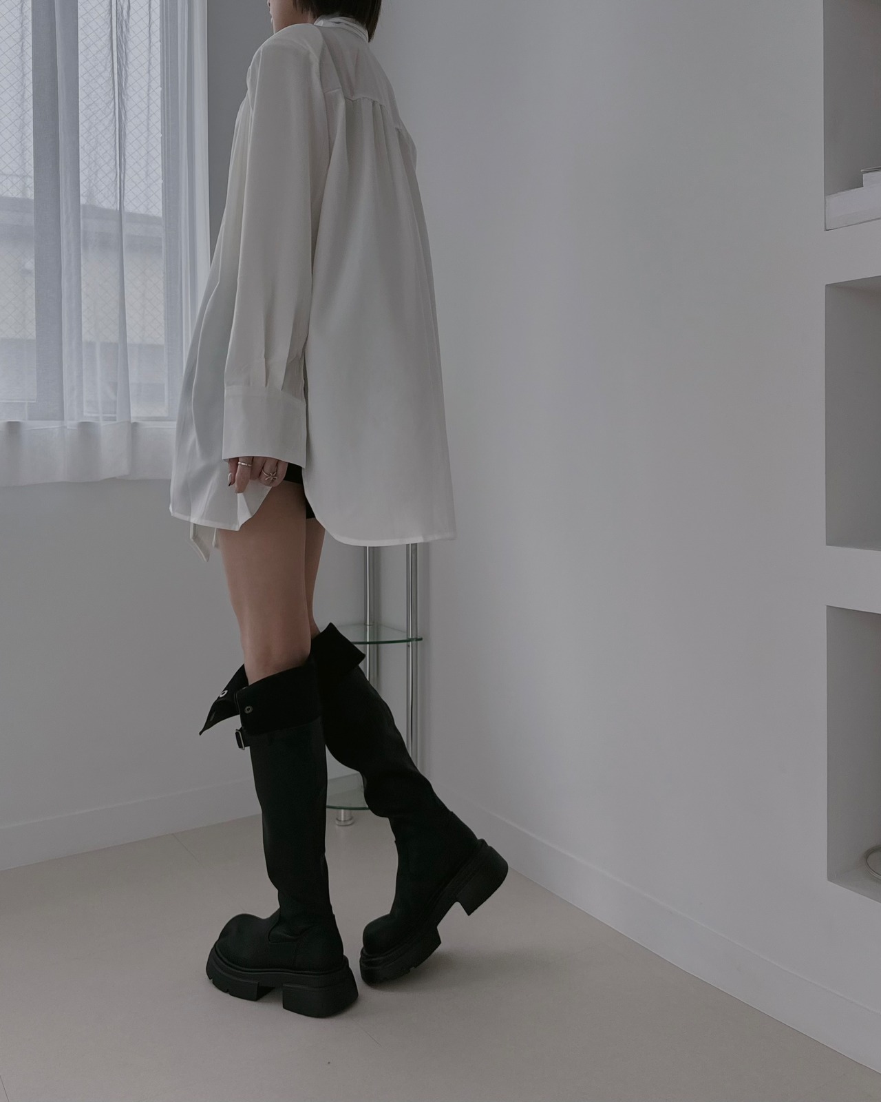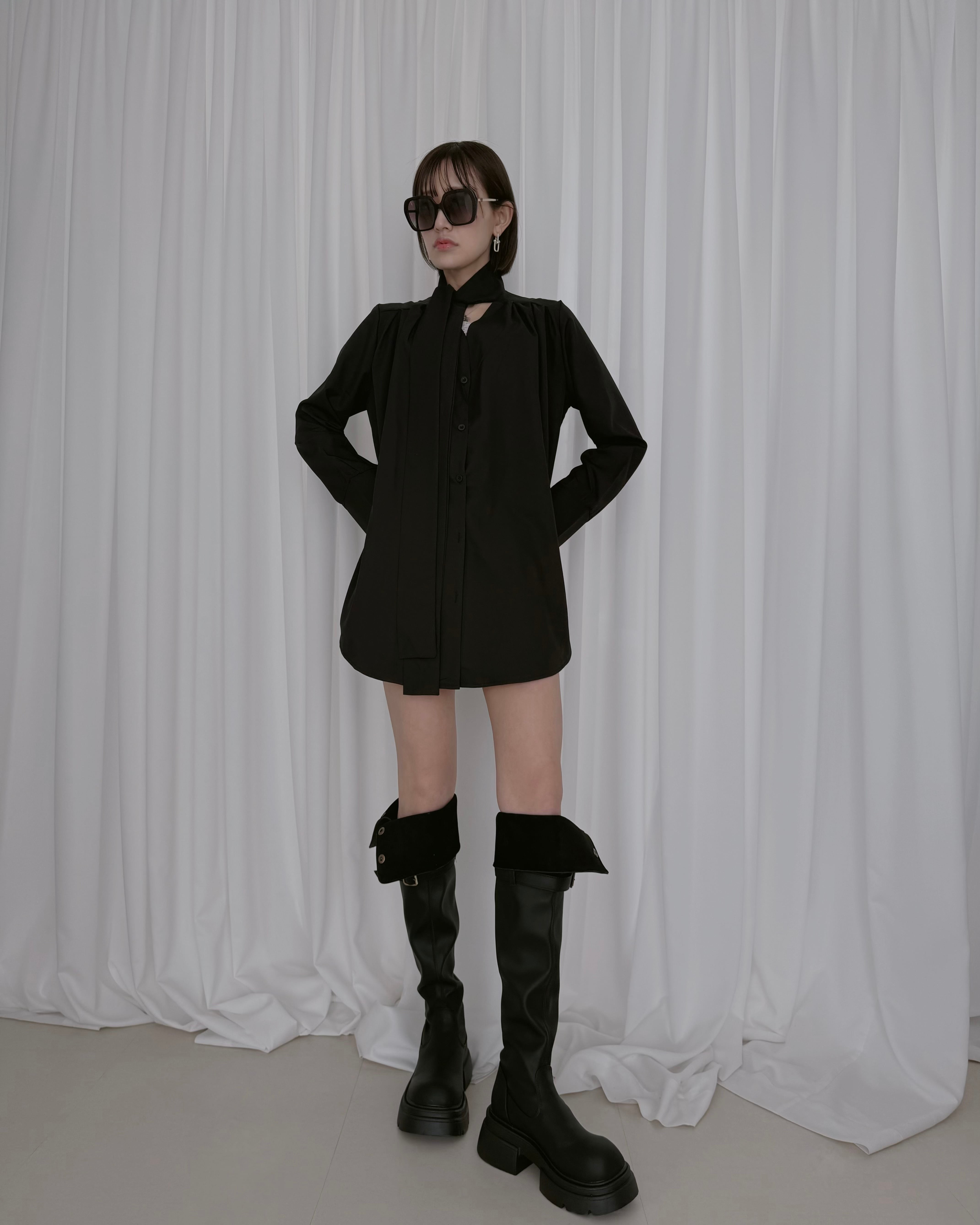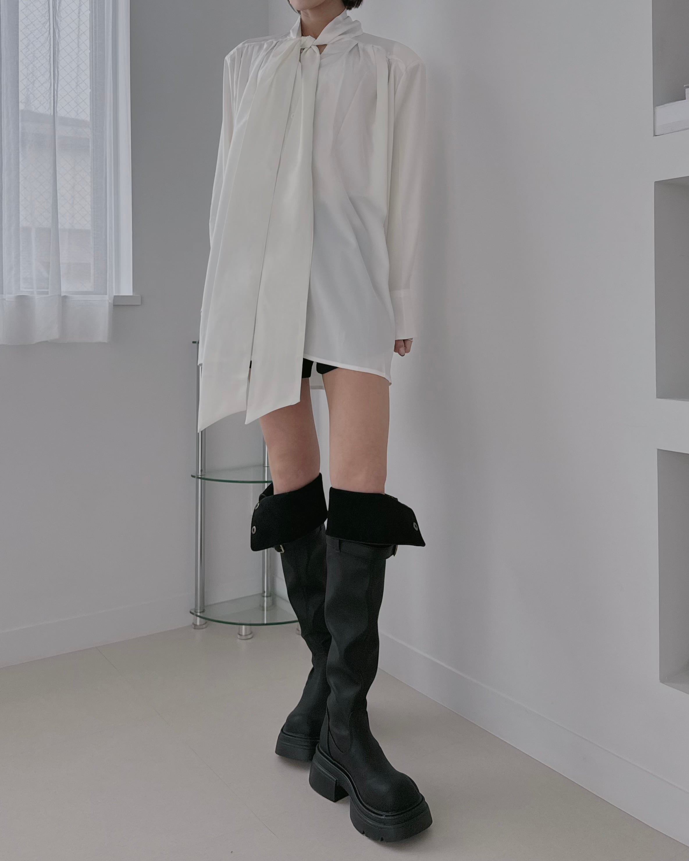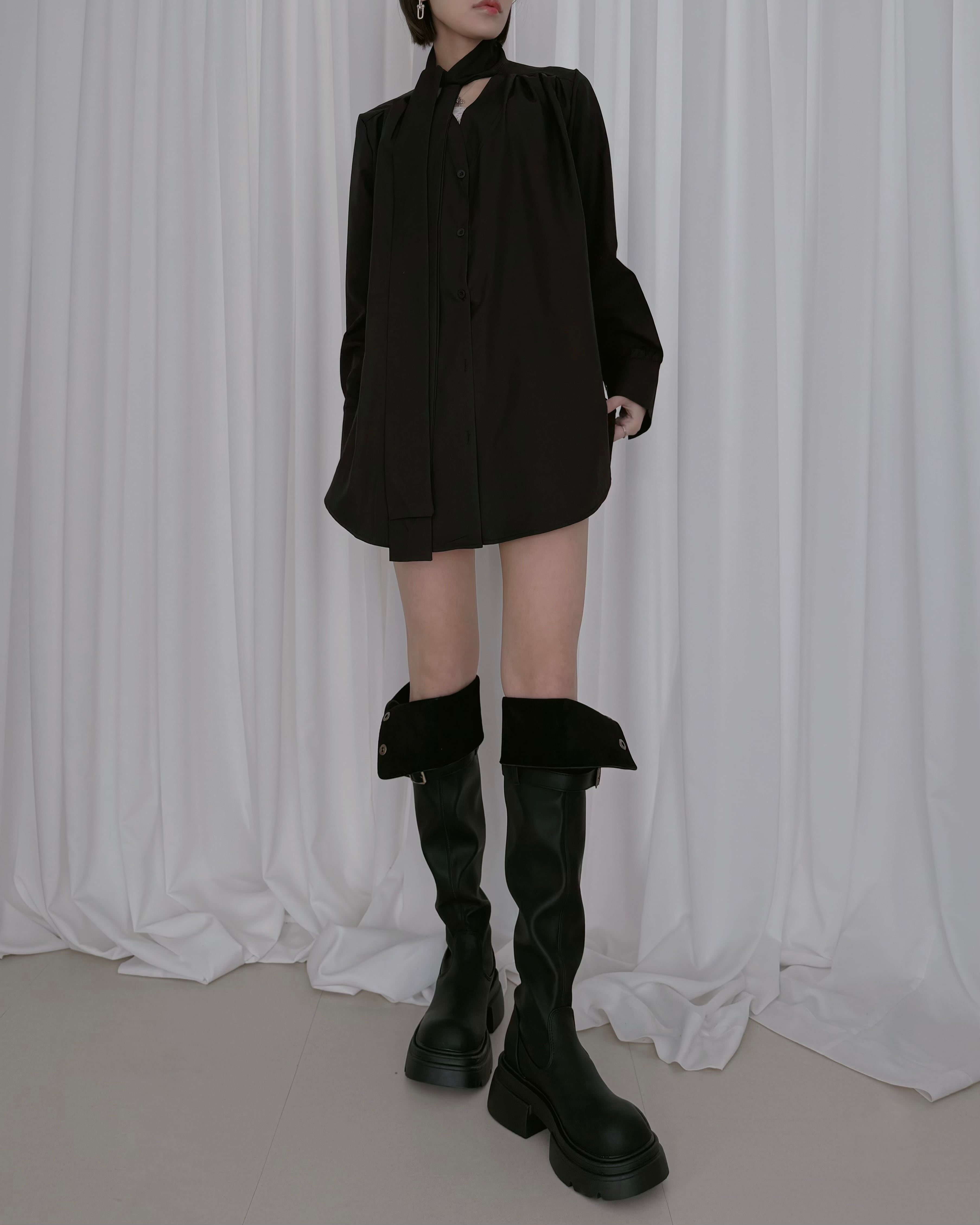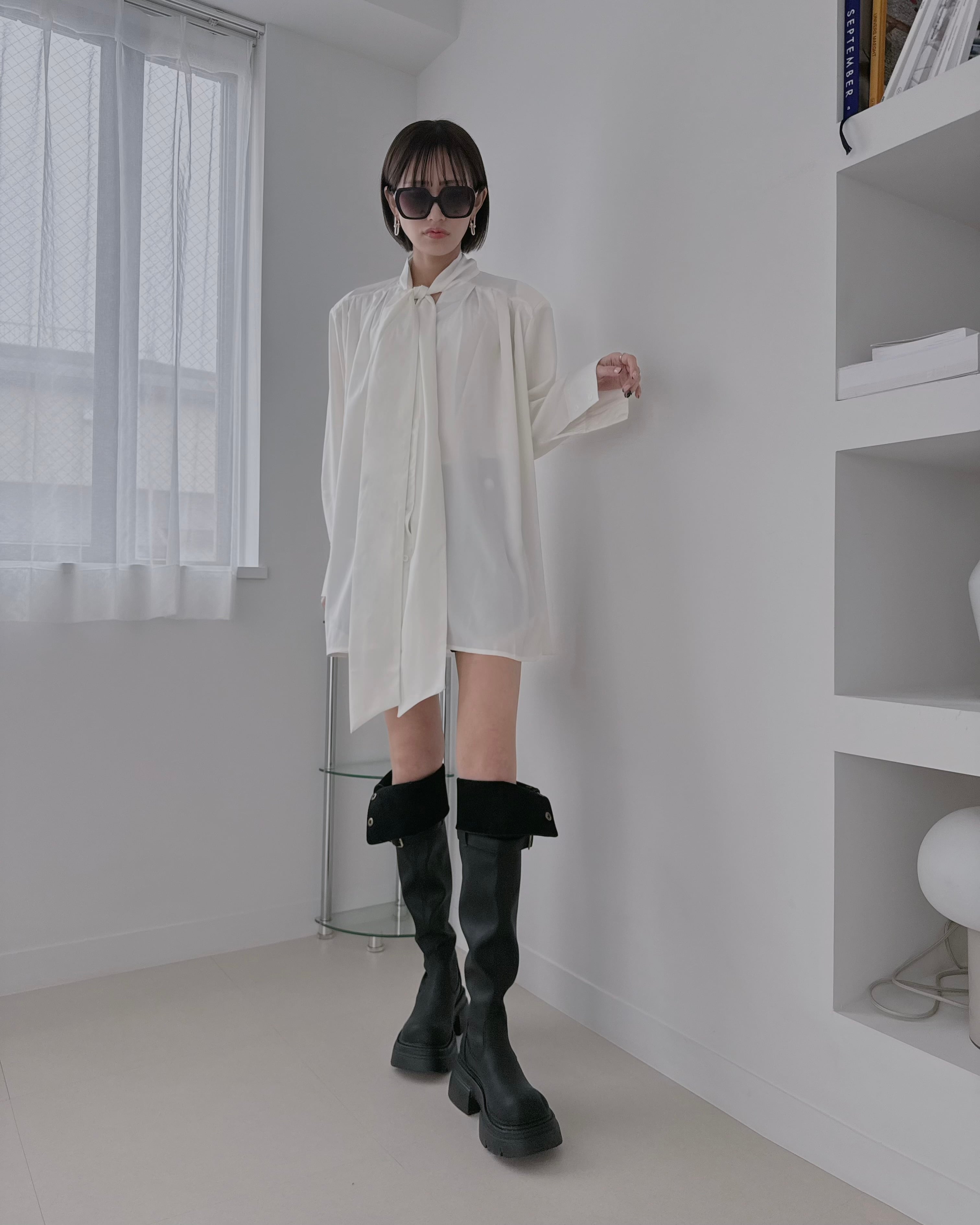 ロングブーツを合わせてミニワンピ風に。