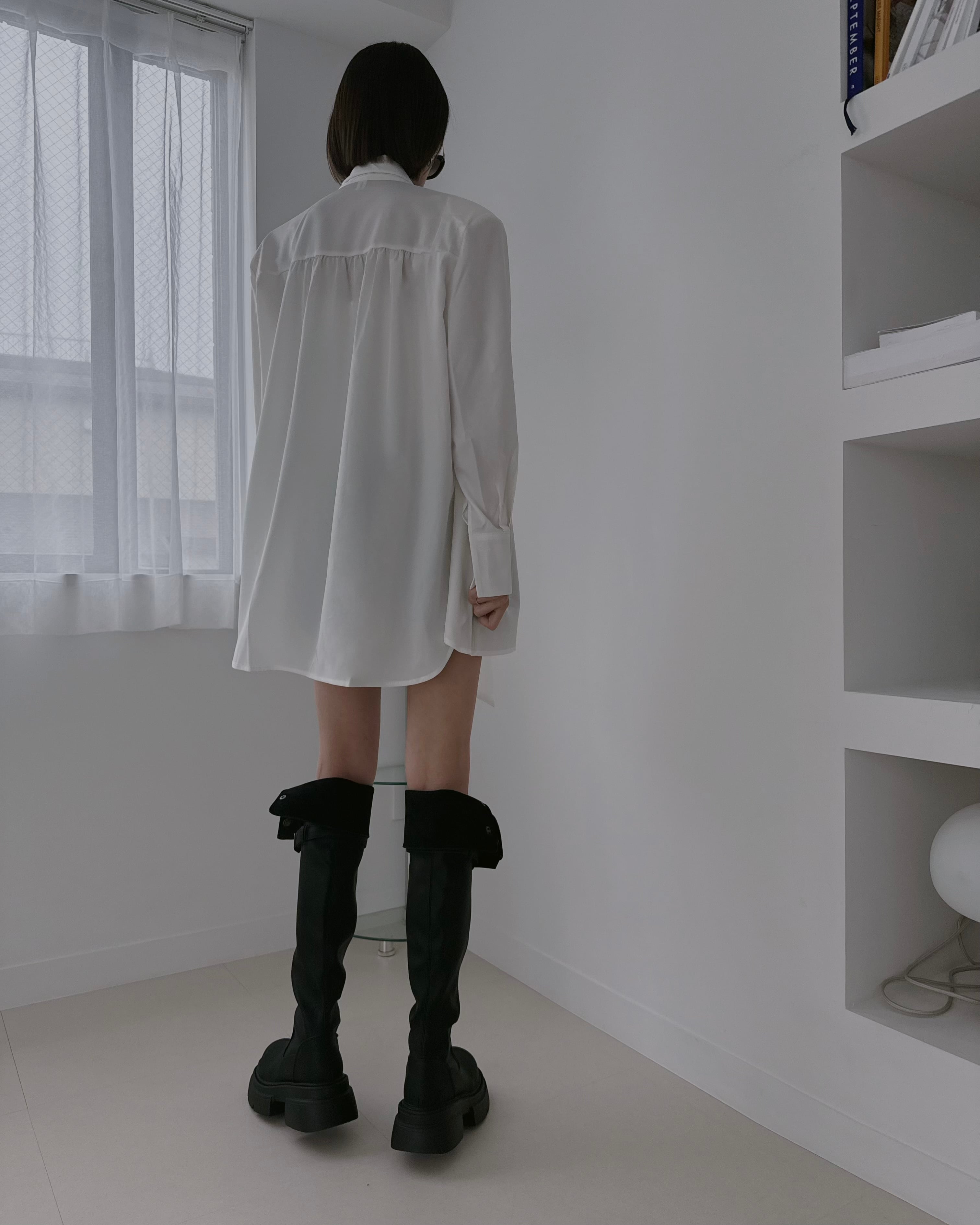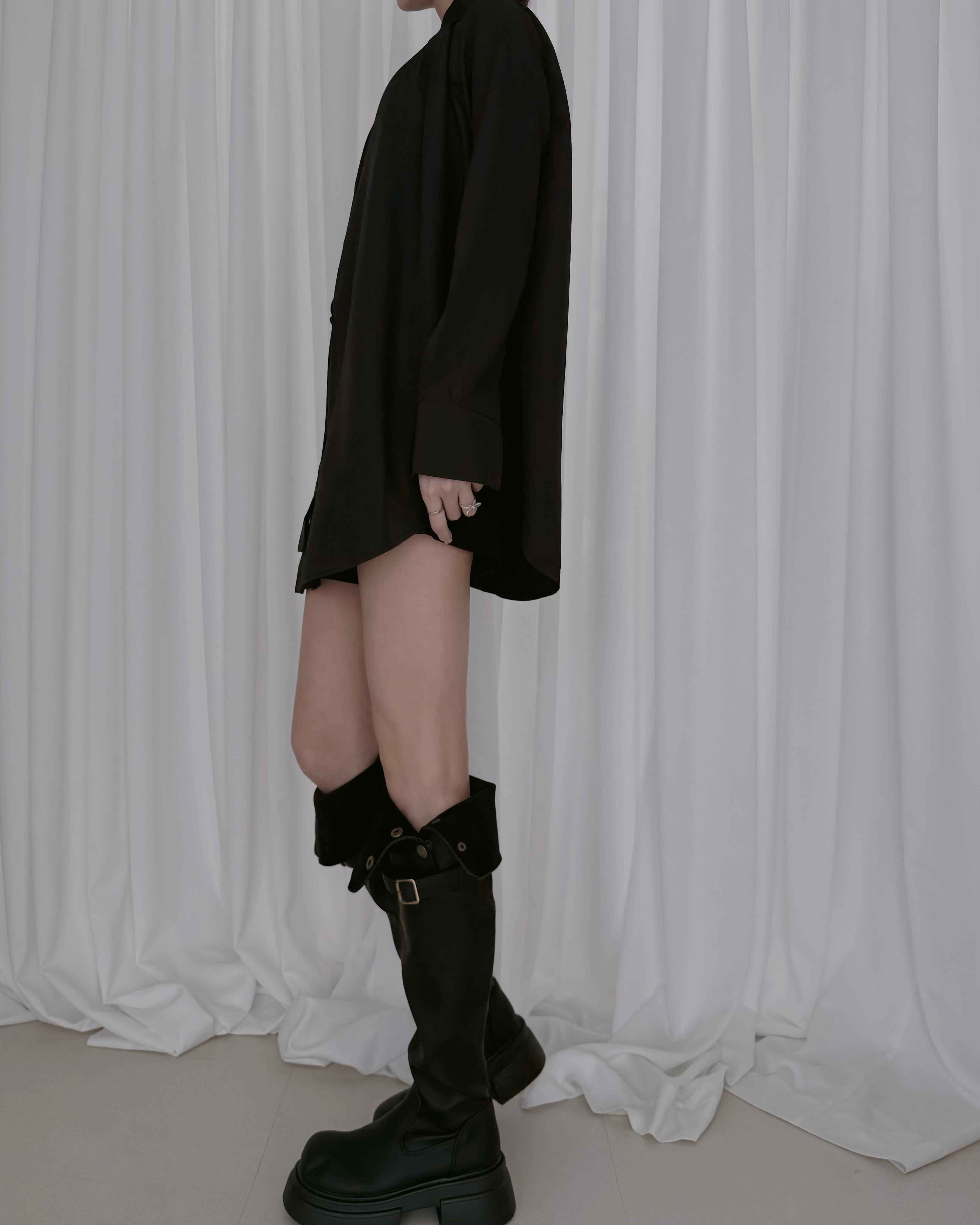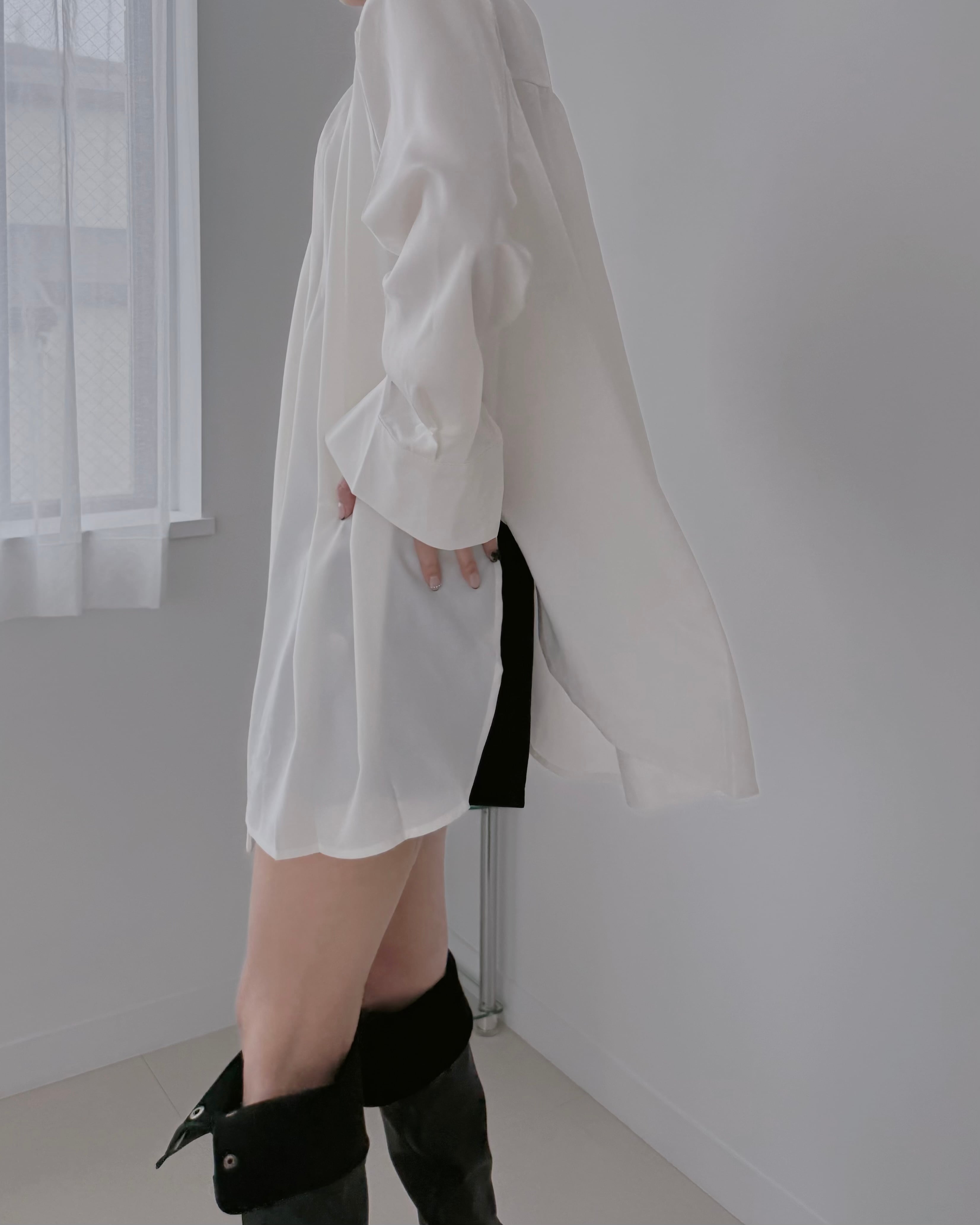 印象的なロングシャツ。