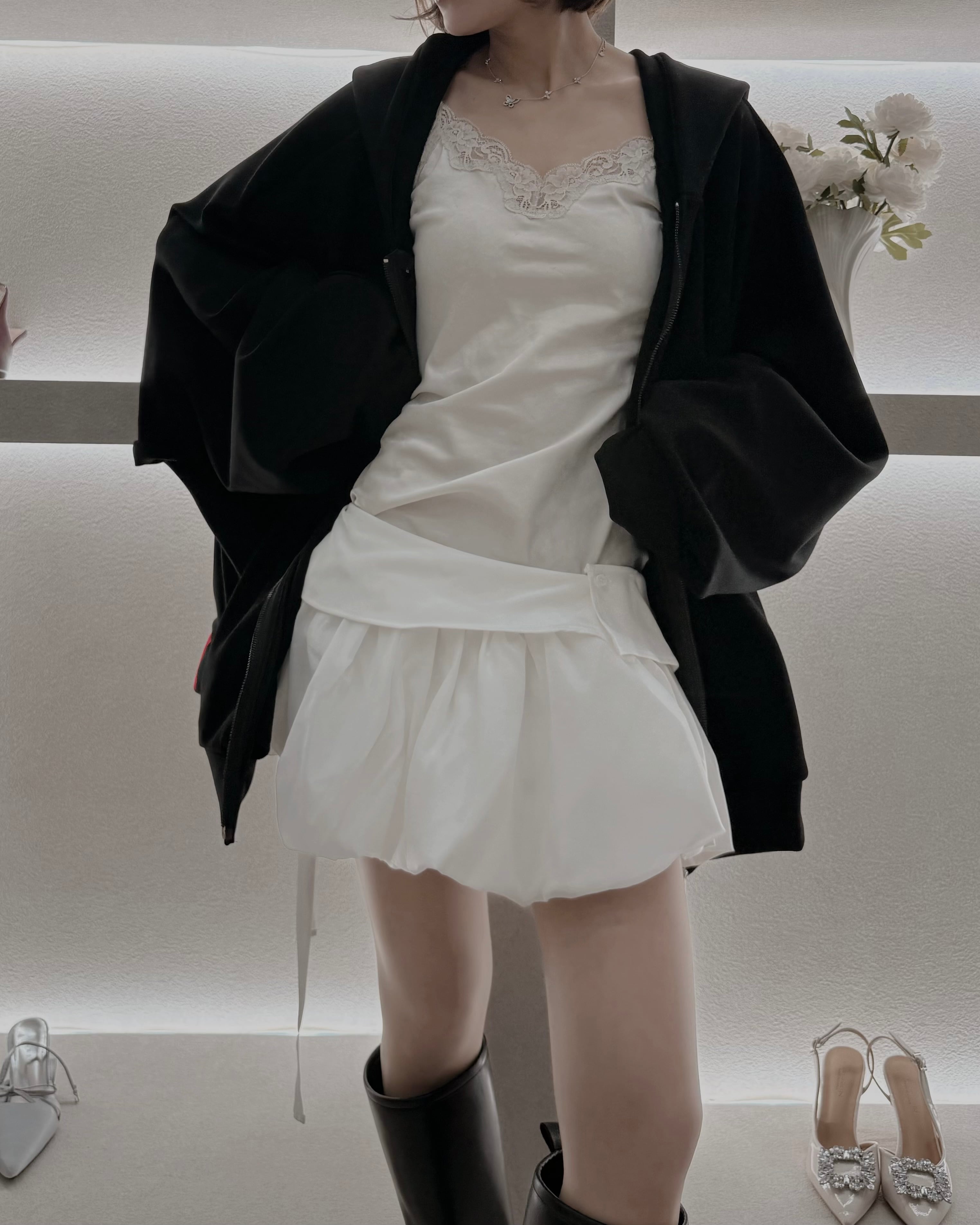 体のラインを拾わず、抜け感のあるスタイリングに。