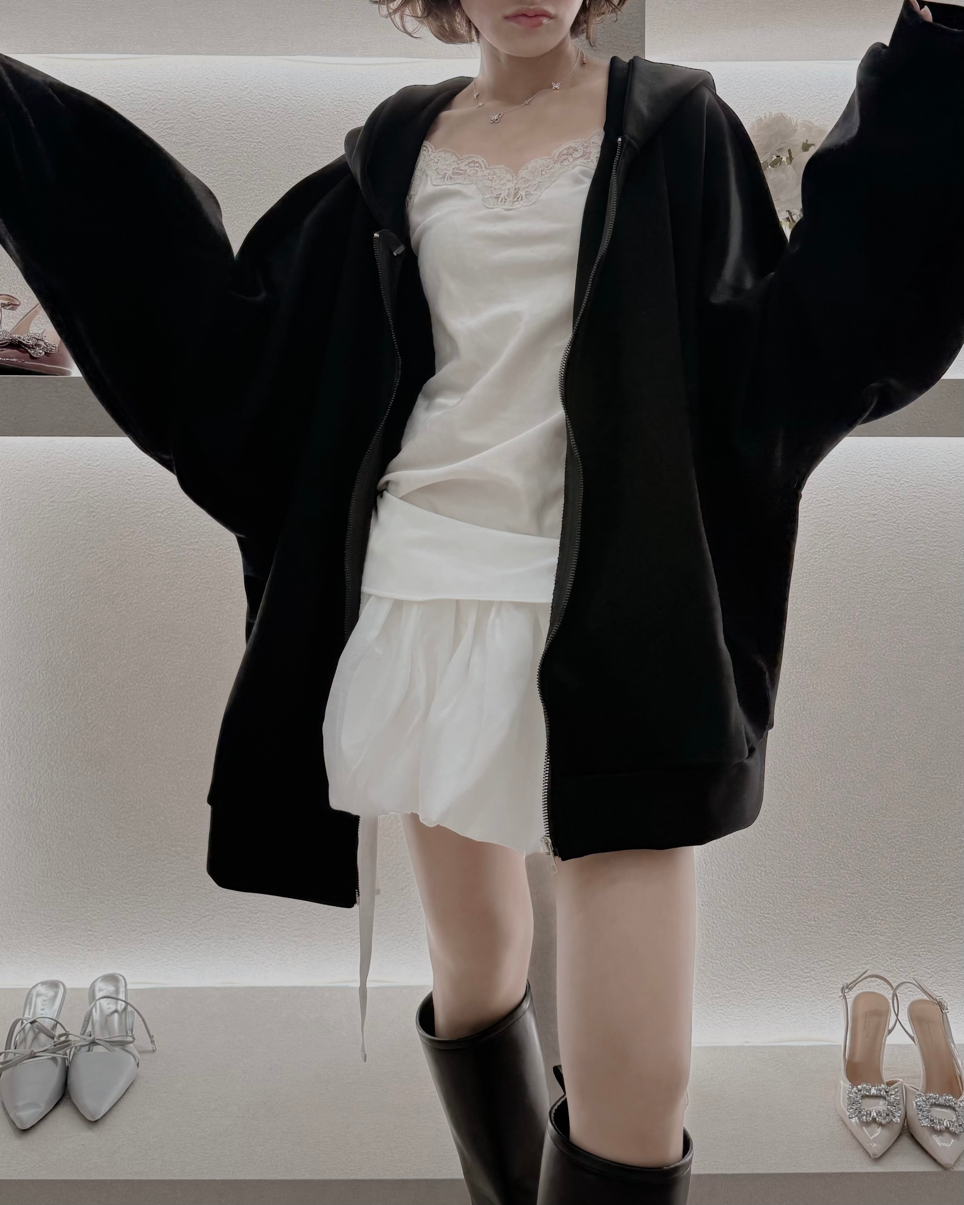 絶妙なバランスで仕上げたオーバーサイズフーディー。