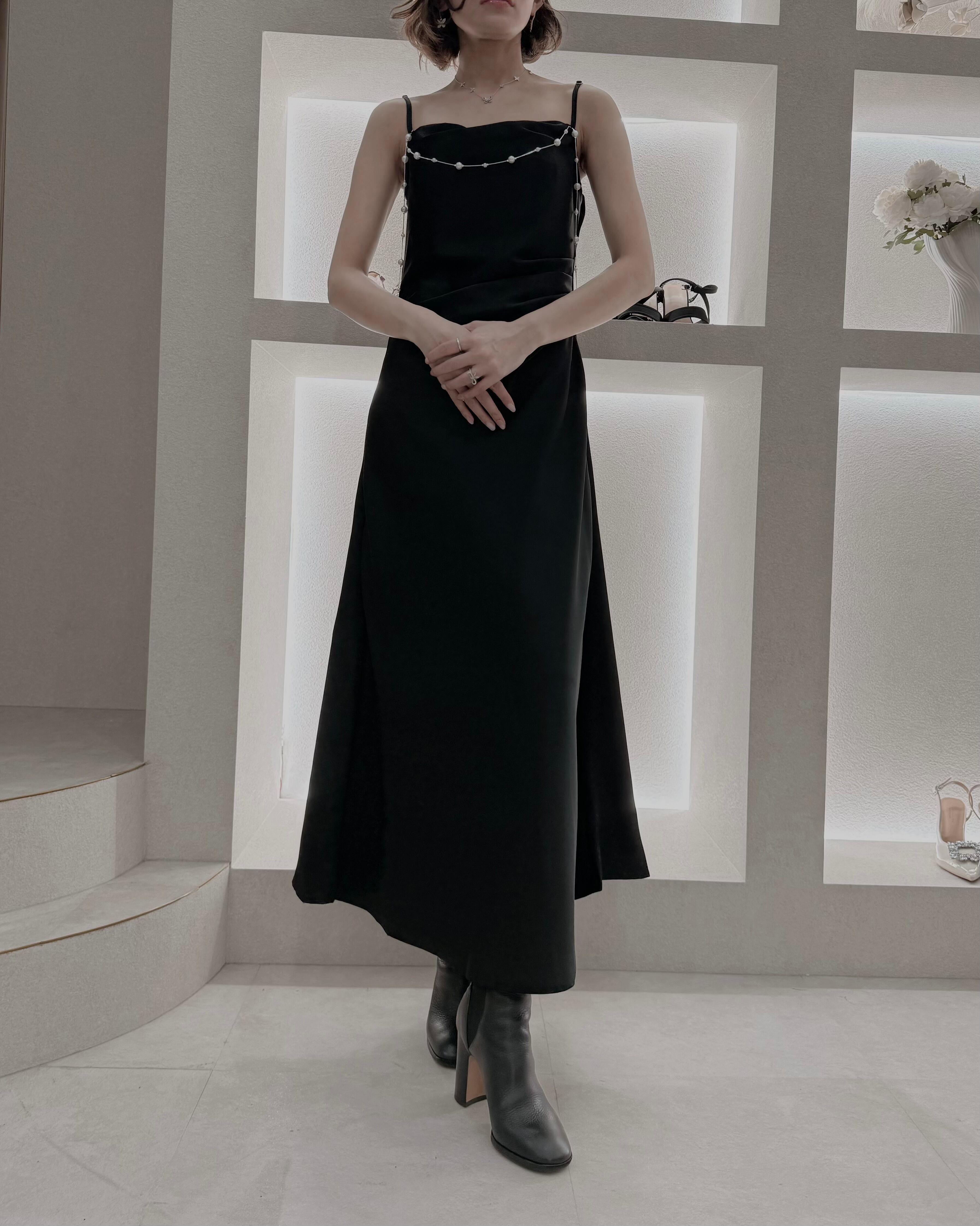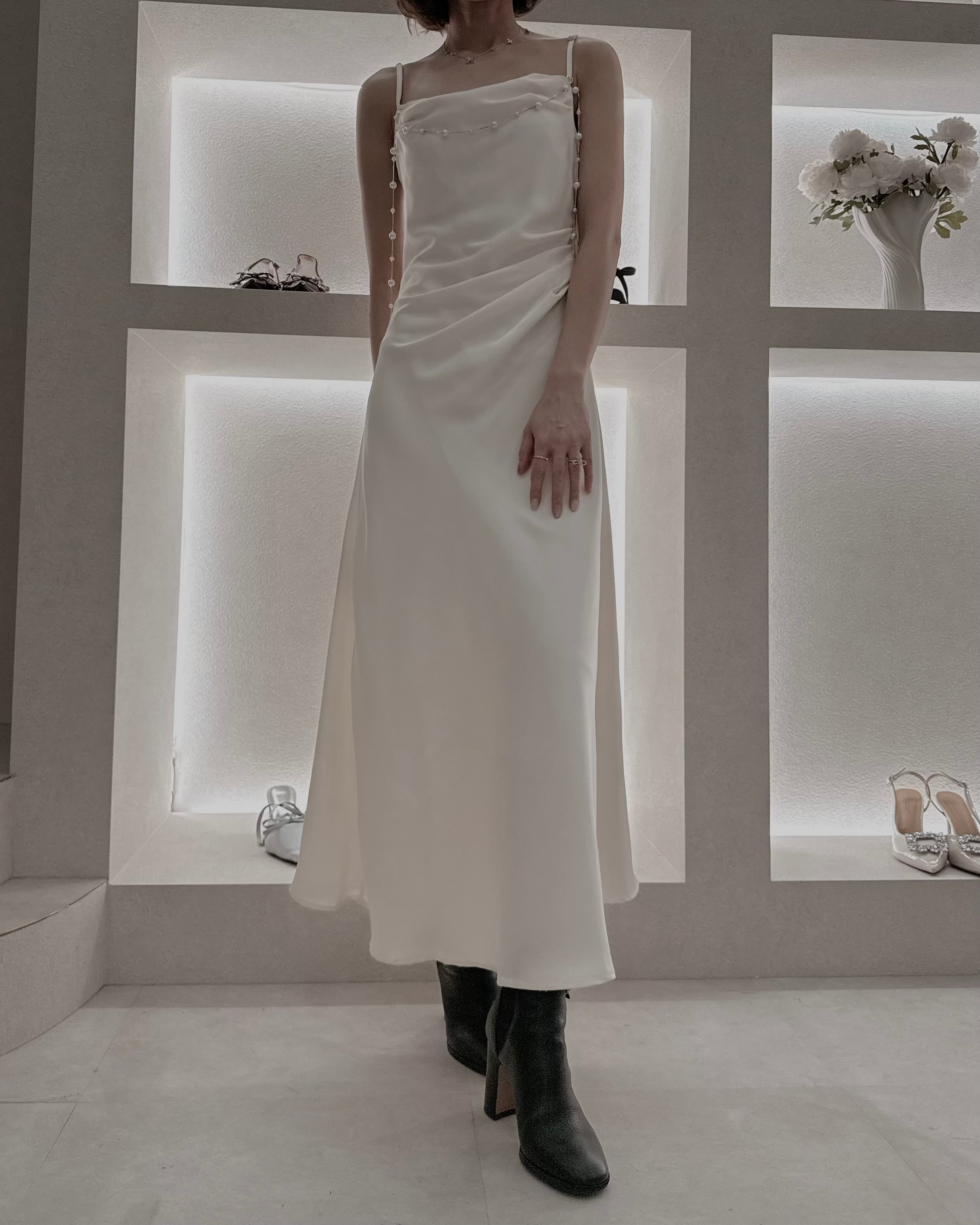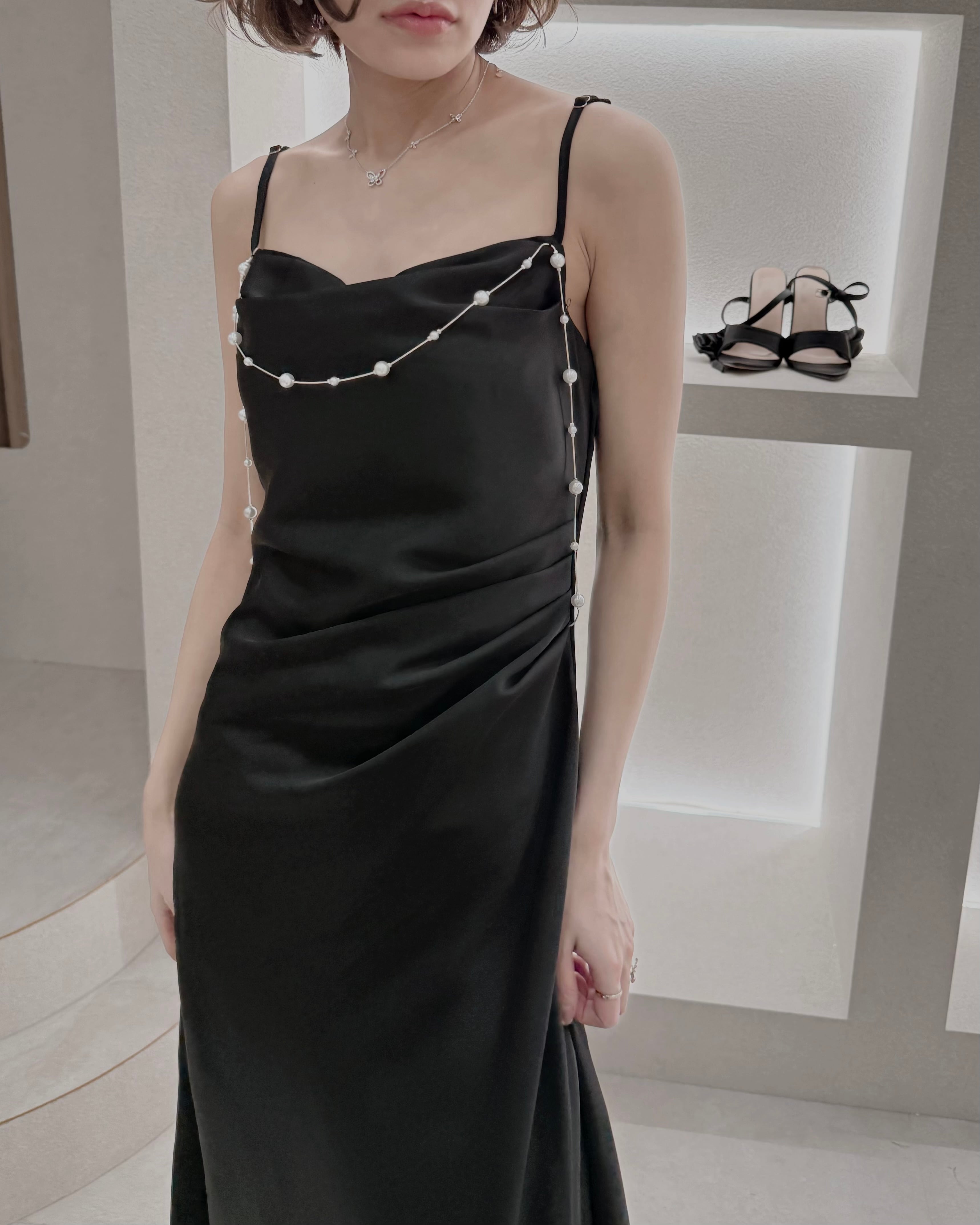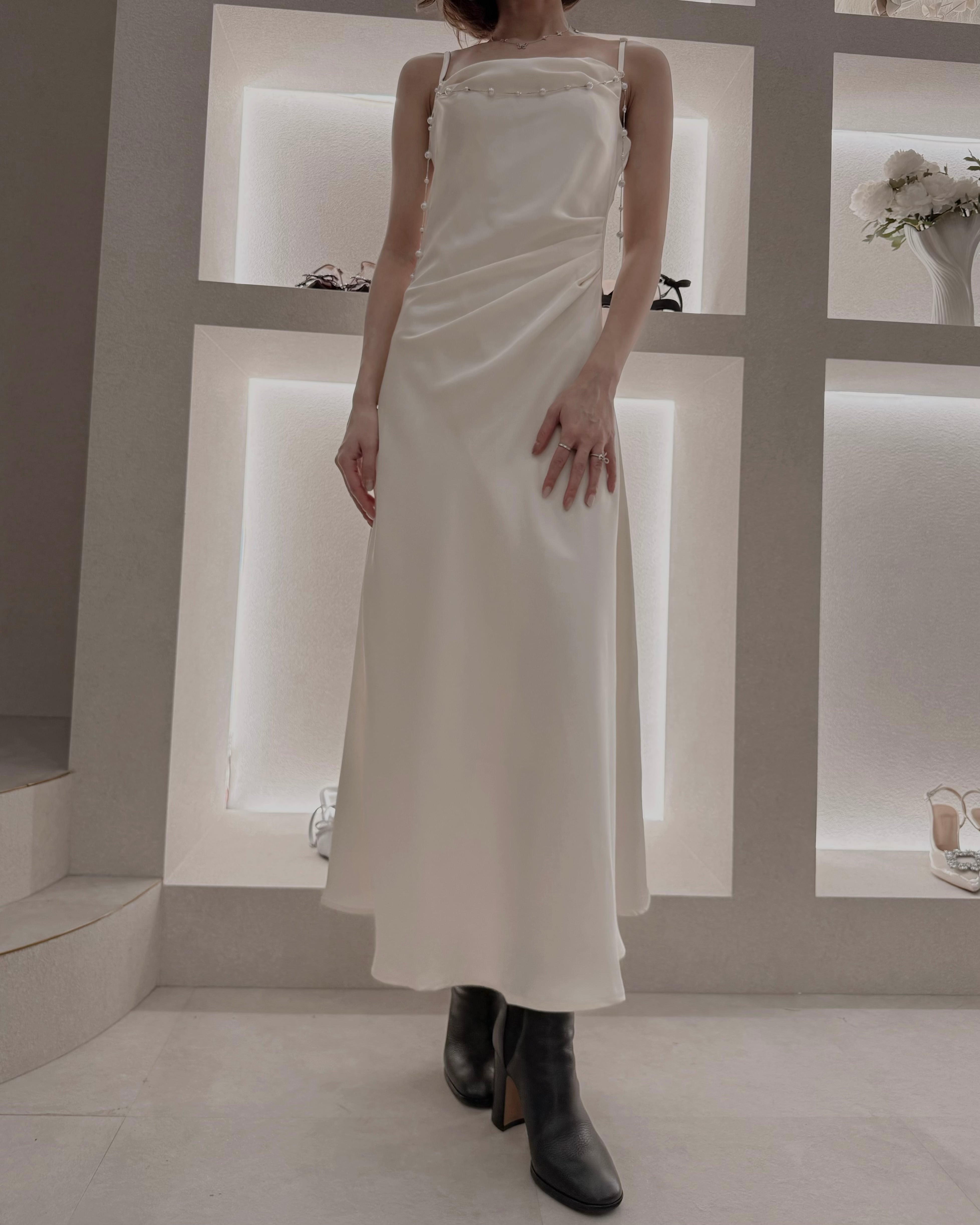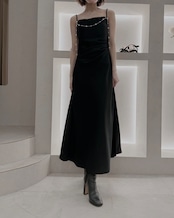 【Pearl Drape Satin Dress】