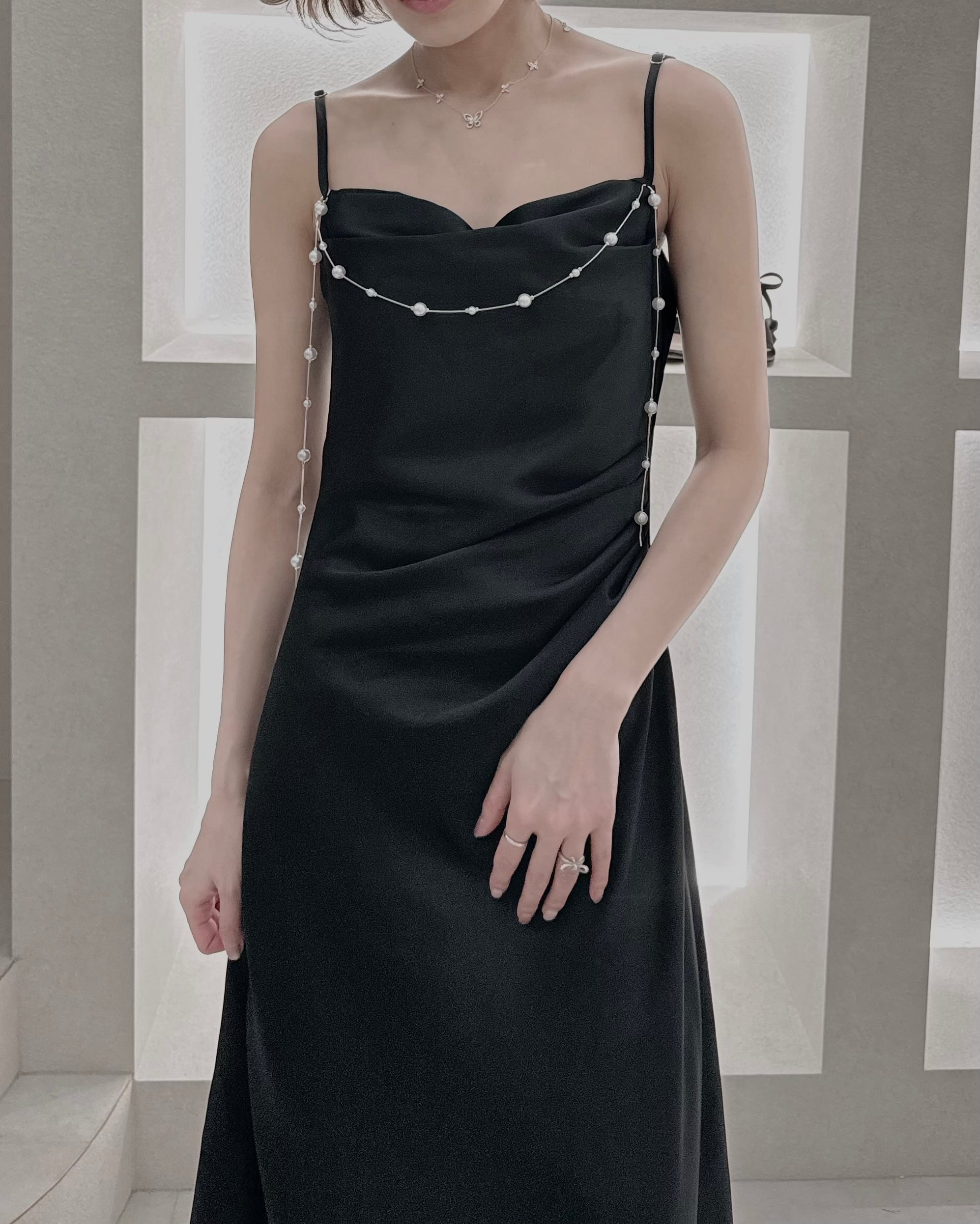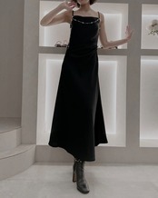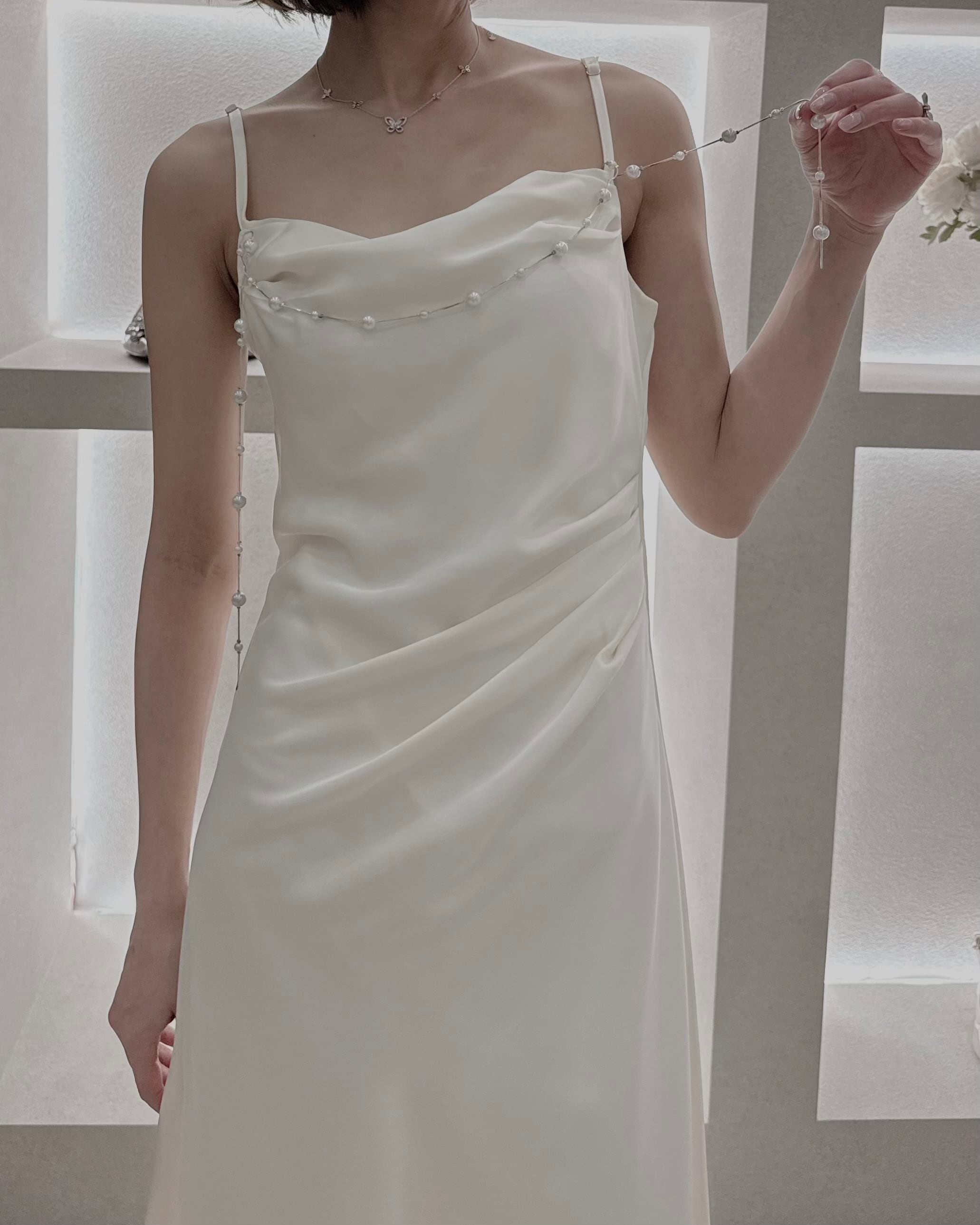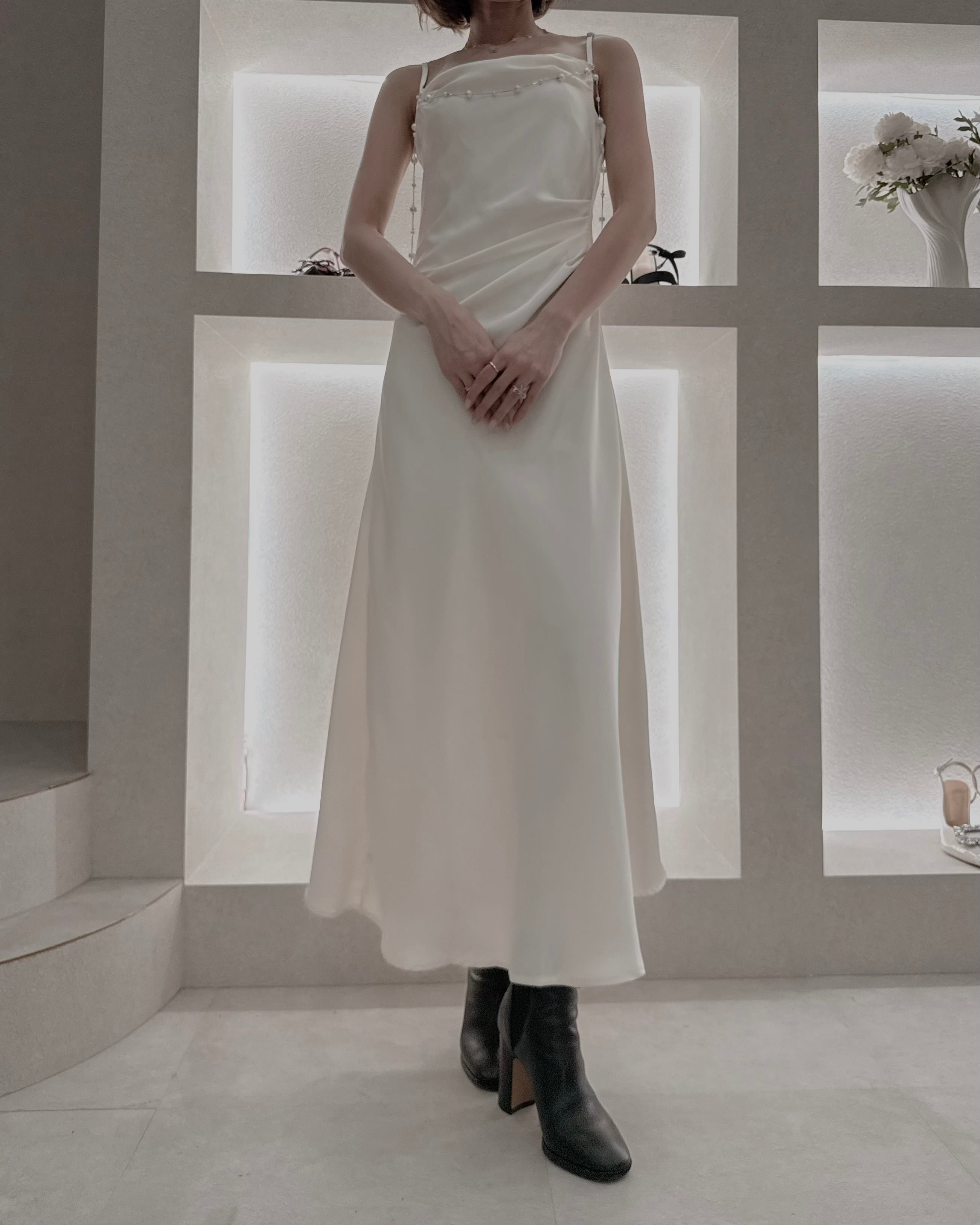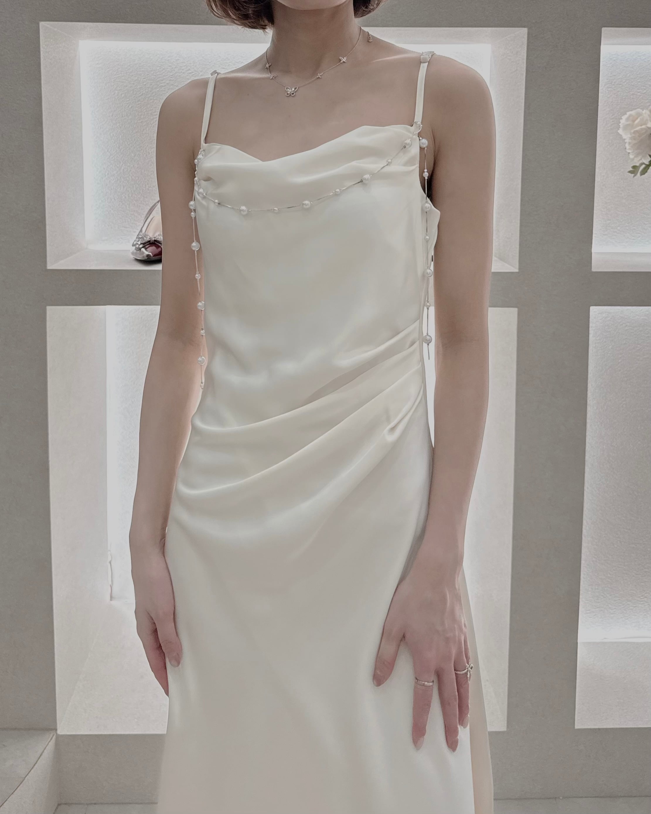 【Pearl Drape Satin Dress】