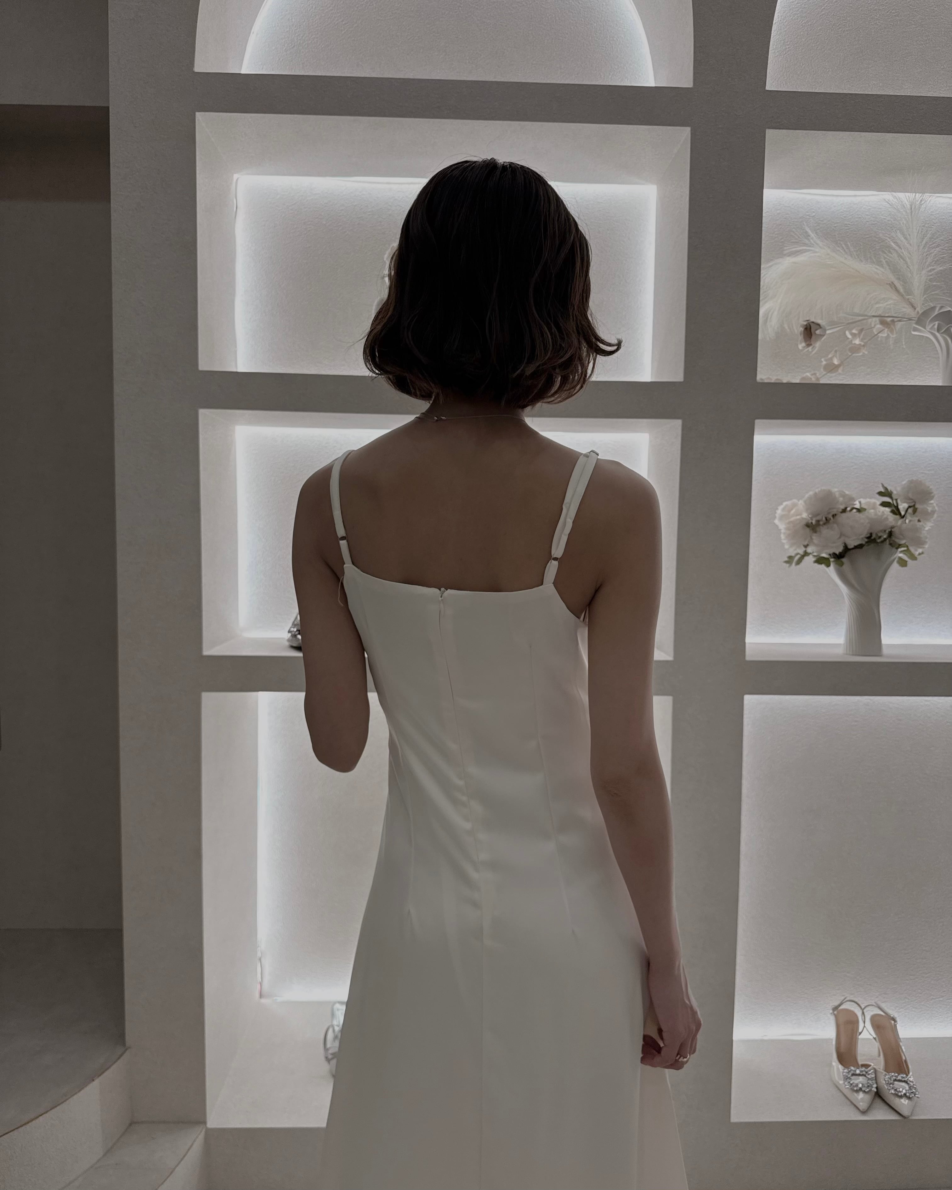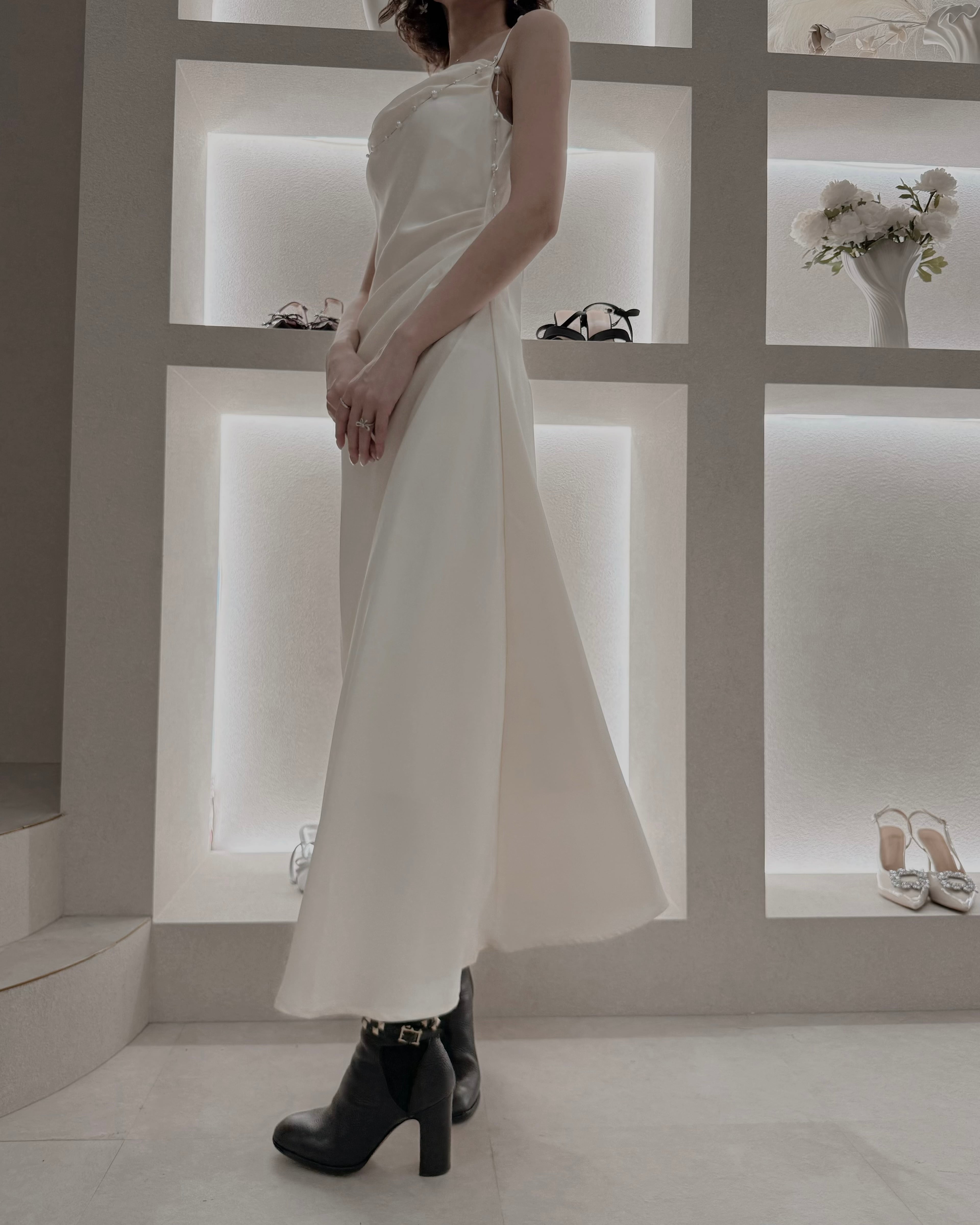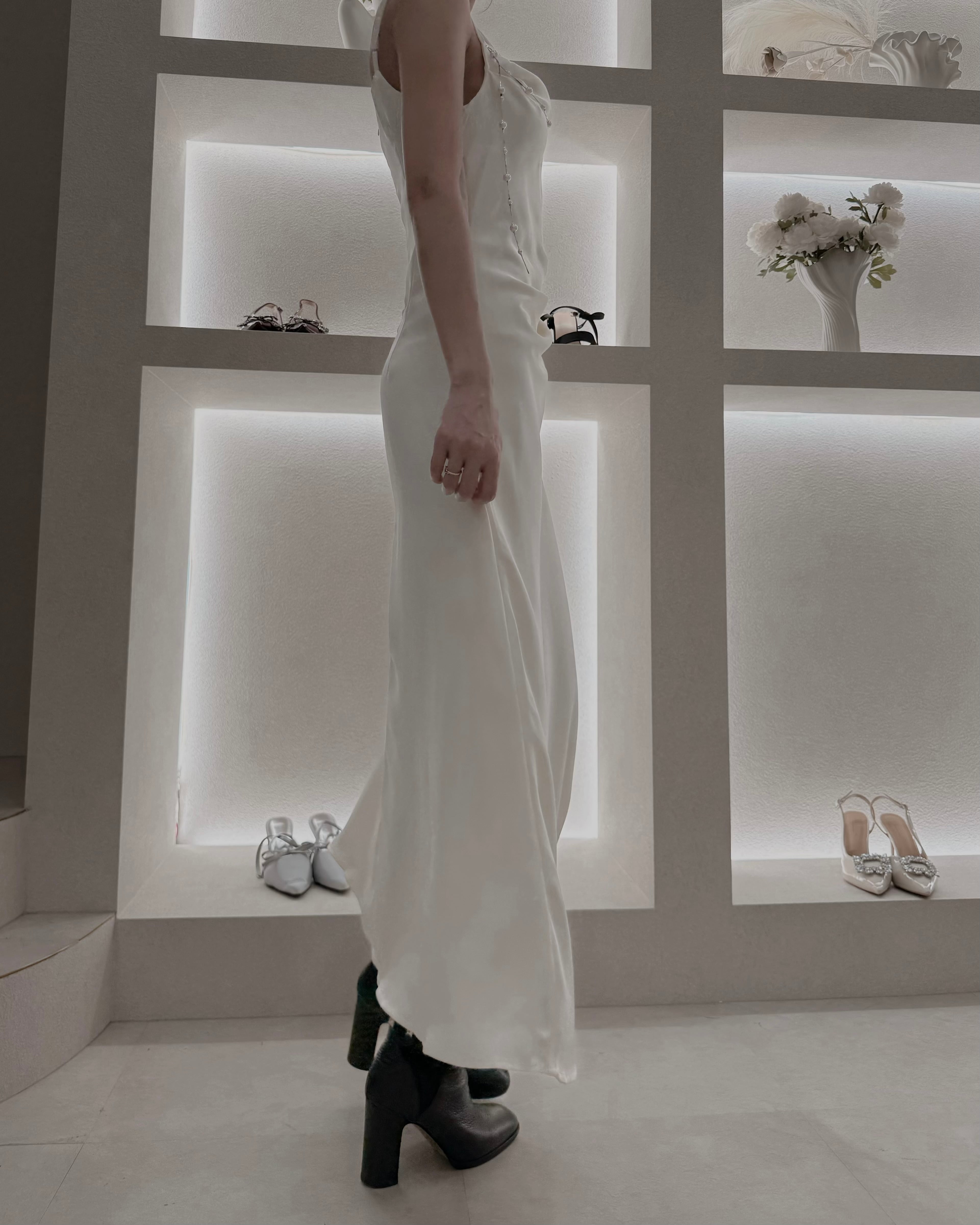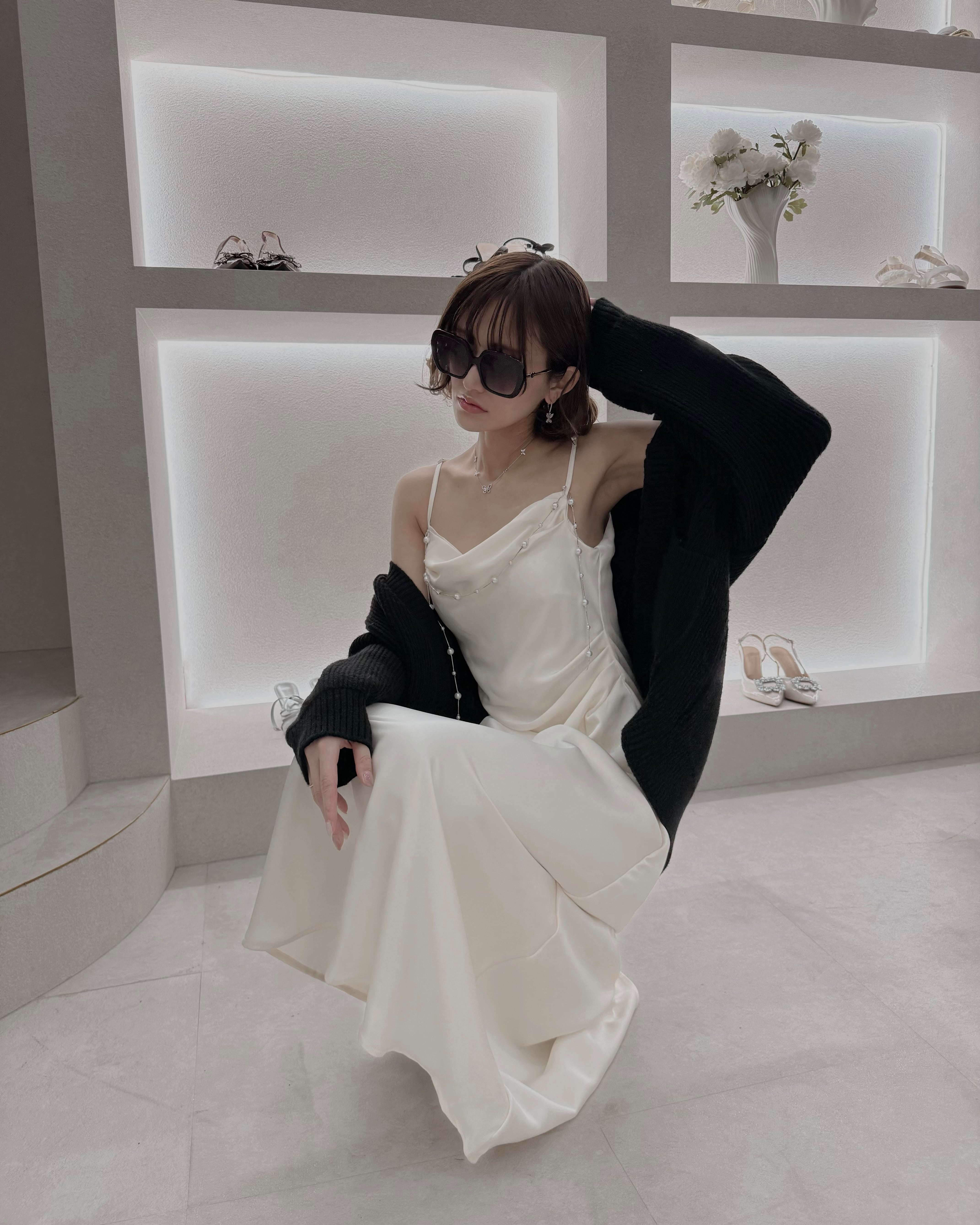 【Pearl Drape Satin Dress】