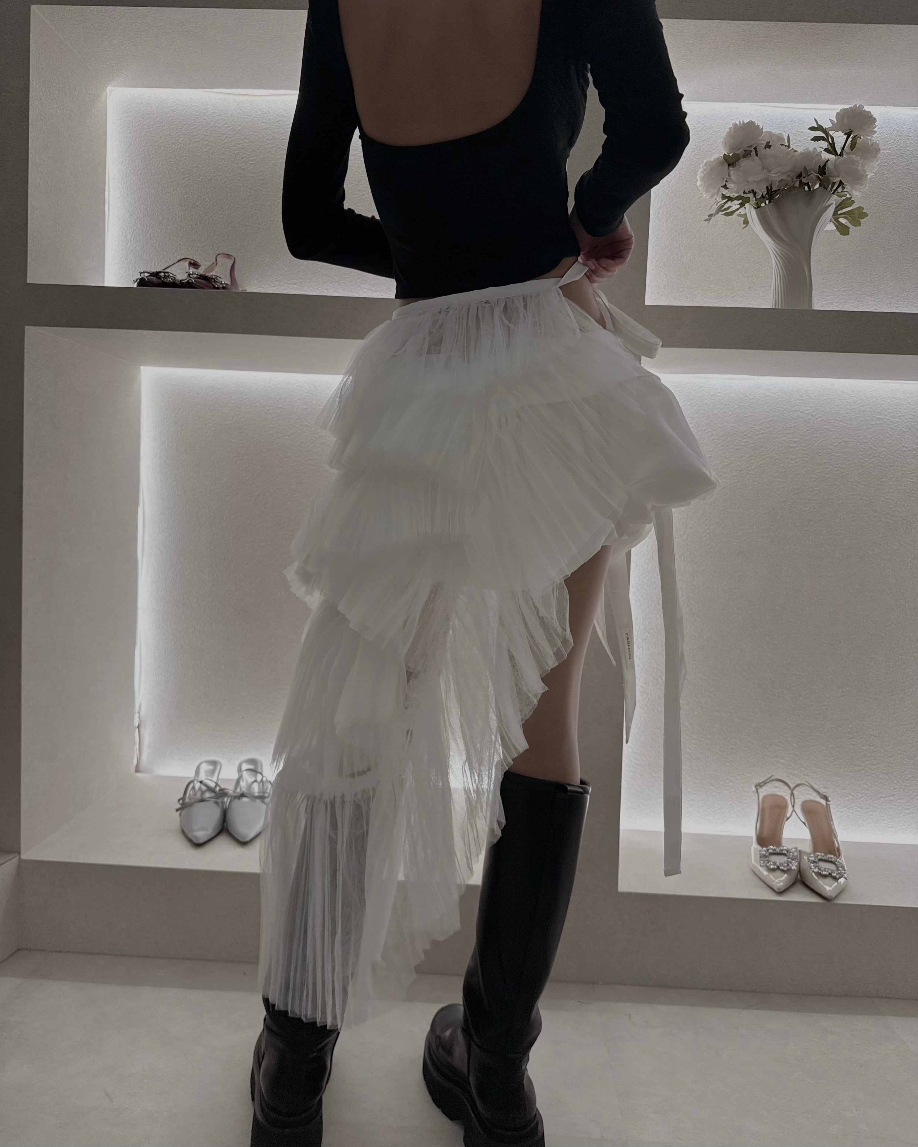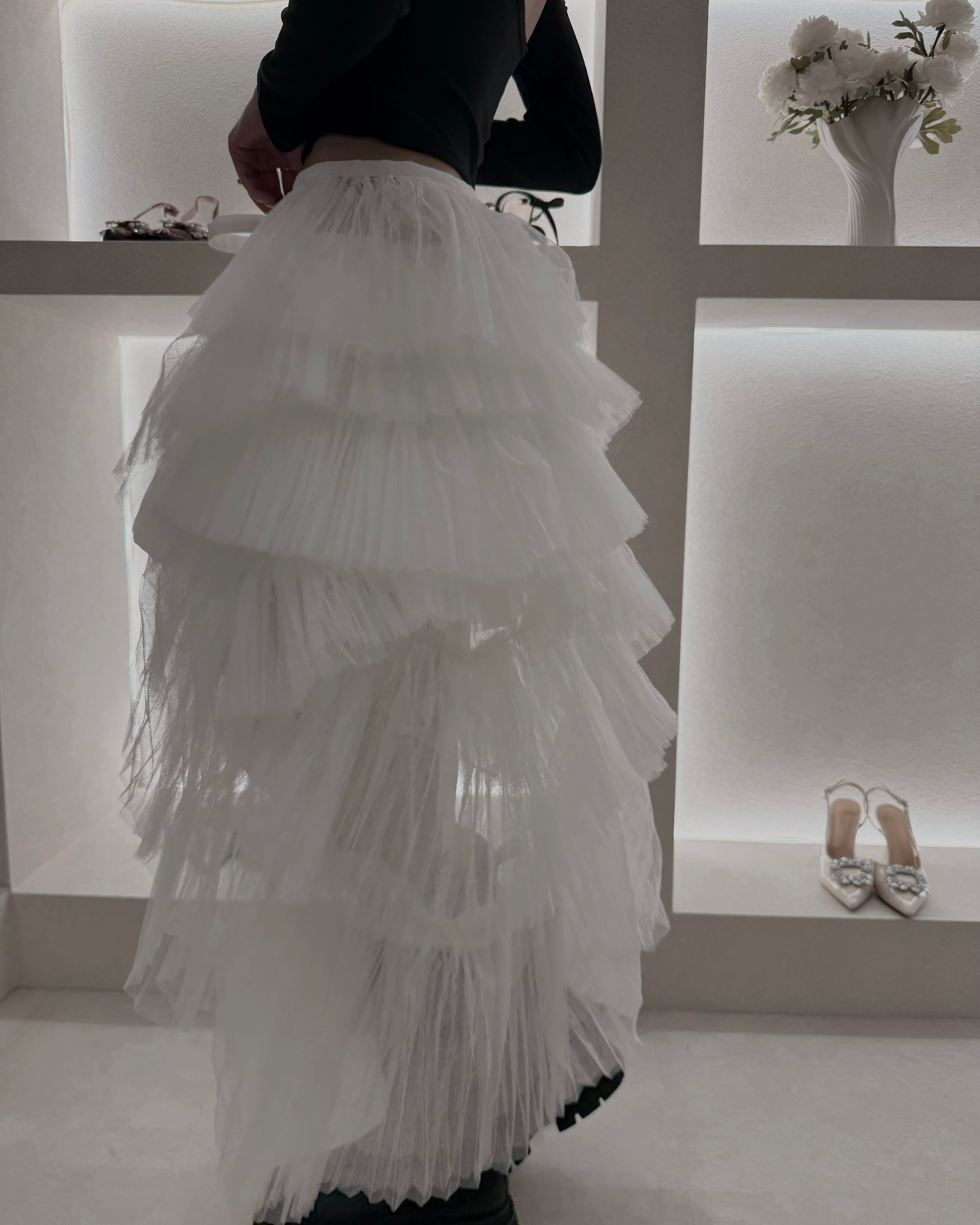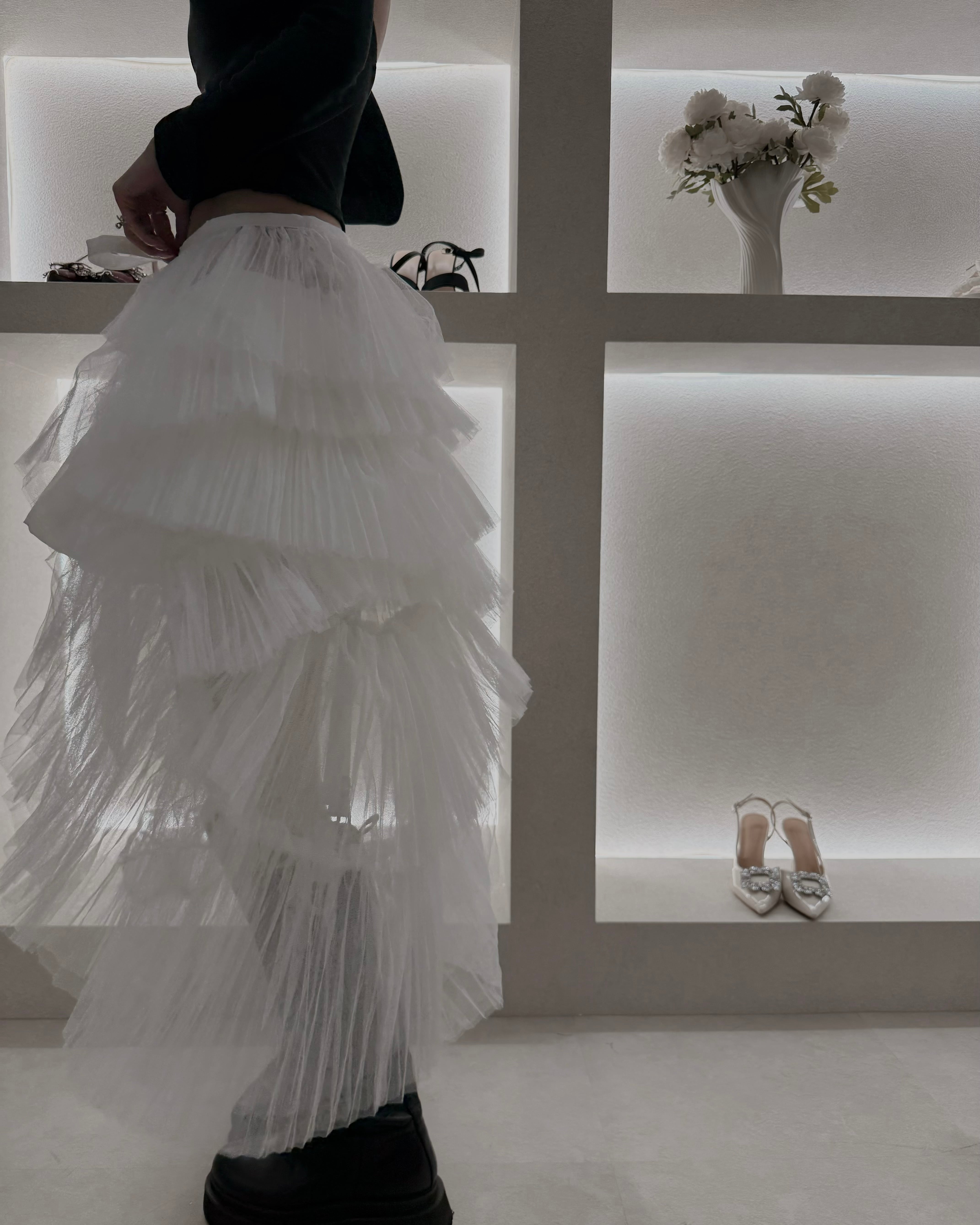 歩くたびに揺れるチュールの重なりが、