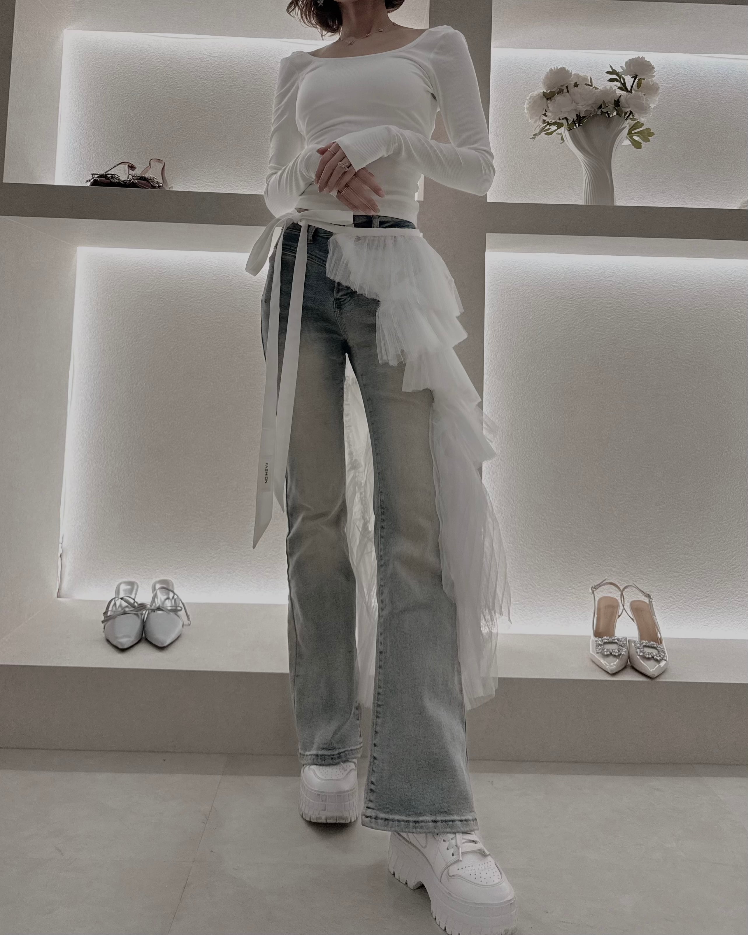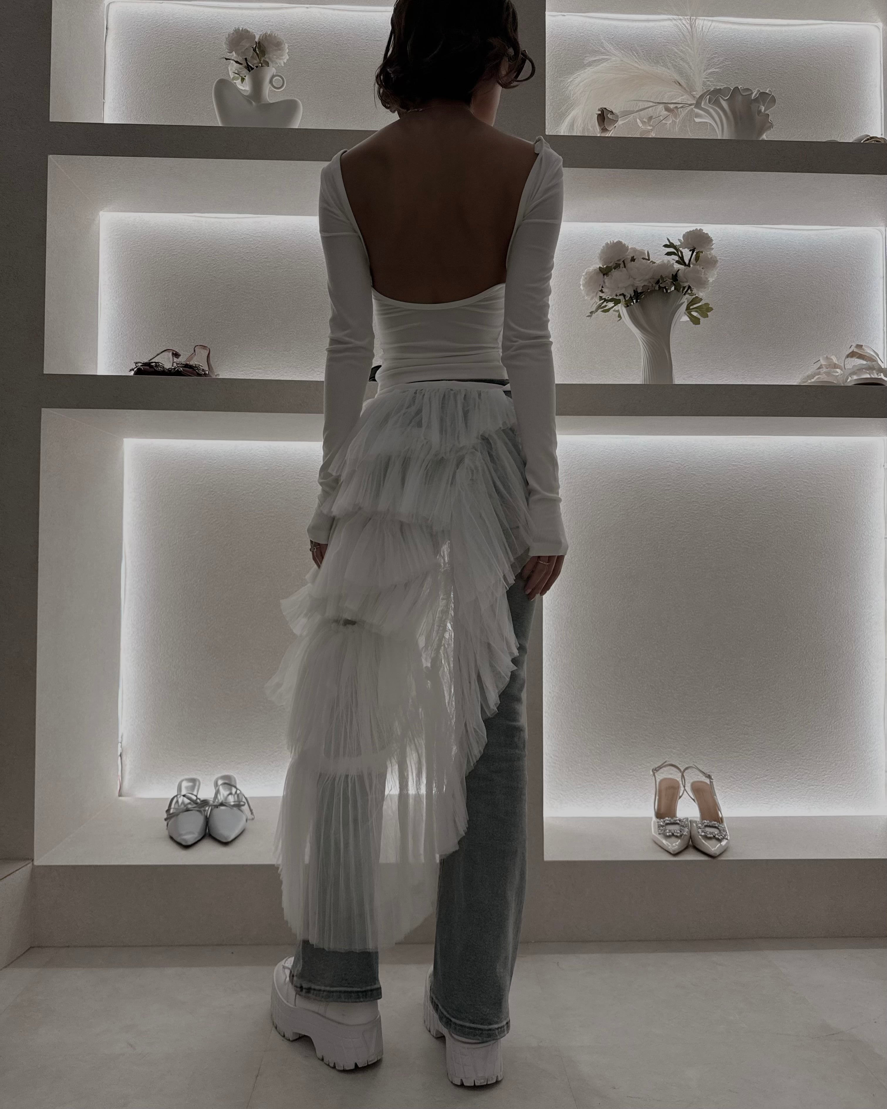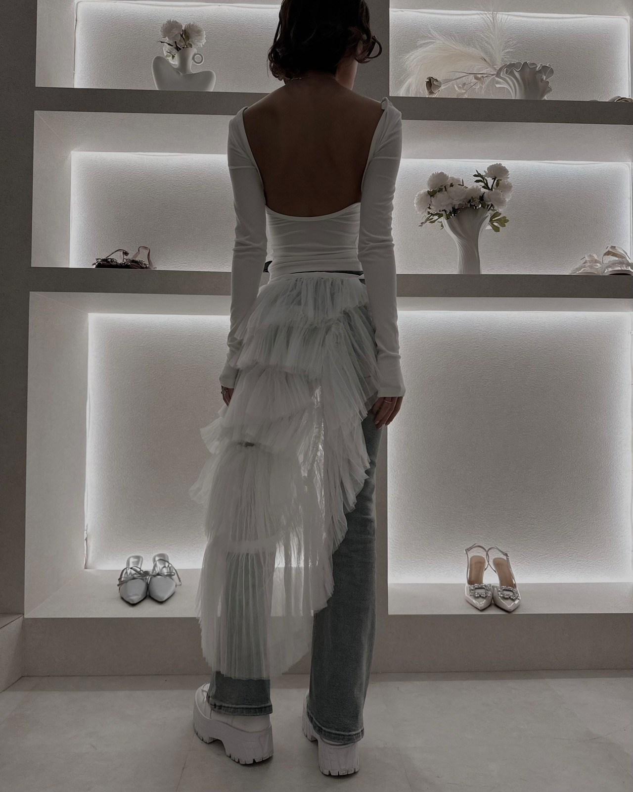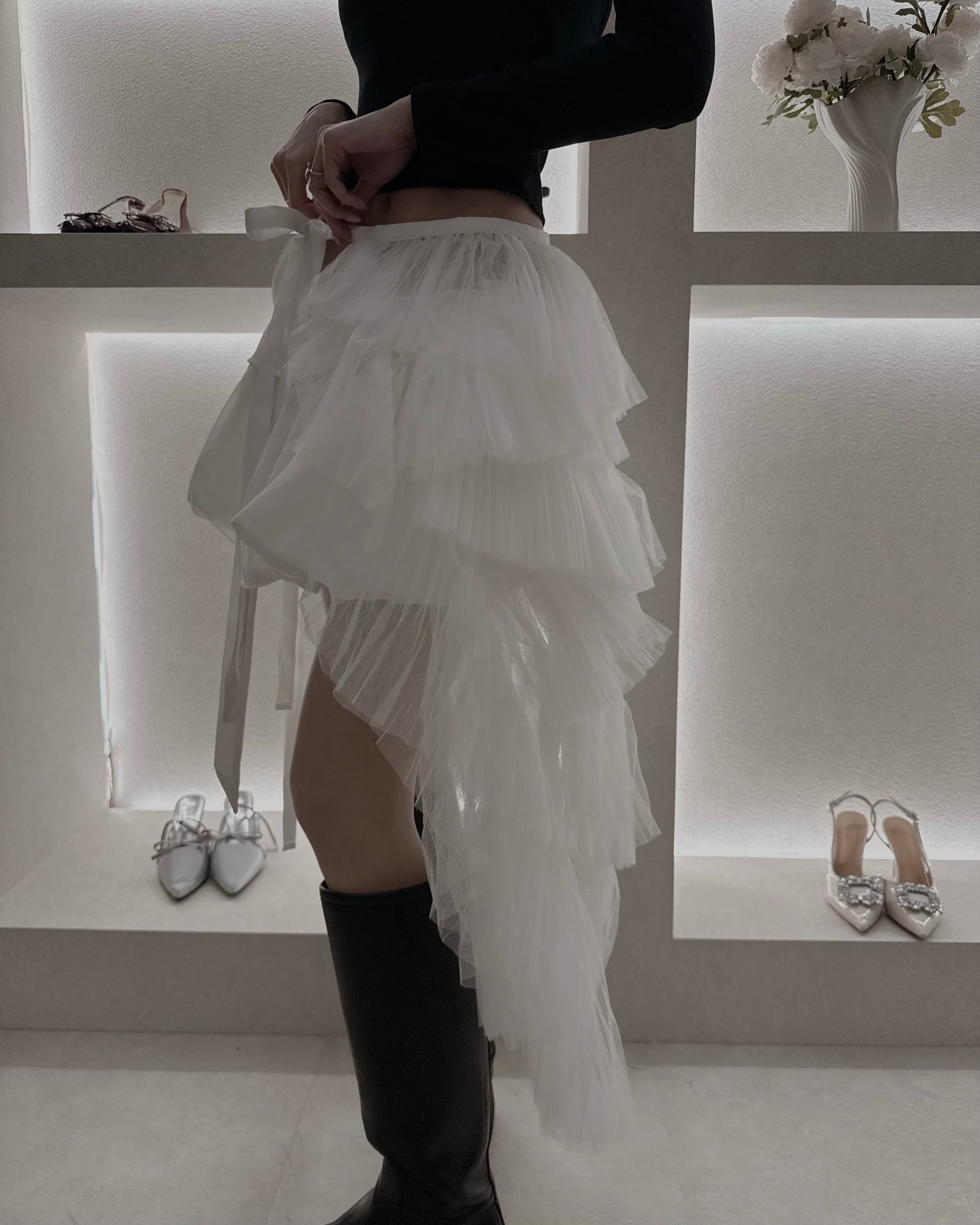 歩くたびに揺れるチュールの重なりが、