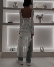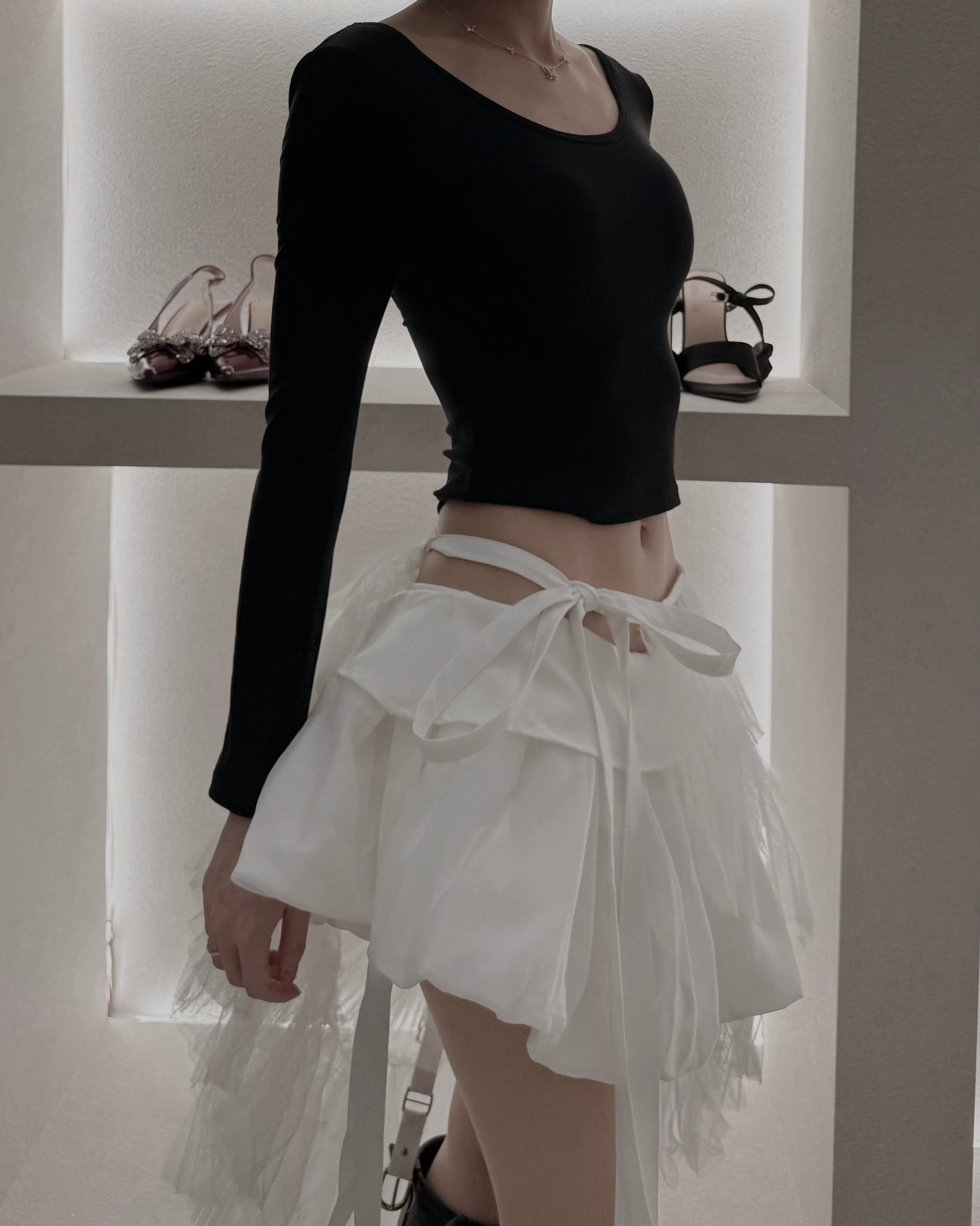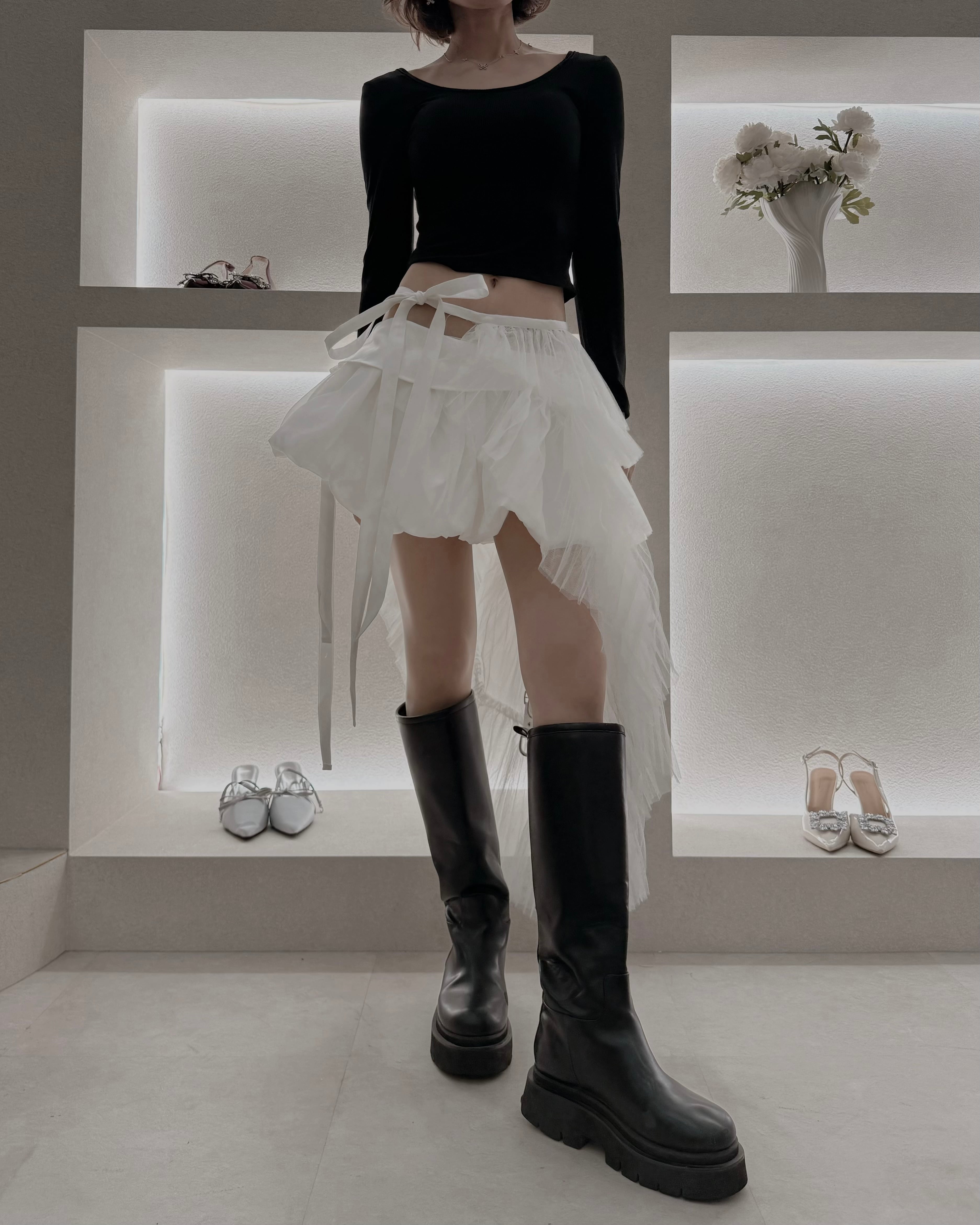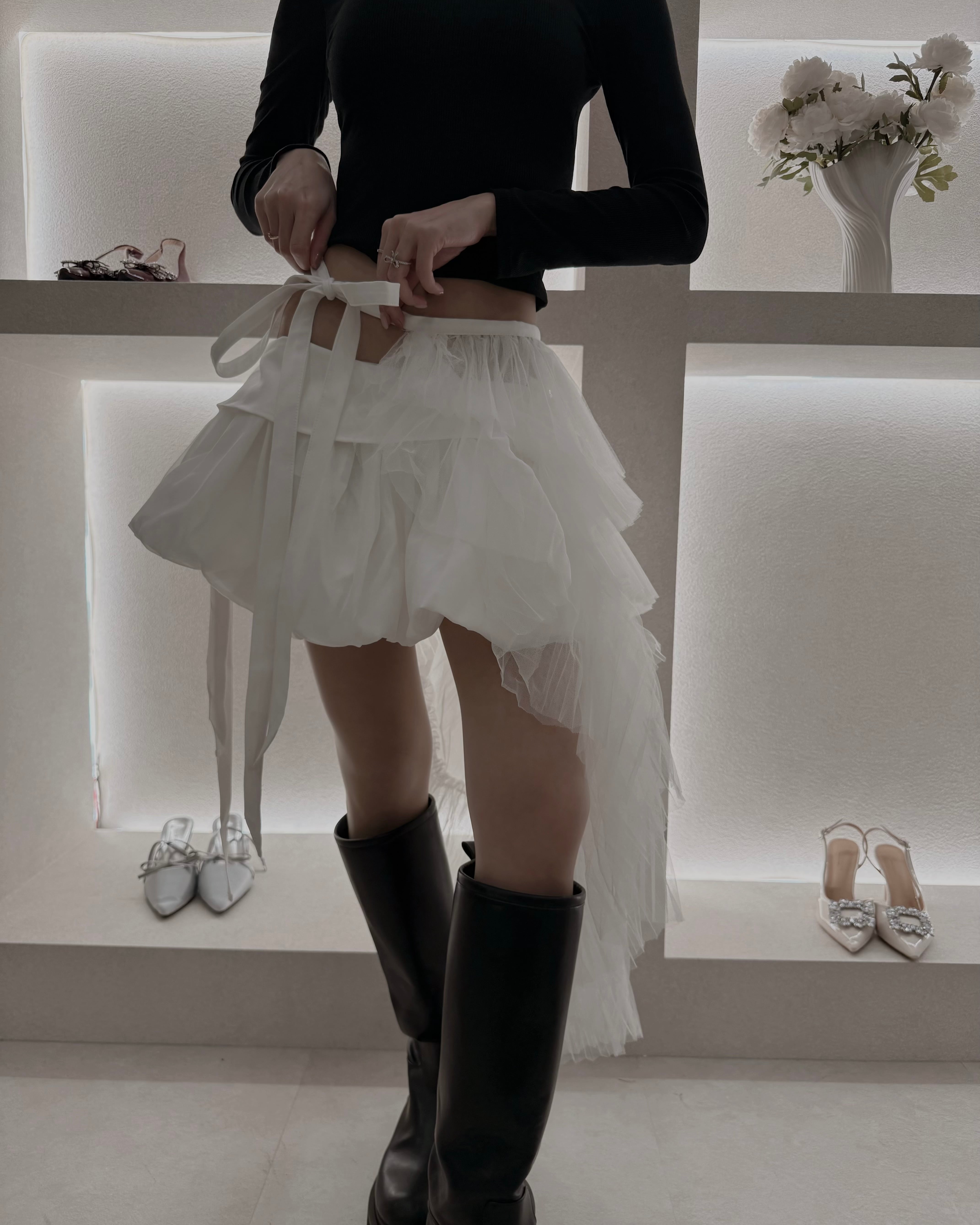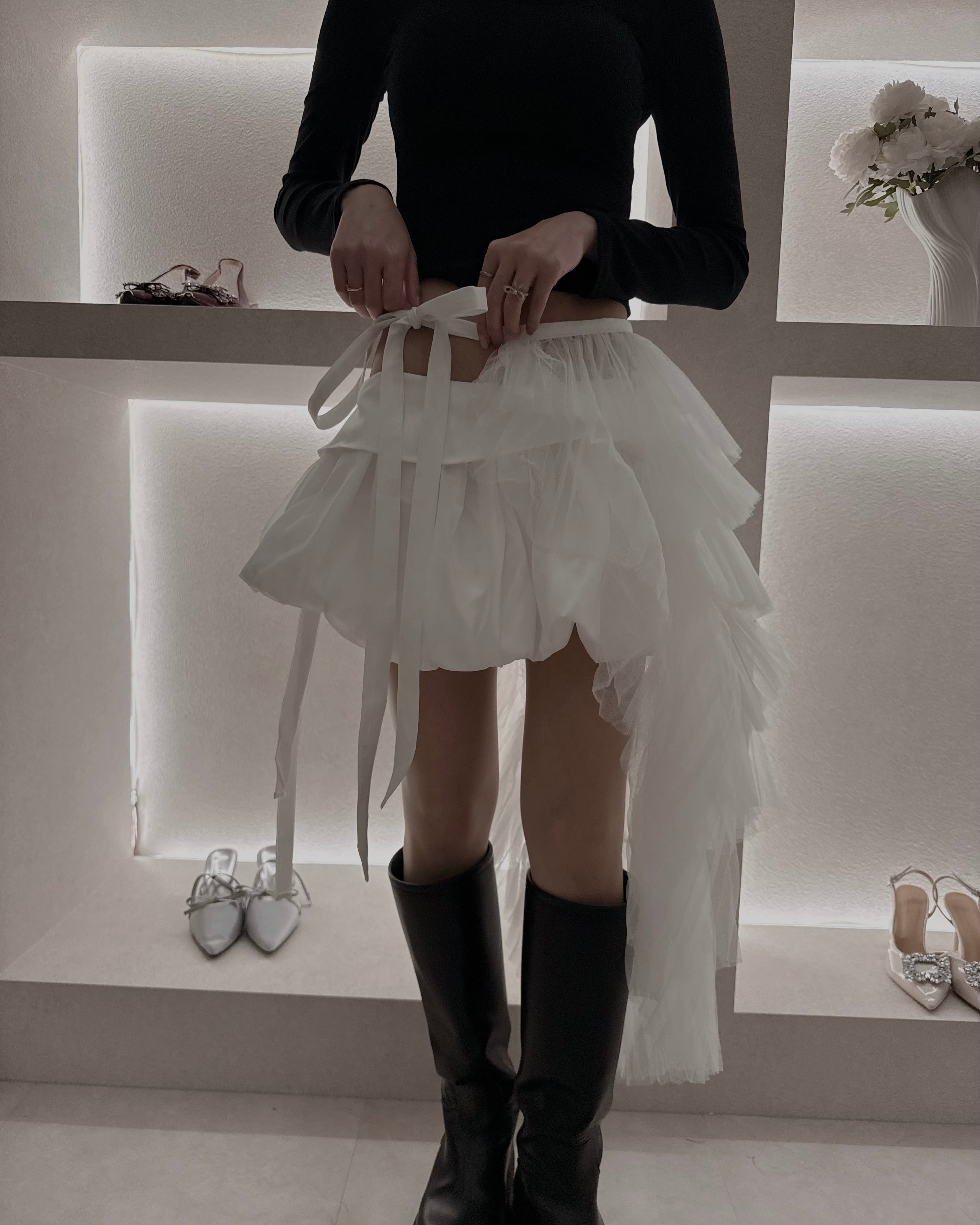 バレエのように軽やかなレイヤードラップスカート。